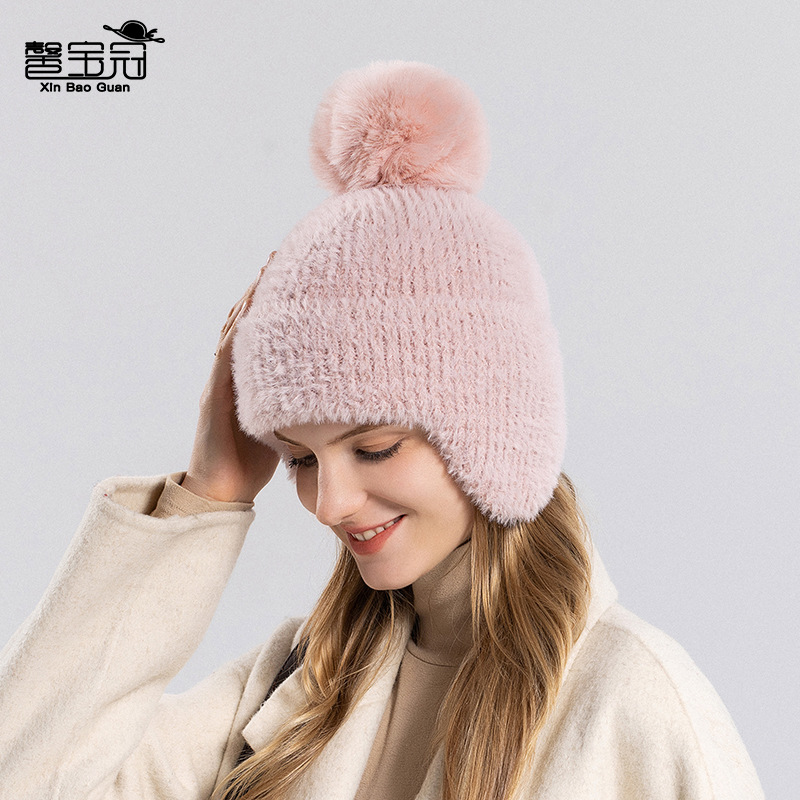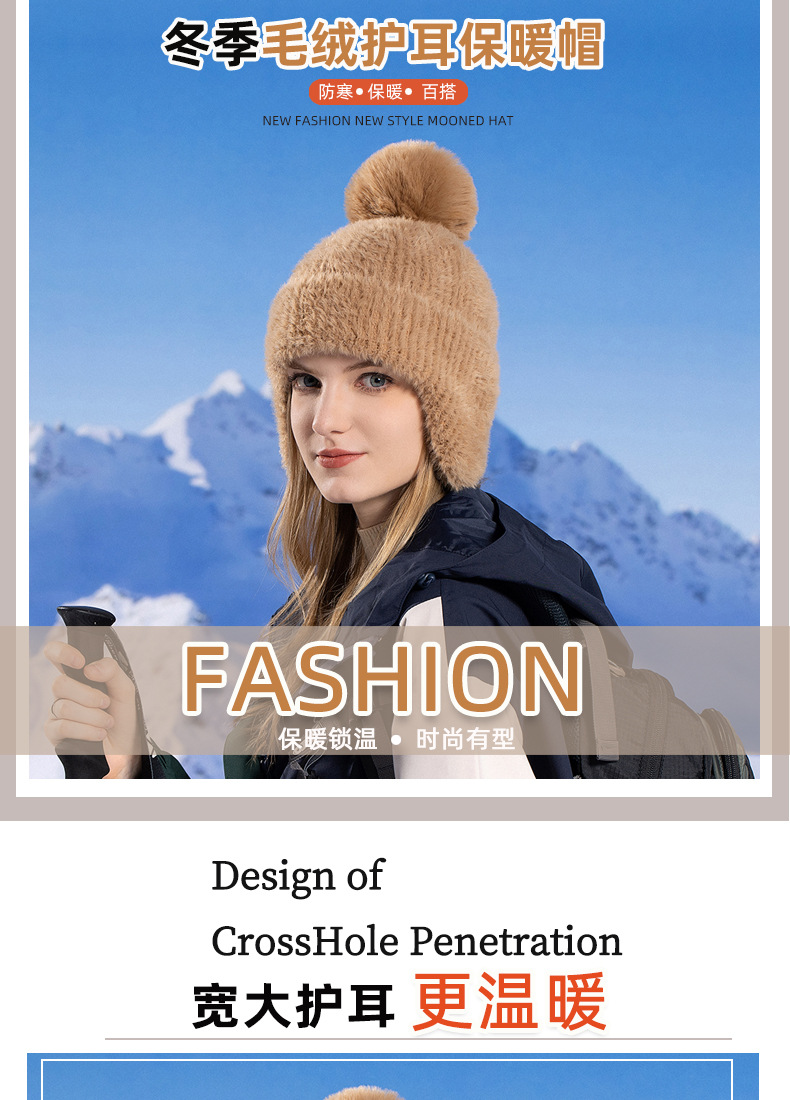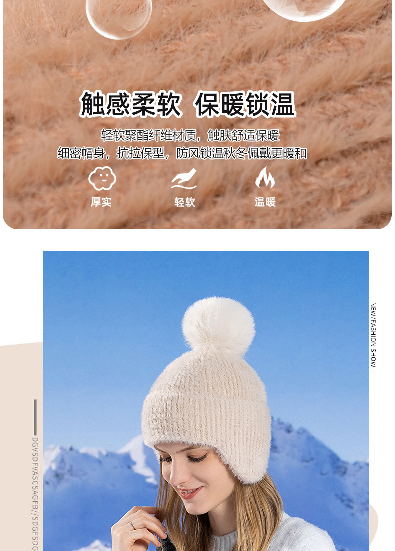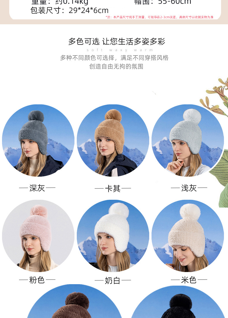 8331冬季新款护耳针织帽韩版百搭毛线帽毛绒防寒保暖毛球帽子女潮