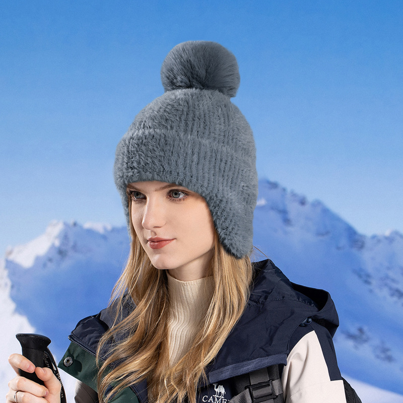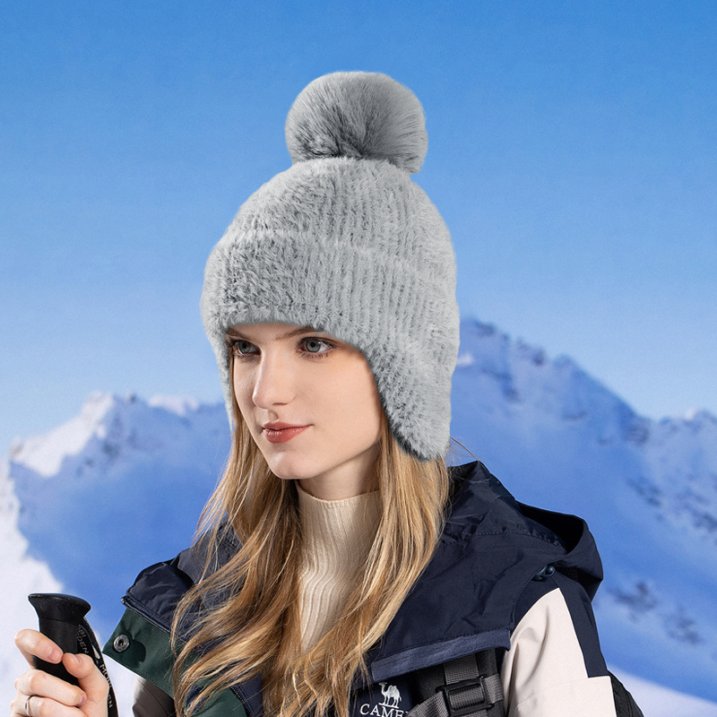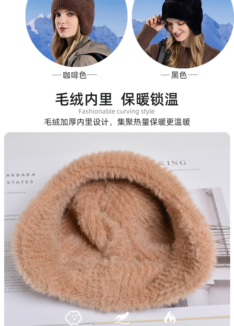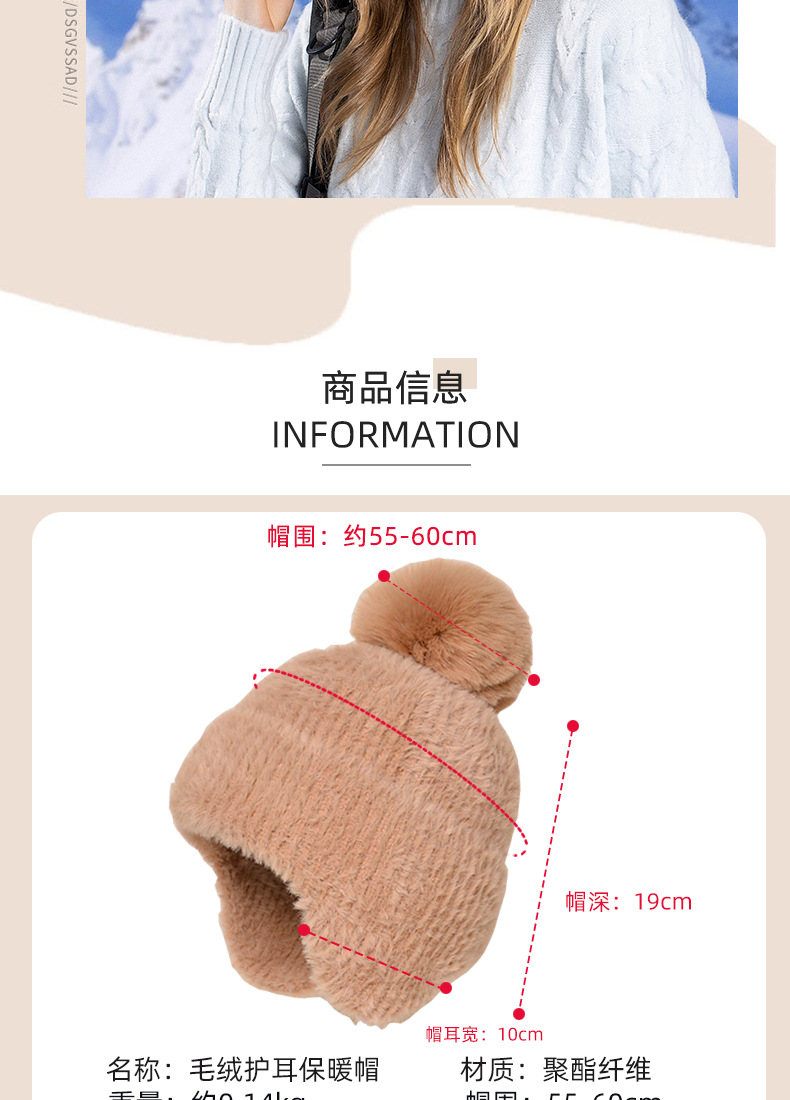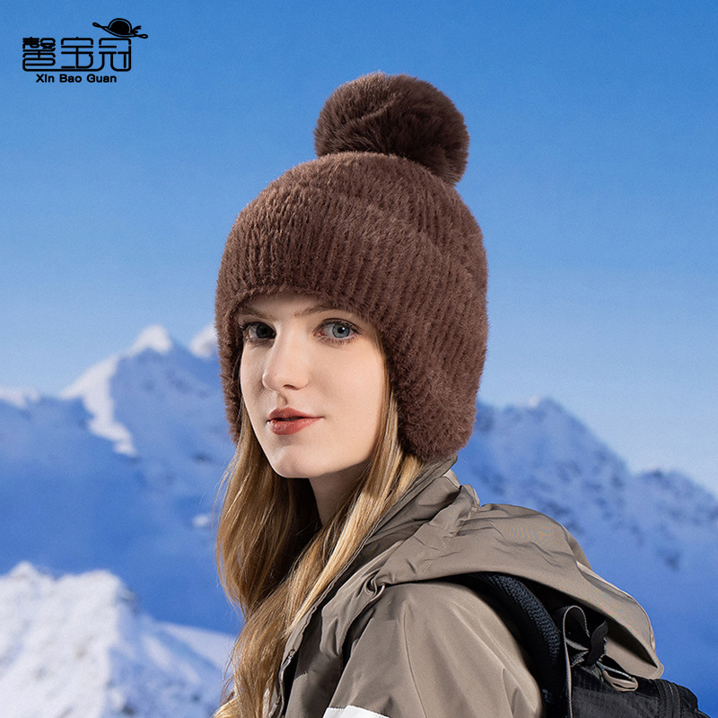 8331冬季新款护耳针织帽韩版百搭毛线帽毛绒防寒保暖毛球帽子女潮