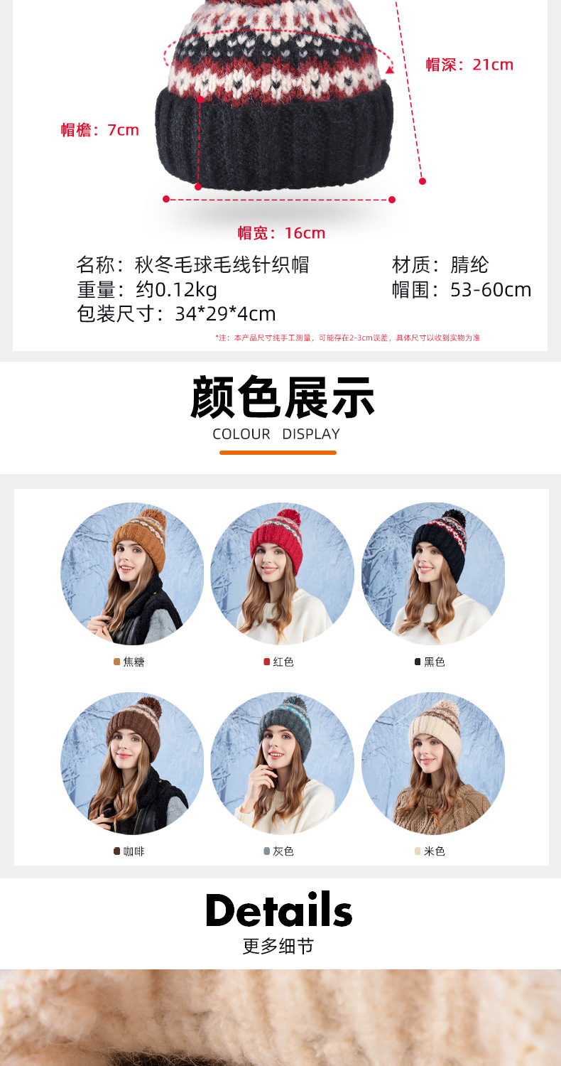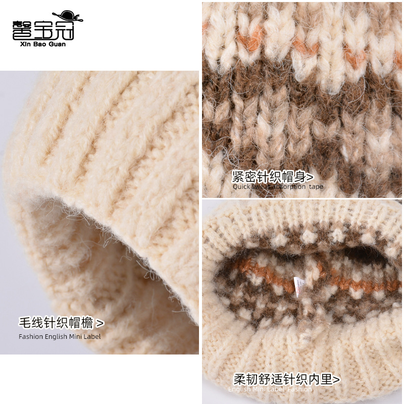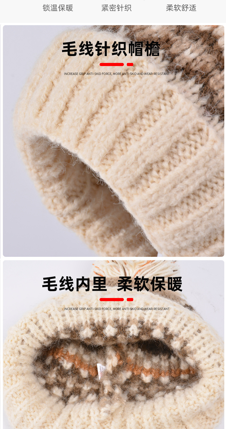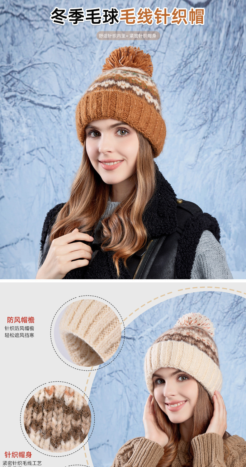 冬季防寒保暖针织帽护耳百搭时尚套头帽子女氛围感毛球毛线帽跨境