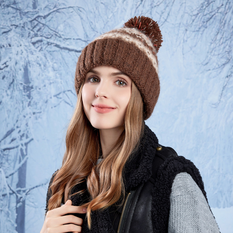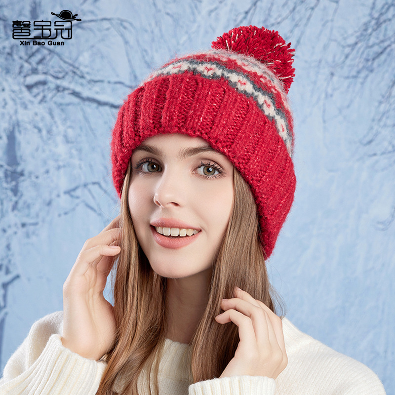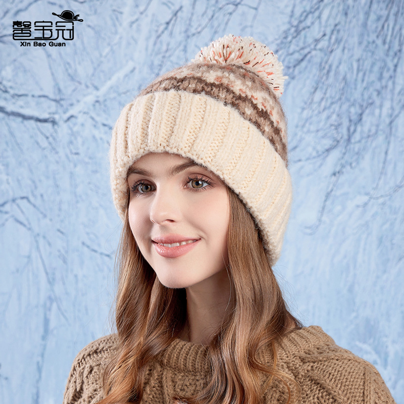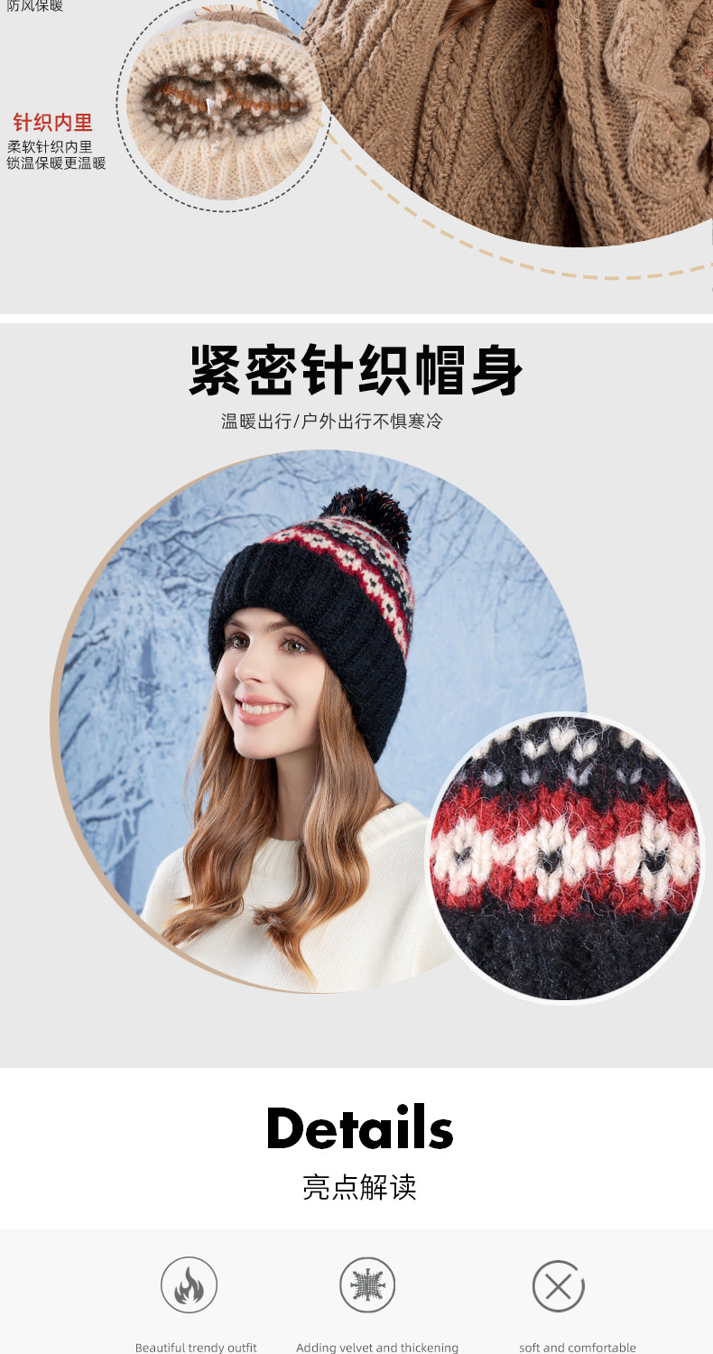 冬季防寒保暖针织帽护耳百搭时尚套头帽子女氛围感毛球毛线帽跨境