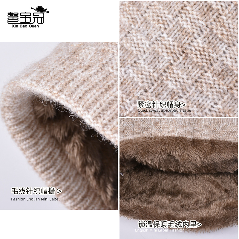 冬季帽子围脖套装女士户外防寒保暖针织帽加绒护耳套头毛线帽跨境