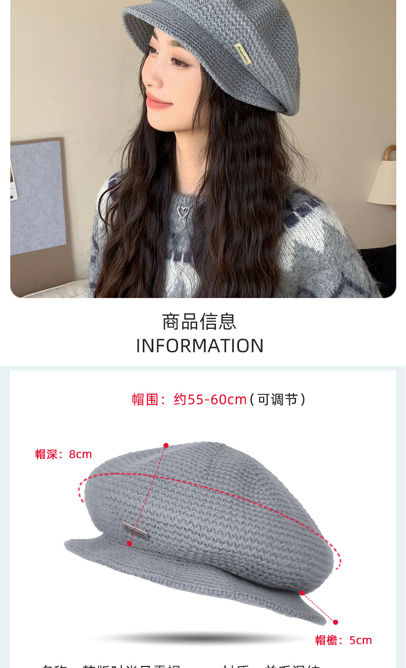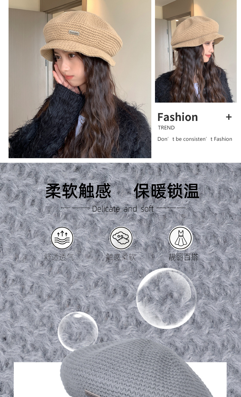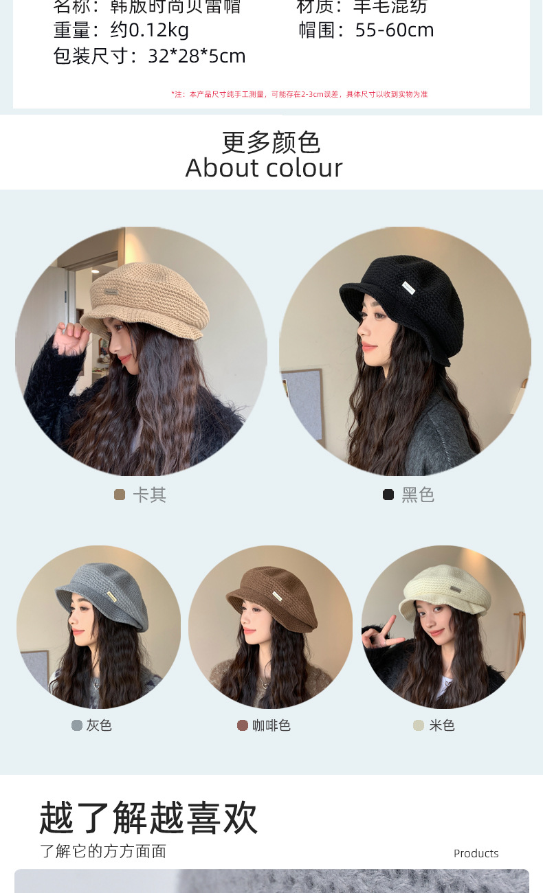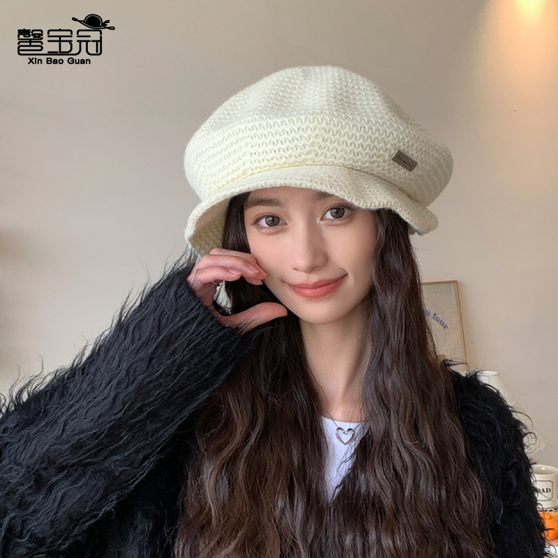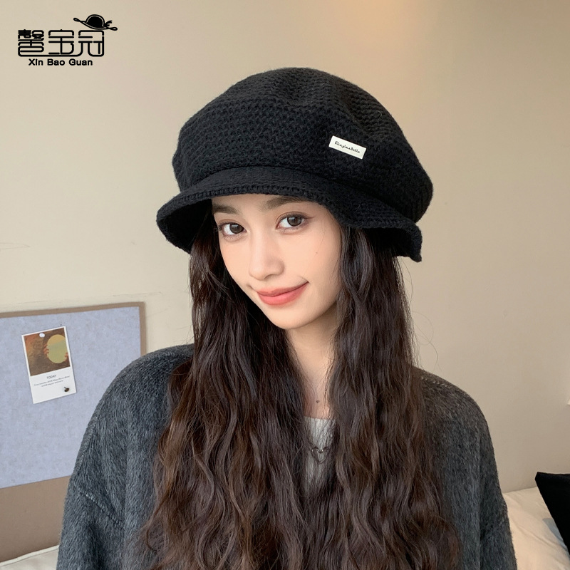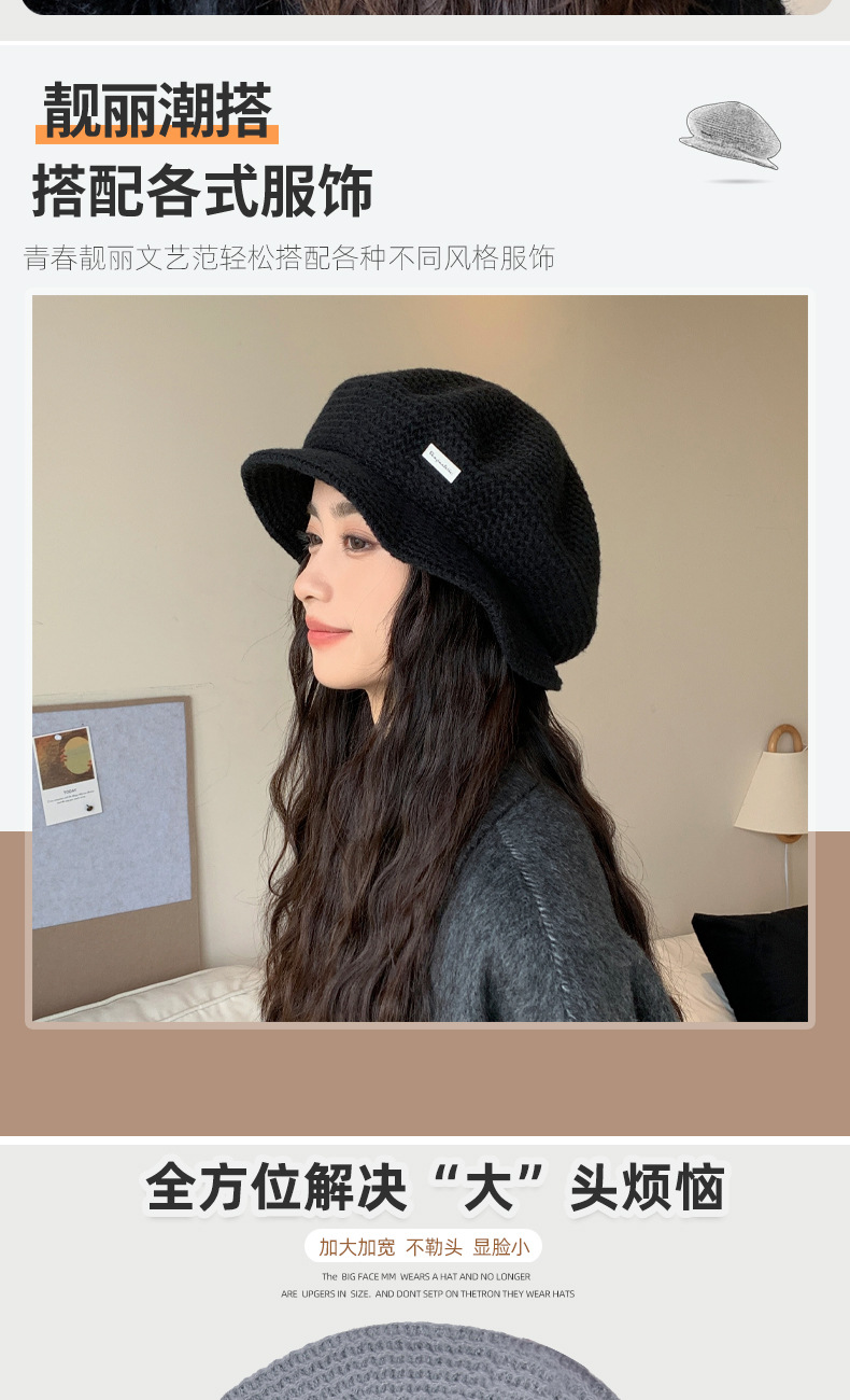 秋冬新款美拉德复古针织贝雷帽大头围显脸小画家帽韩版百搭帽子女