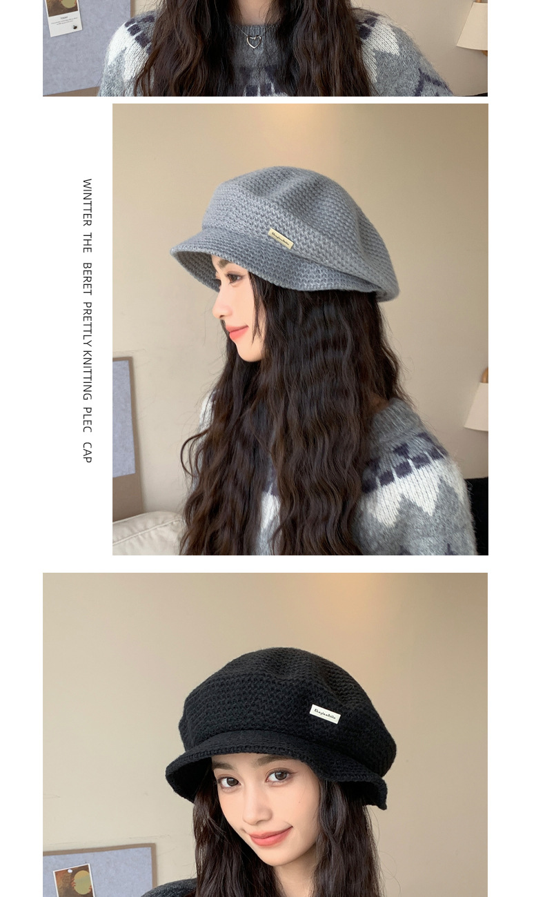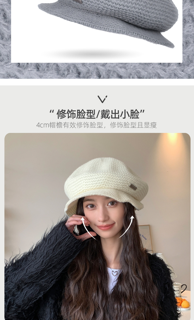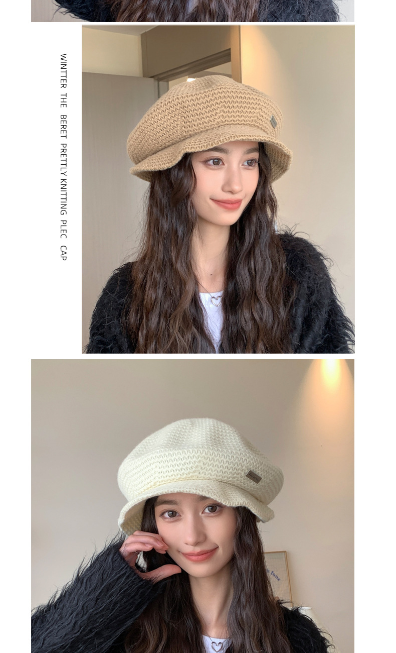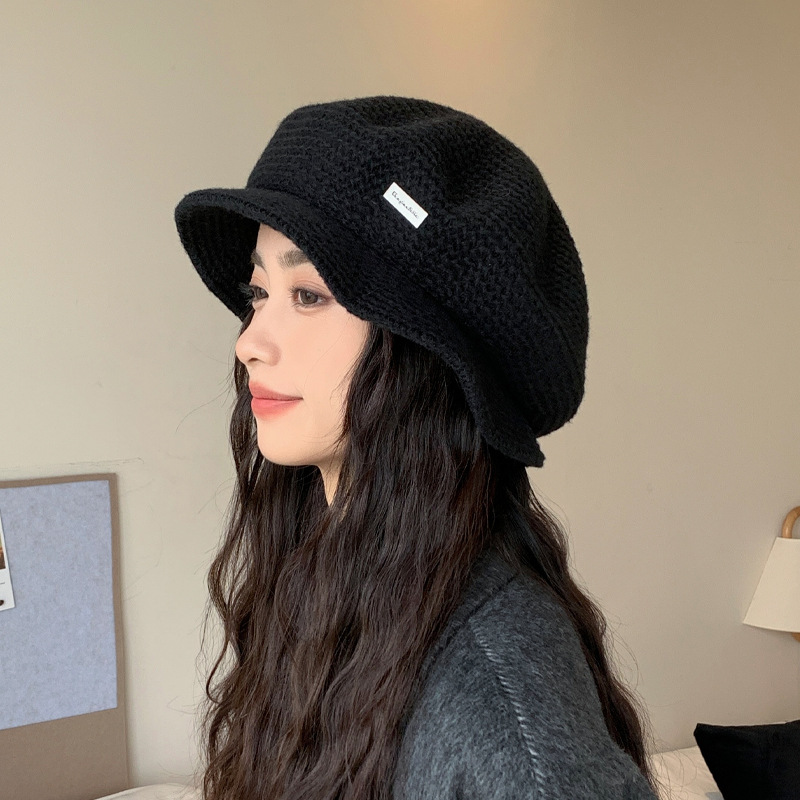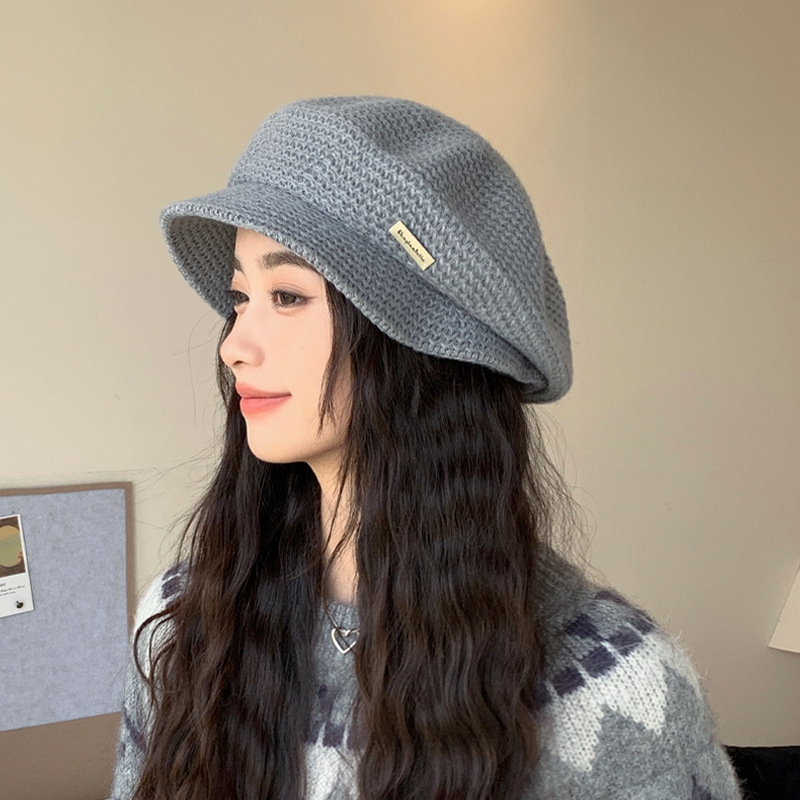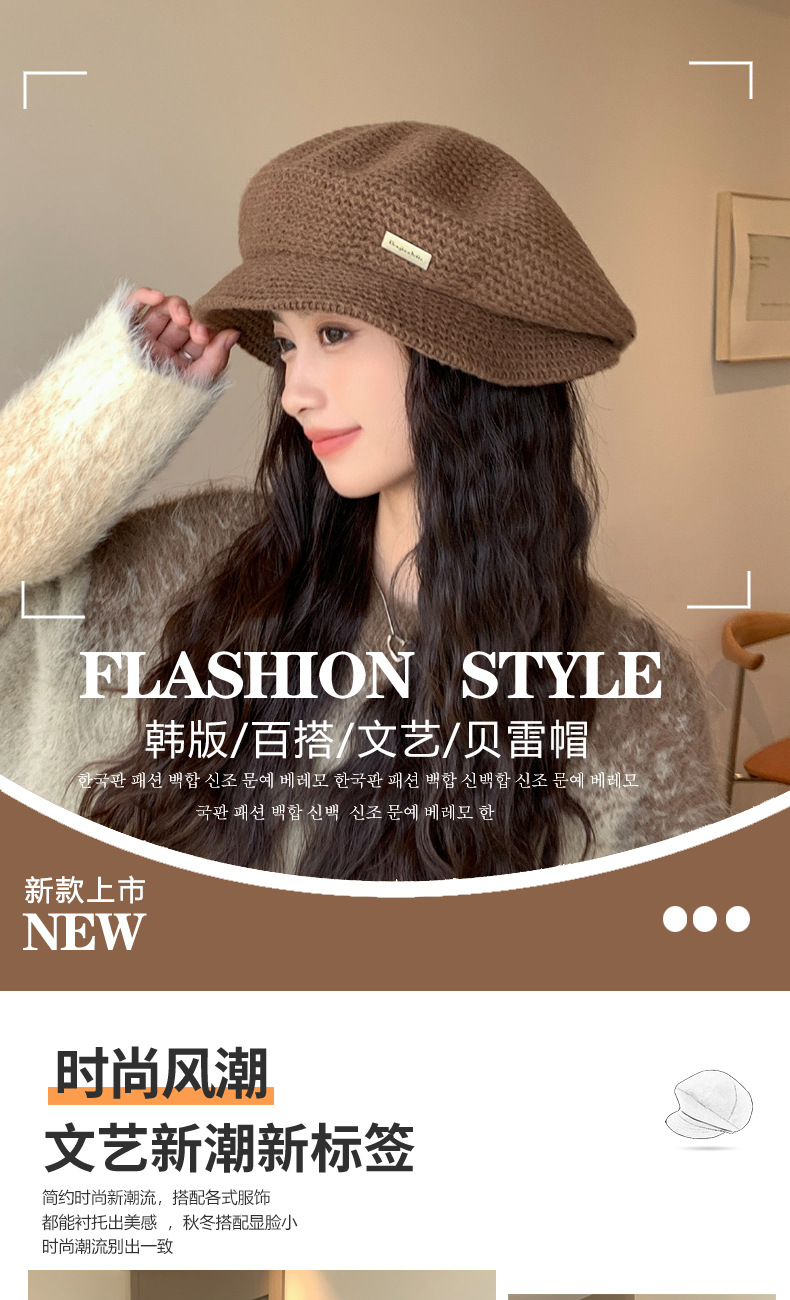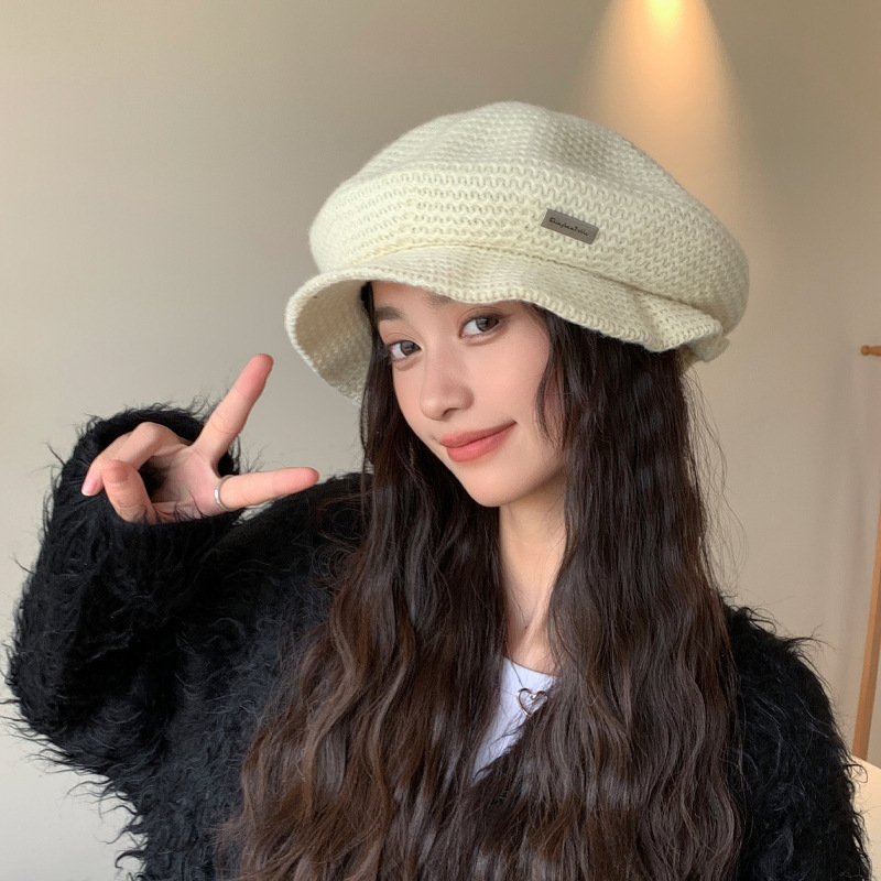 秋冬新款美拉德复古针织贝雷帽大头围显脸小画家帽韩版百搭帽子女