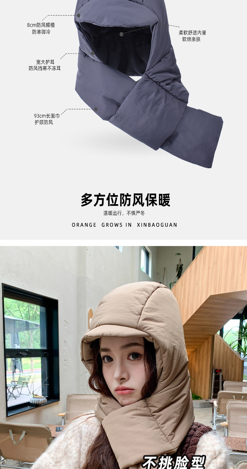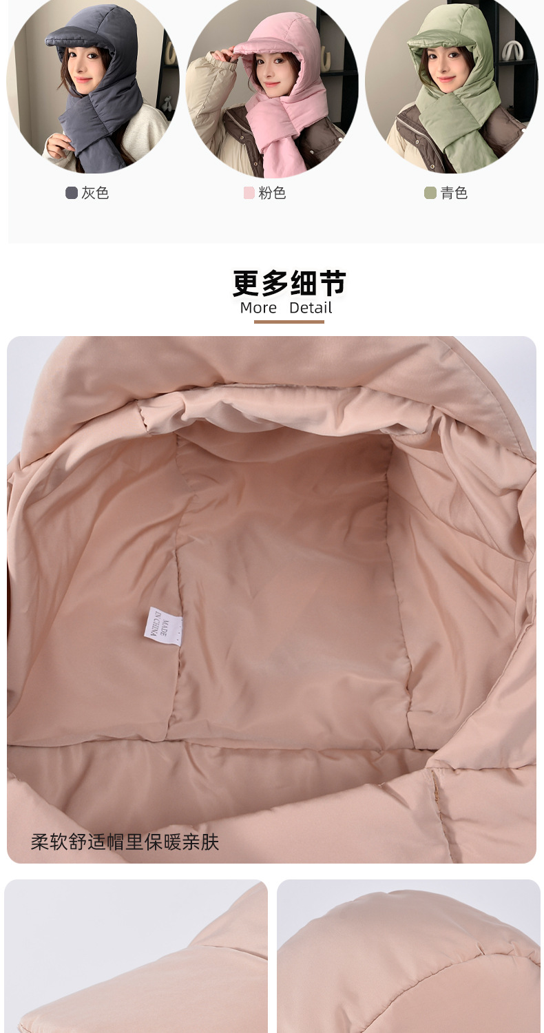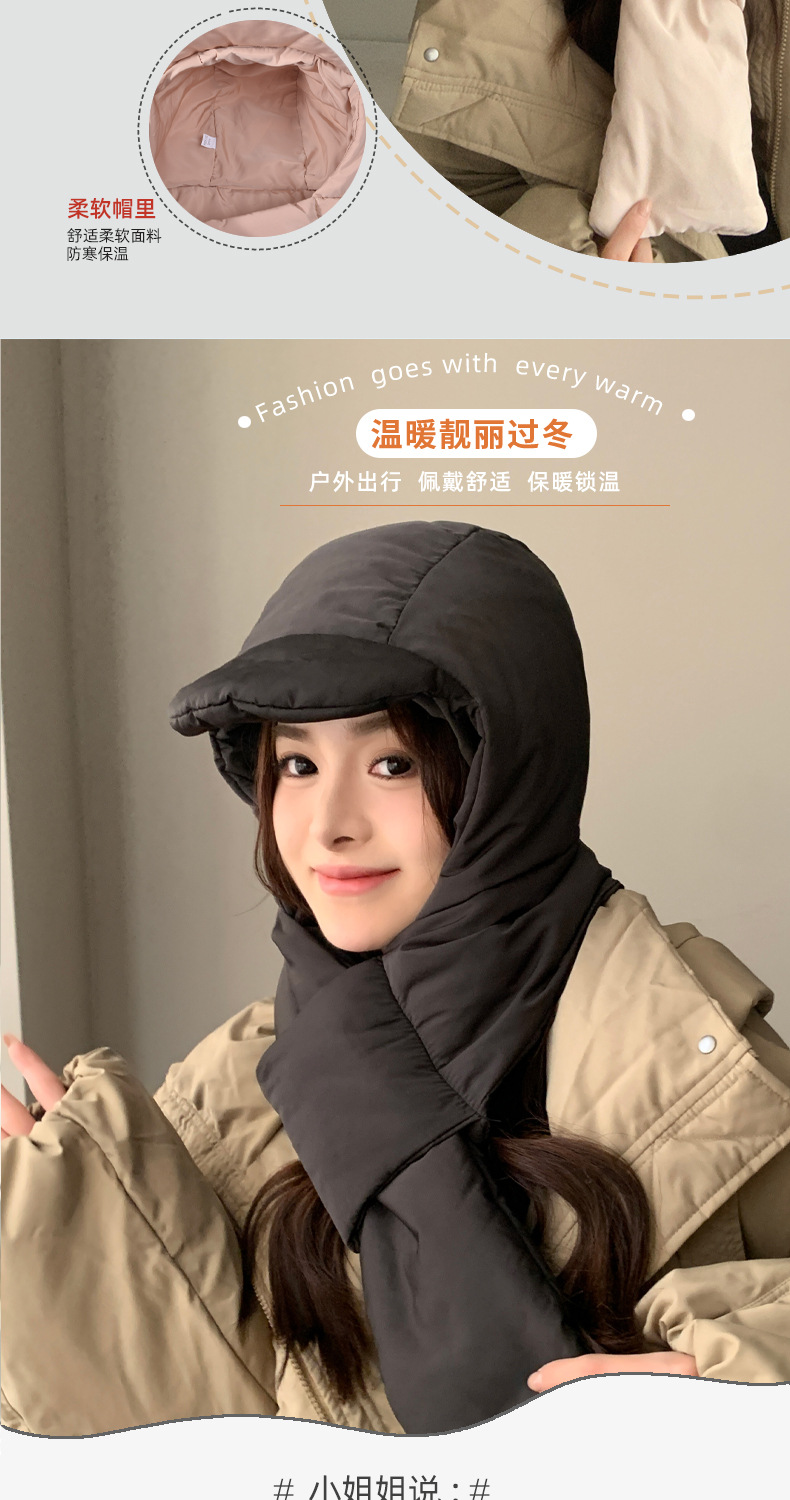 冬季防风护耳套头帽户外百搭时尚帽子围巾一体骑车滑雪女士保暖帽