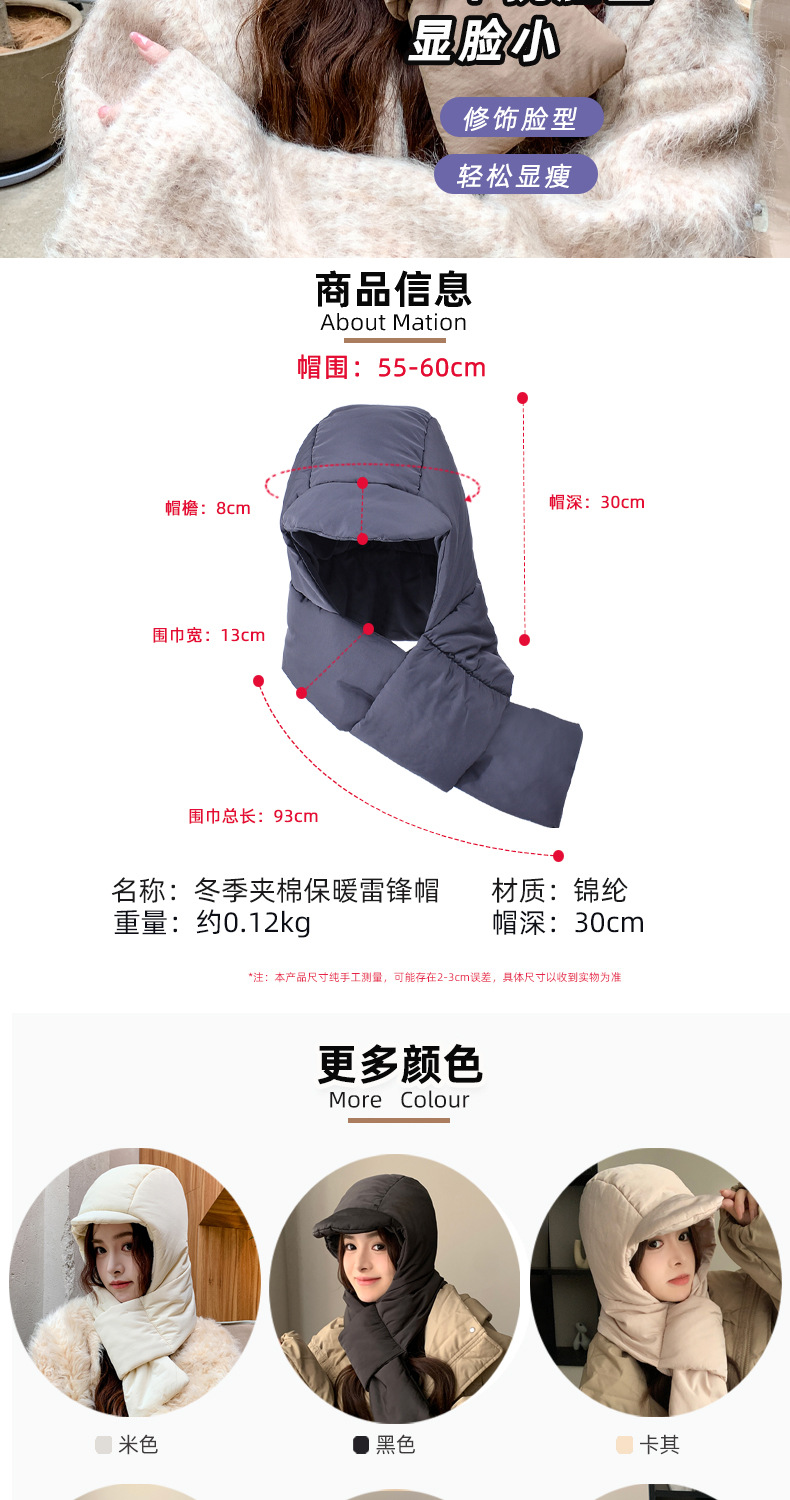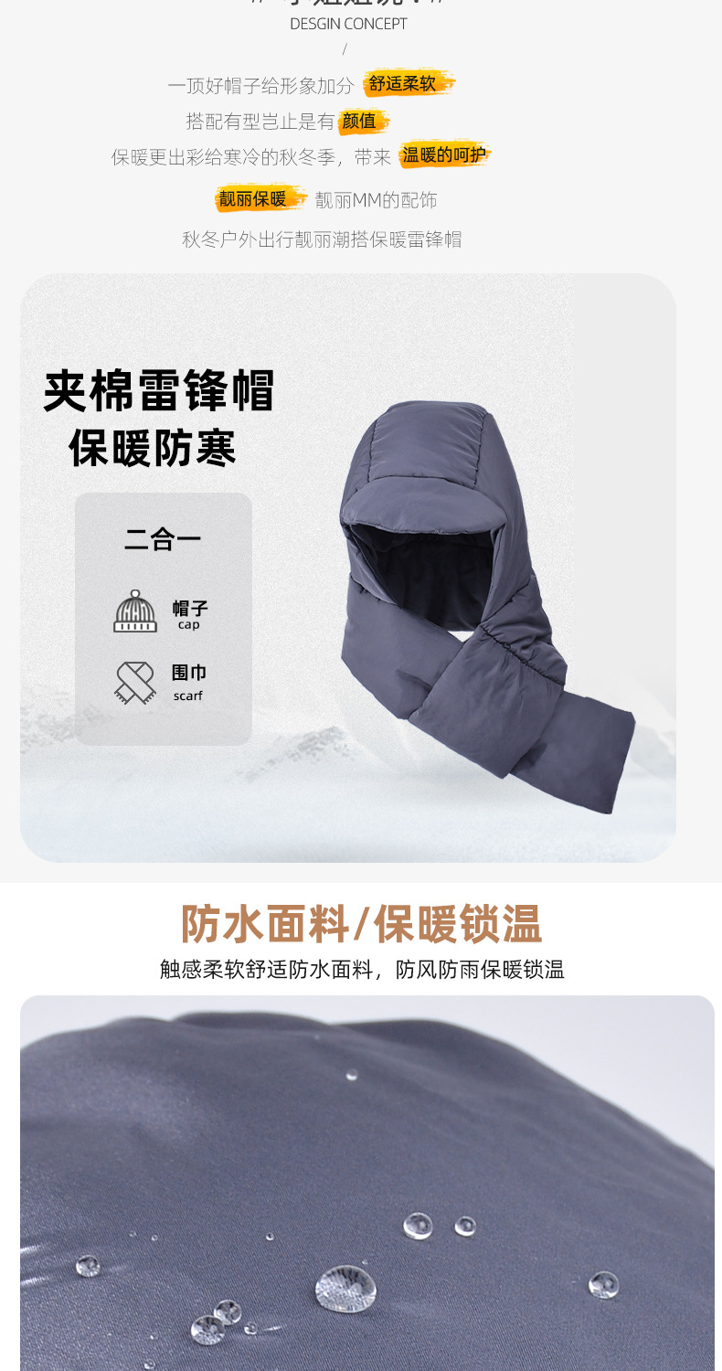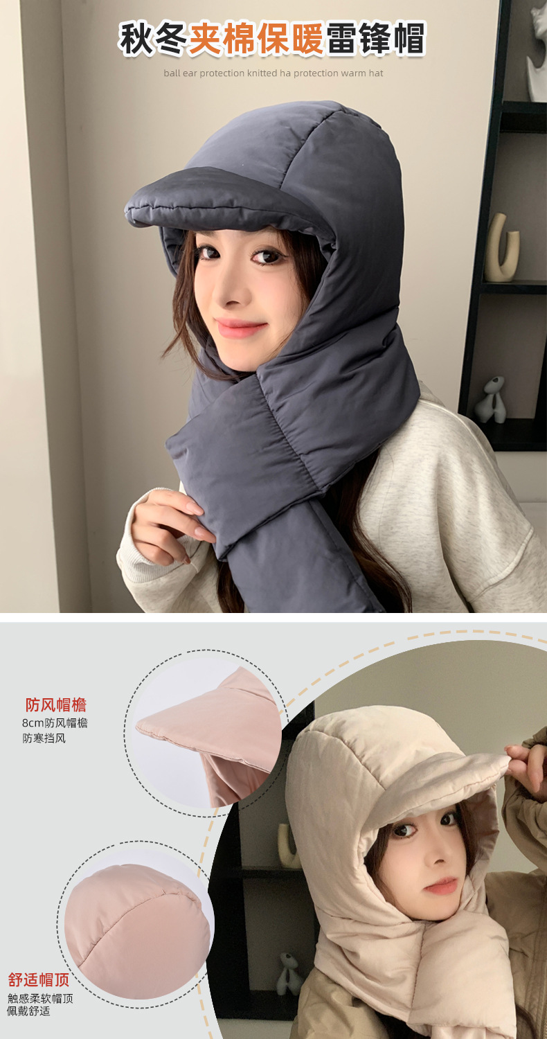 冬季防风护耳套头帽户外百搭时尚帽子围巾一体骑车滑雪女士保暖帽