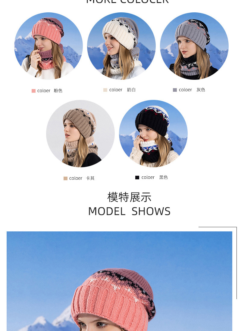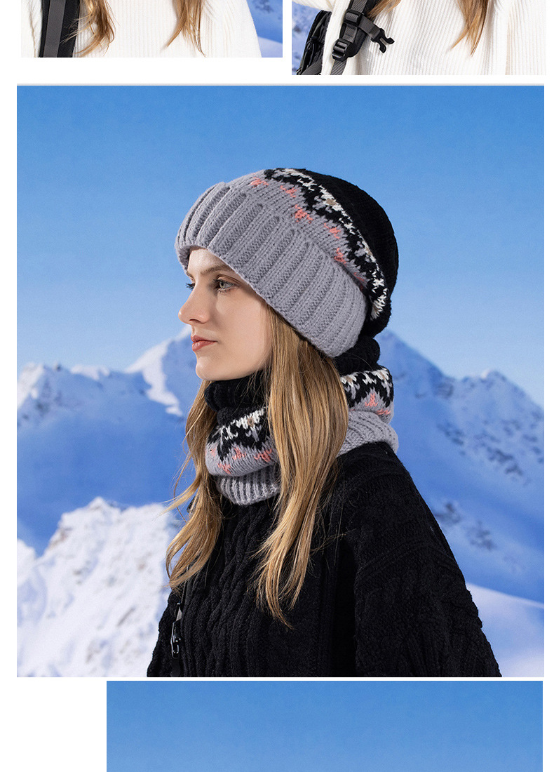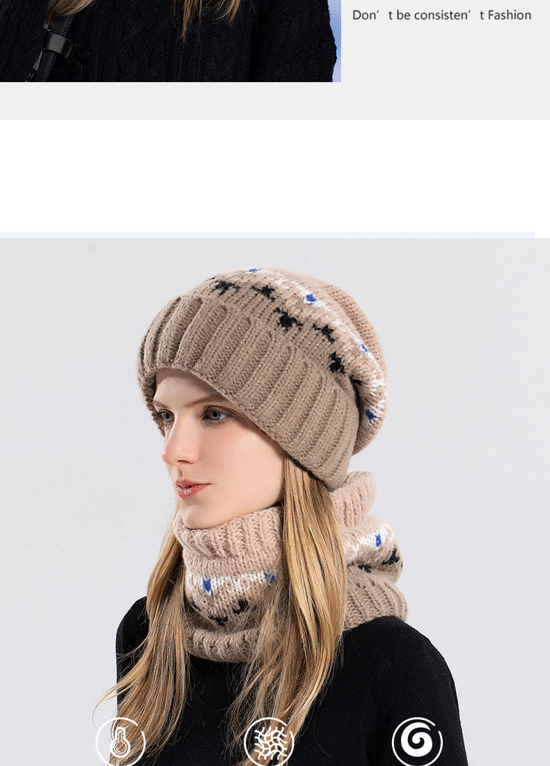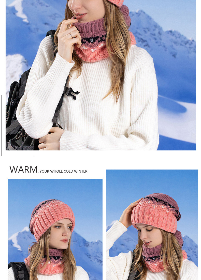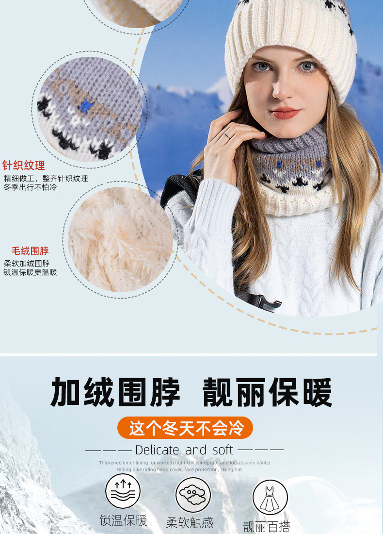 8399跨境帽子围脖两件套冬季防寒保暖粗线提花针织套头帽女毛线帽