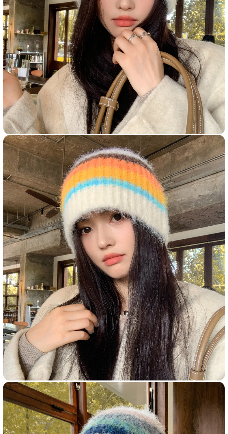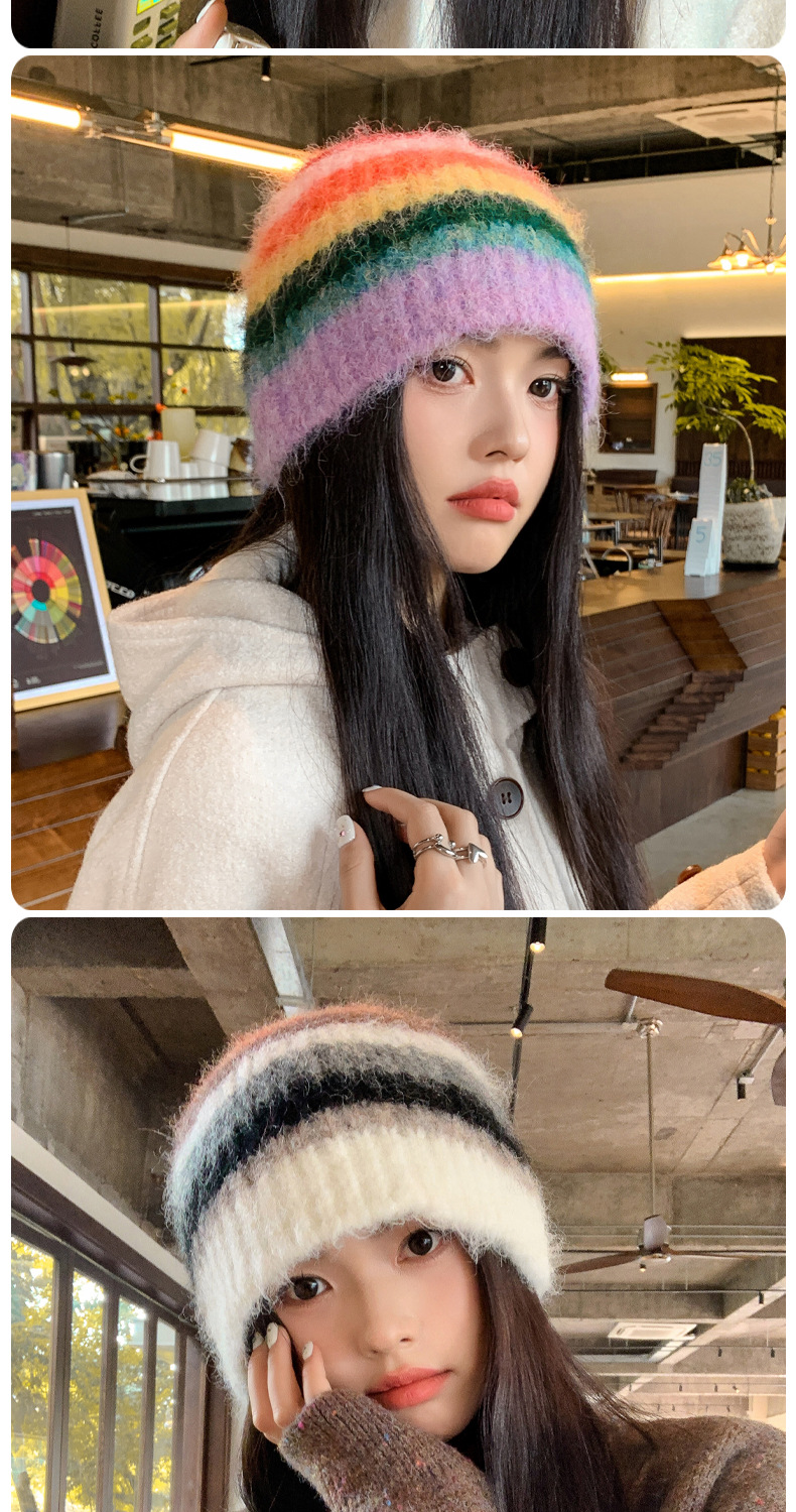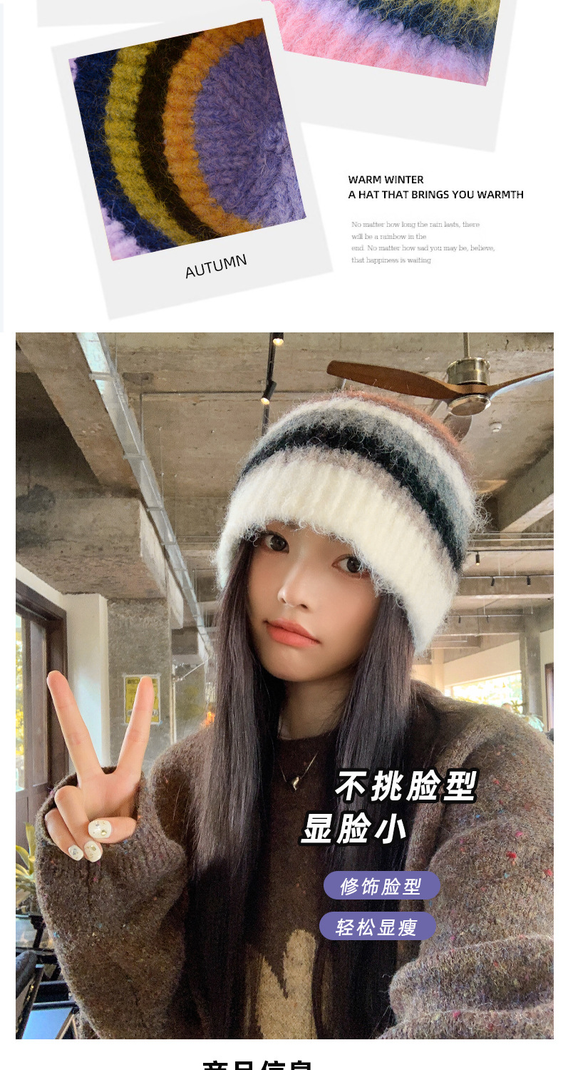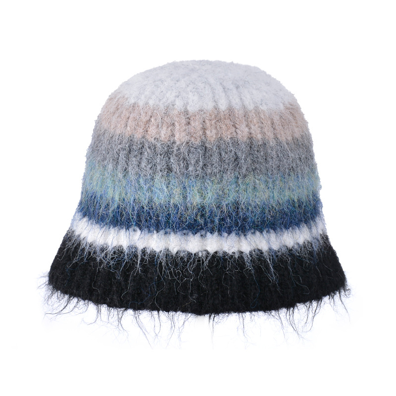 多巴胺彩色条纹水桶帽子女秋冬毛绒护耳针织毛线渔夫帽显脸小盆帽