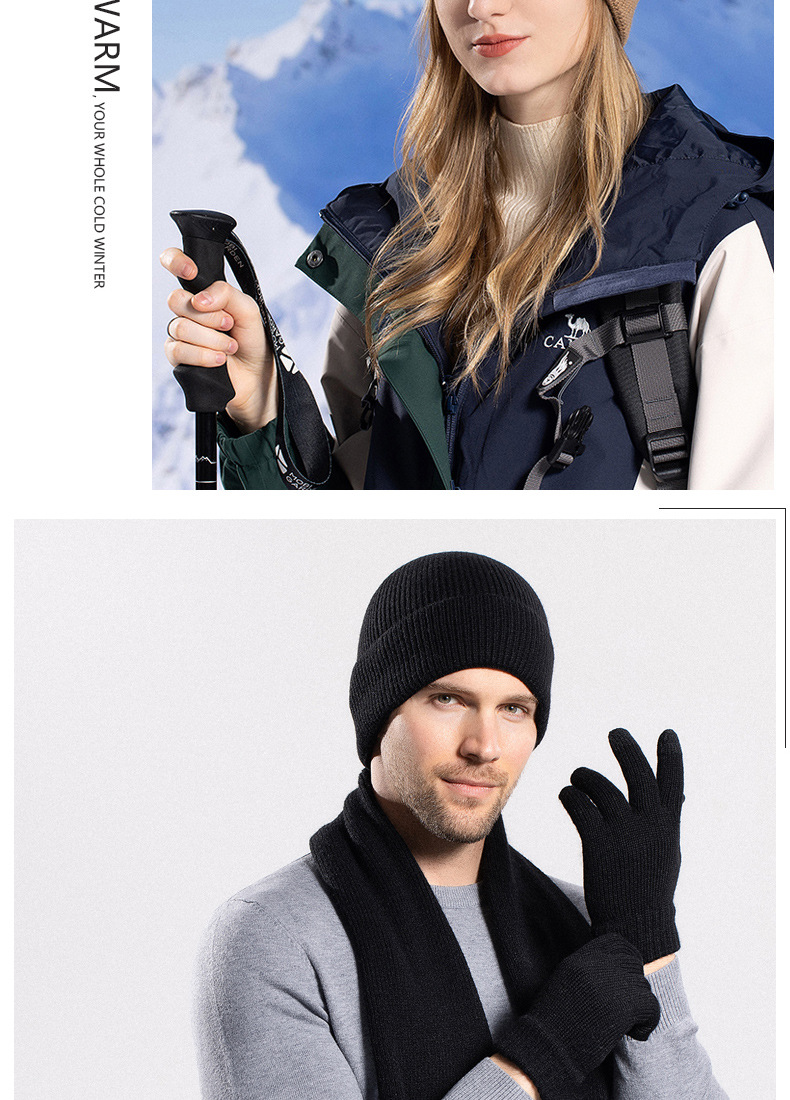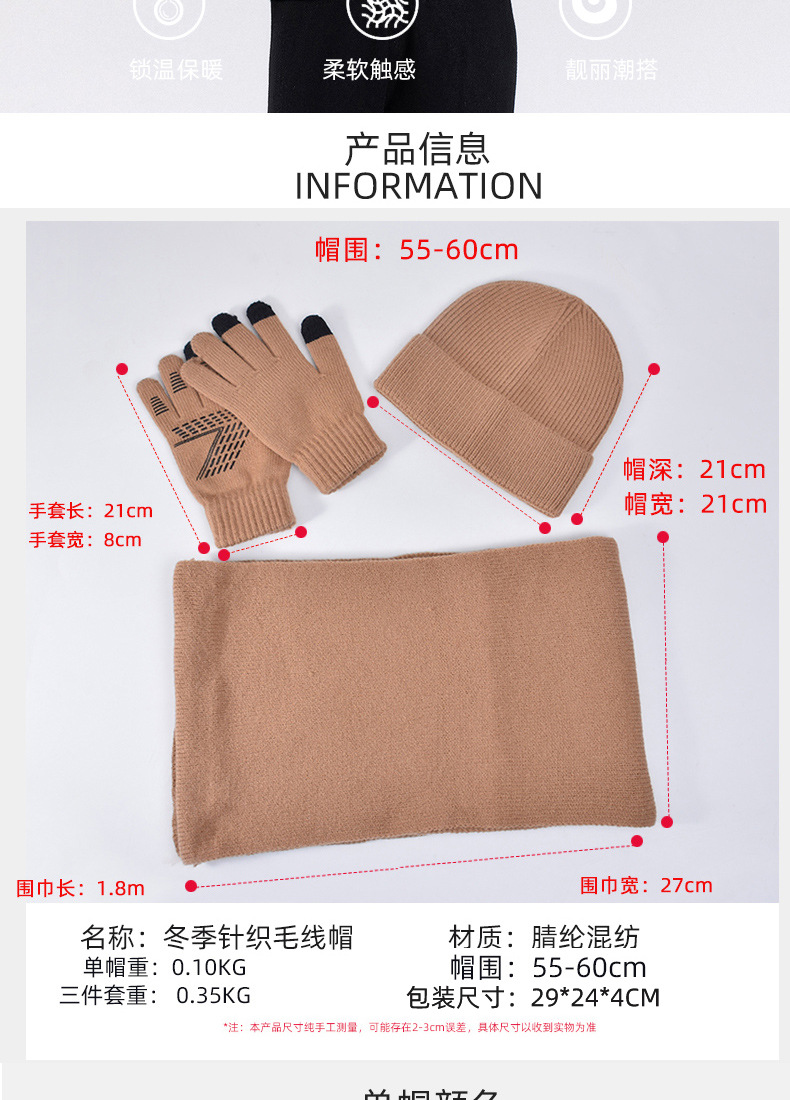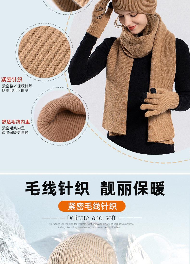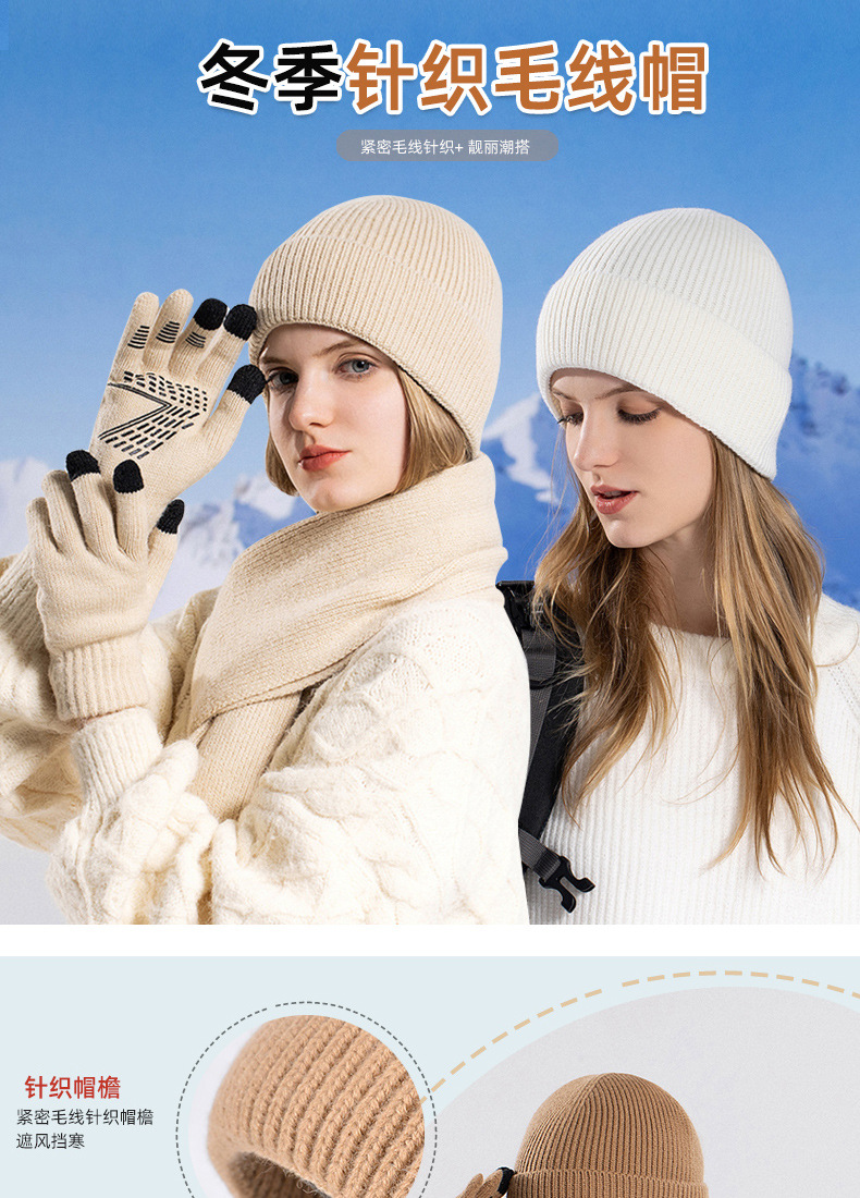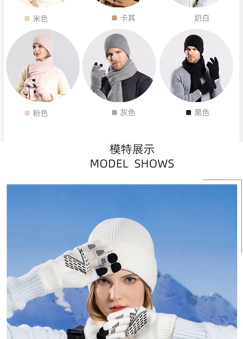 8396跨境帽子手套围巾套装男冬季保暖针织帽户外骑行护耳毛线帽女