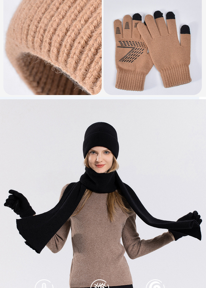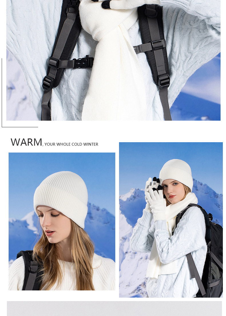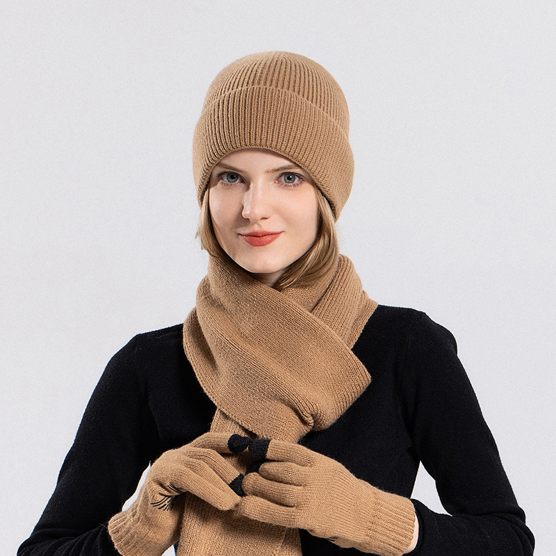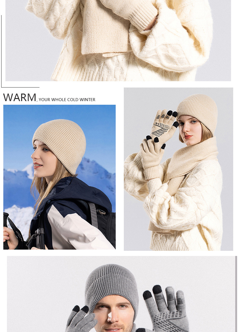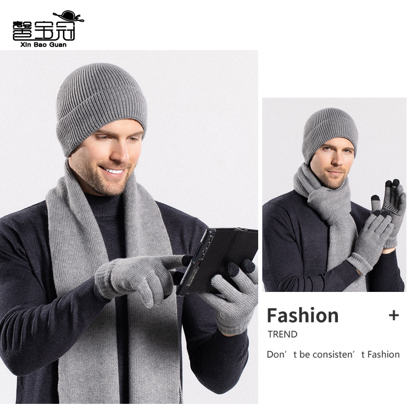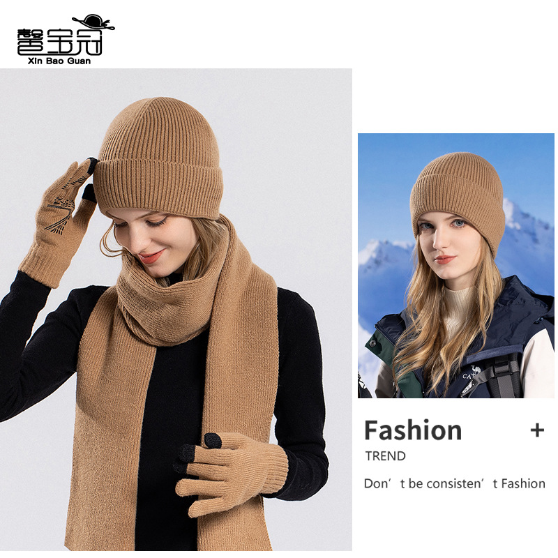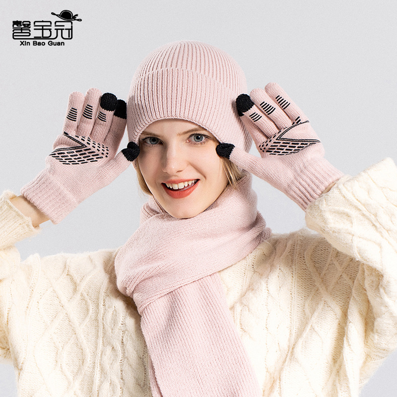 8396跨境帽子手套围巾套装男冬季保暖针织帽户外骑行护耳毛线帽女