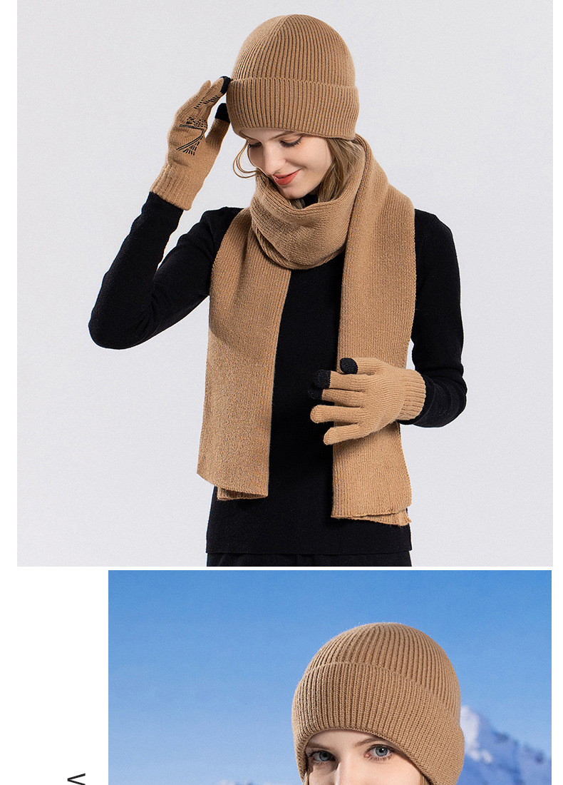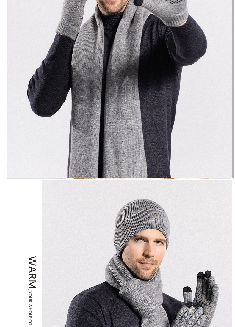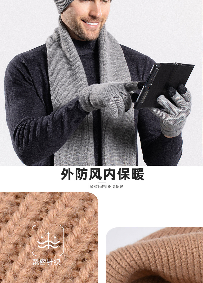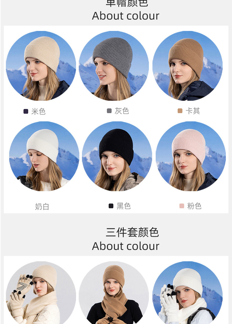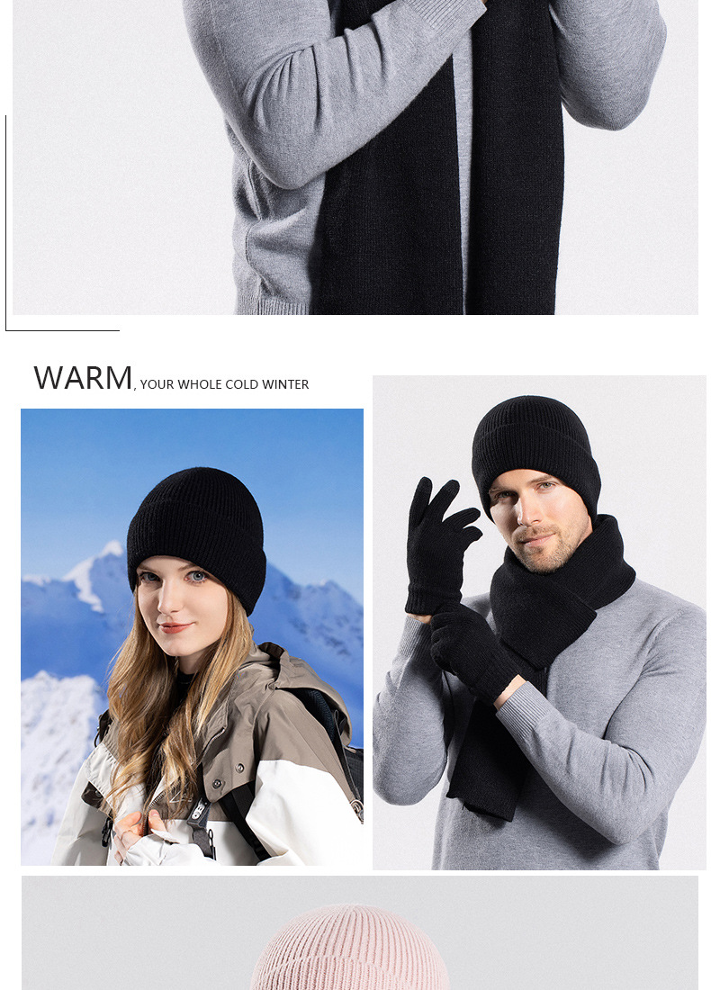 8396跨境帽子手套围巾套装男冬季保暖针织帽户外骑行护耳毛线帽女