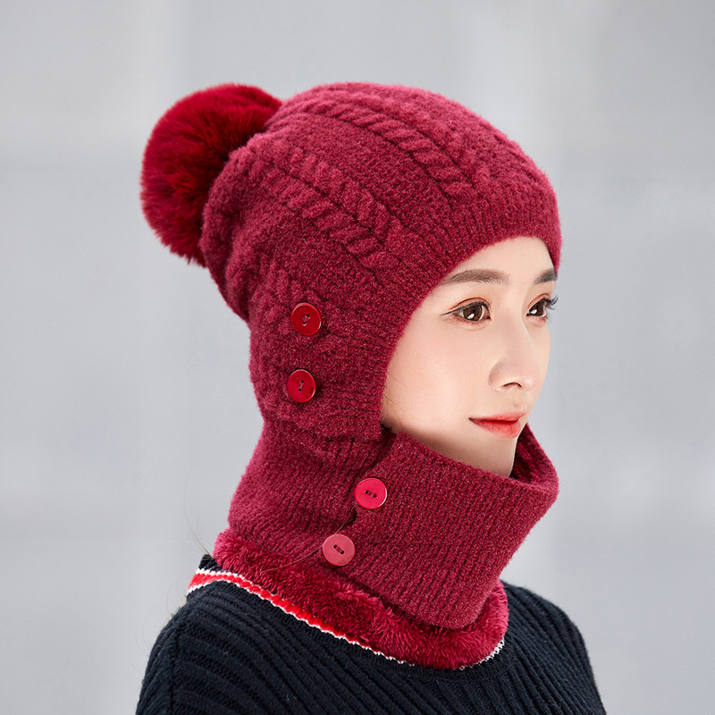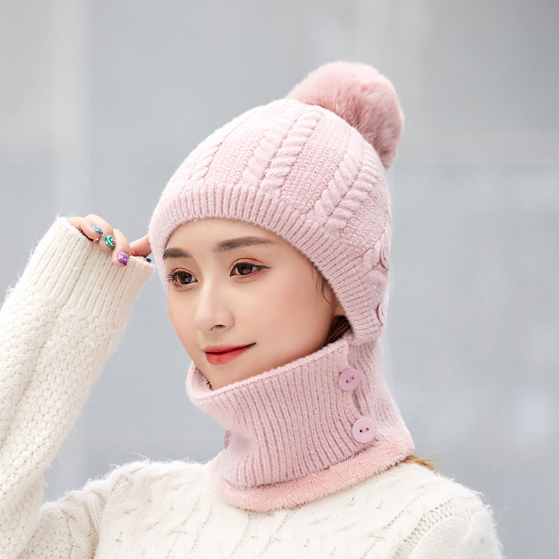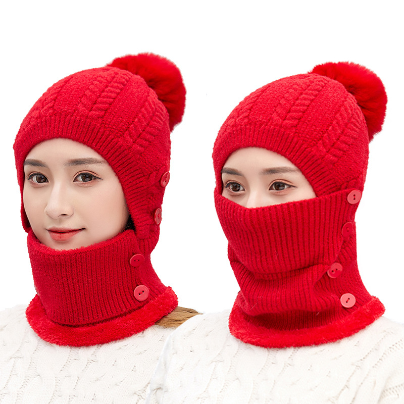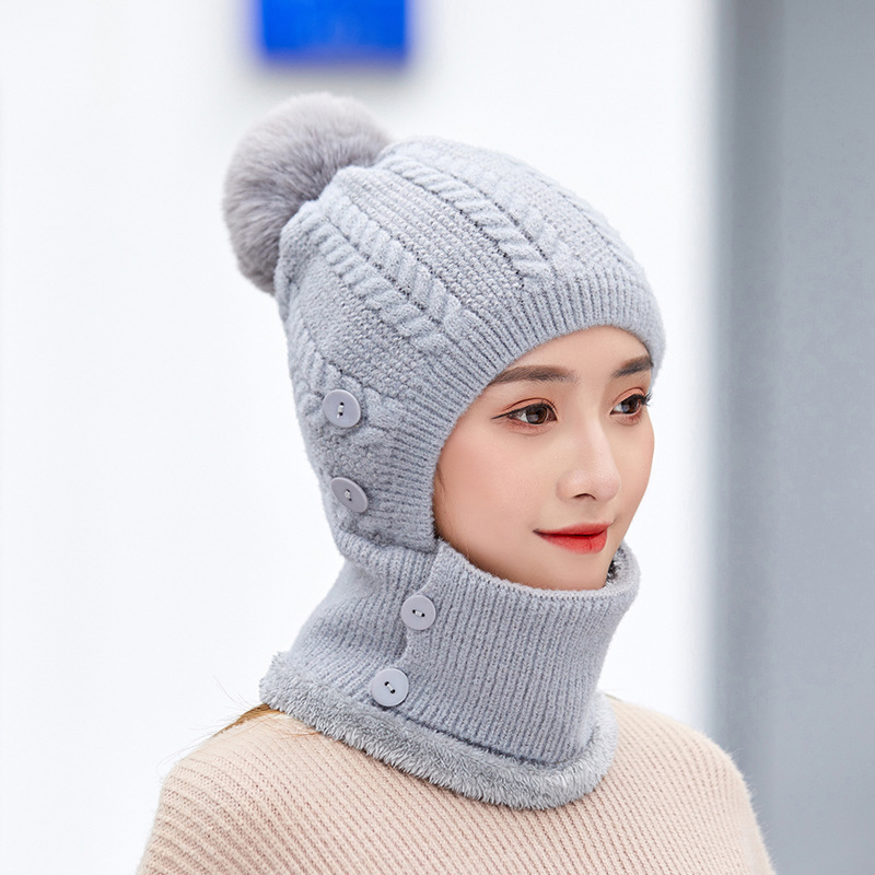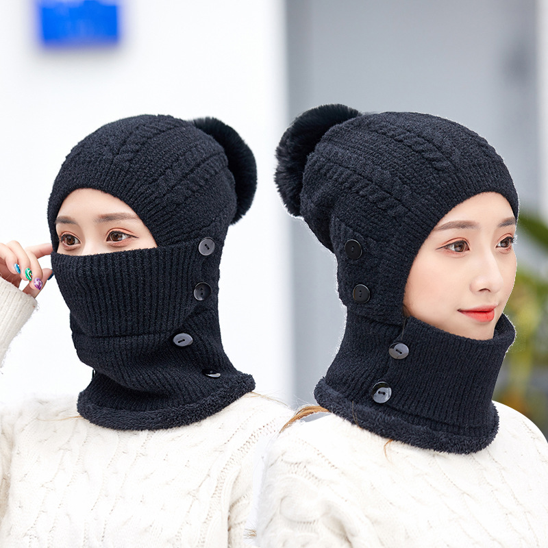 9464冬季女士一体保暖帽子针织围脖口罩连体帽户外骑车加绒毛线帽