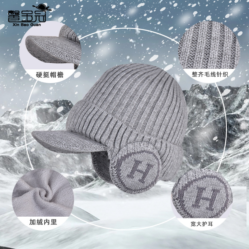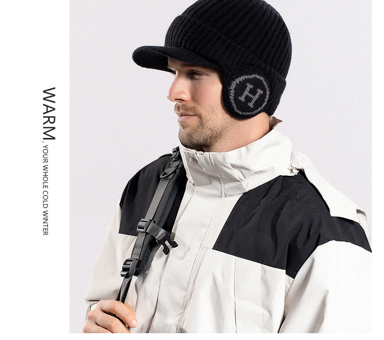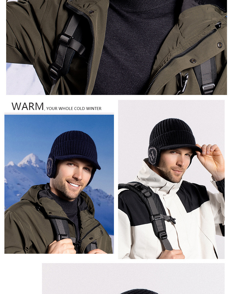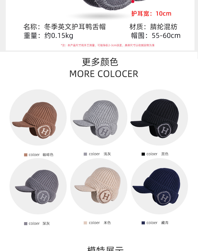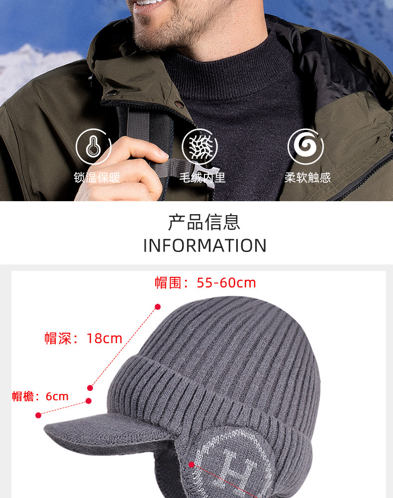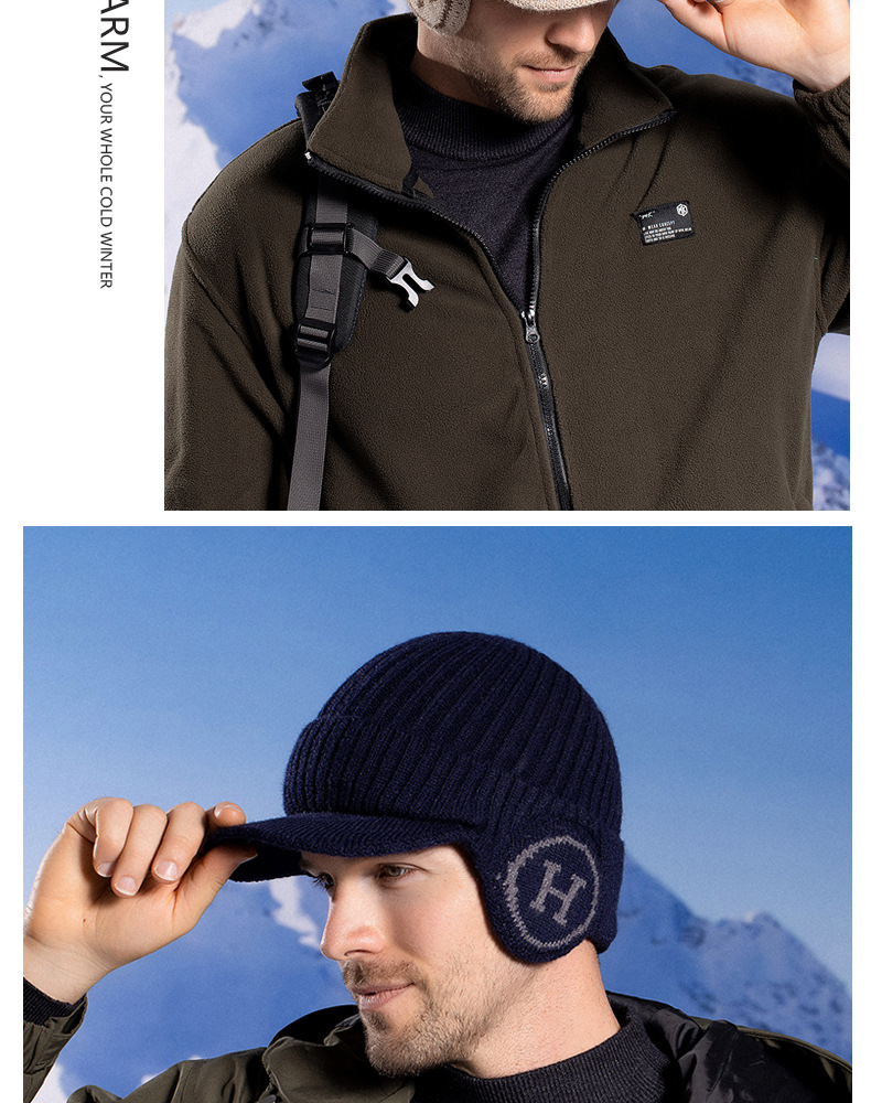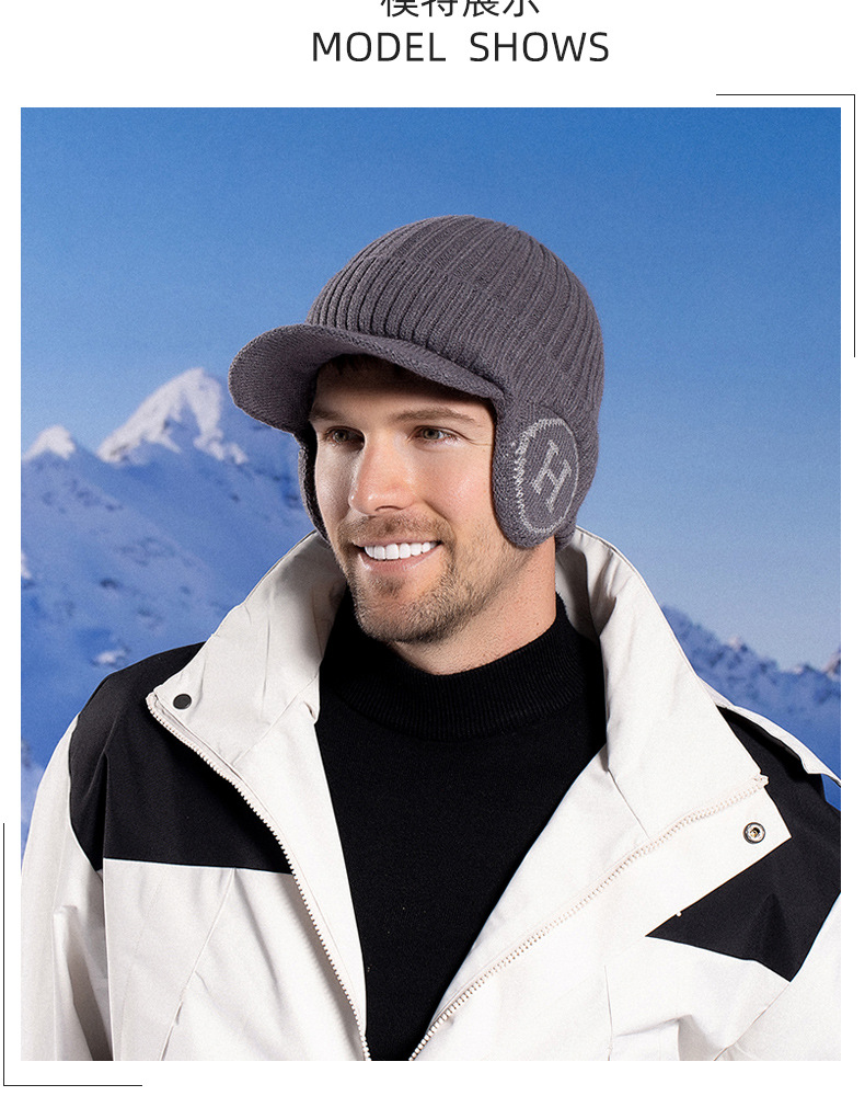 9159跨境冬季加绒护耳棒球帽子男士套头帽户外防寒保暖针织毛线帽