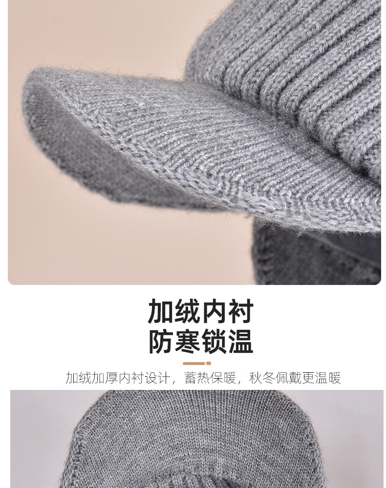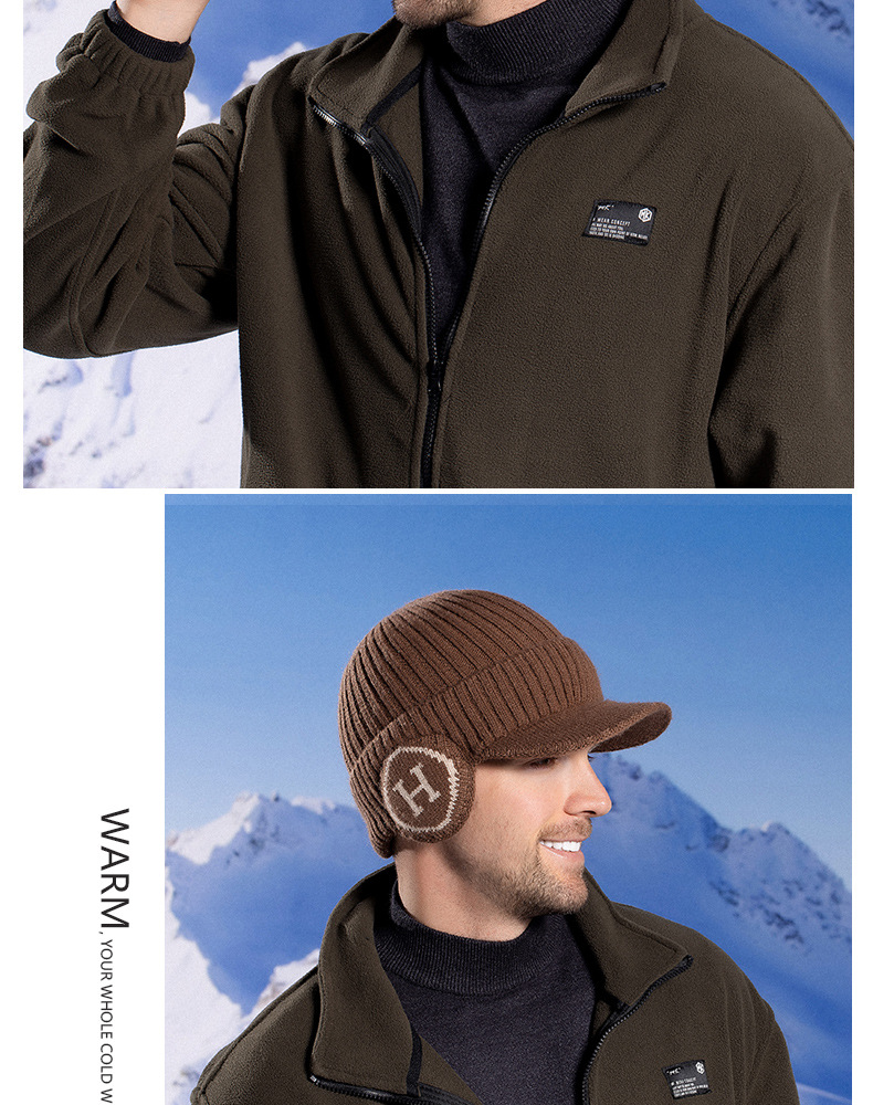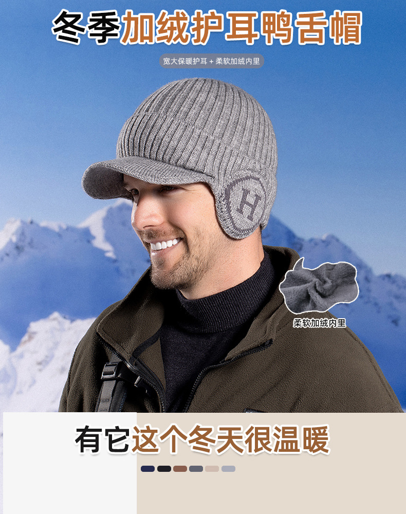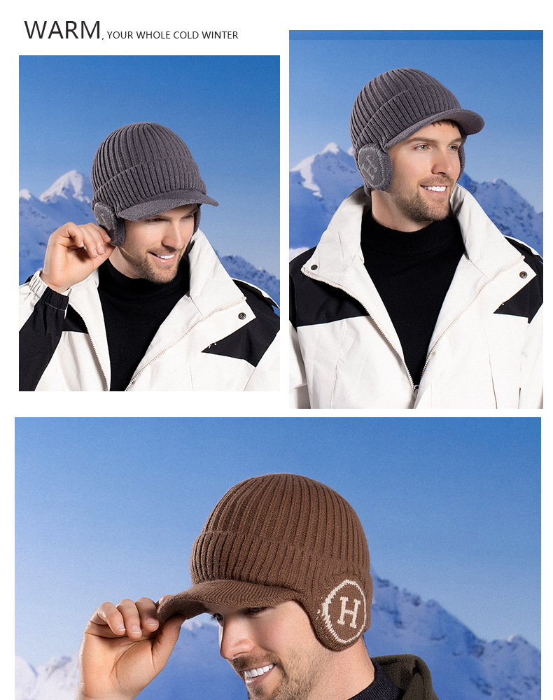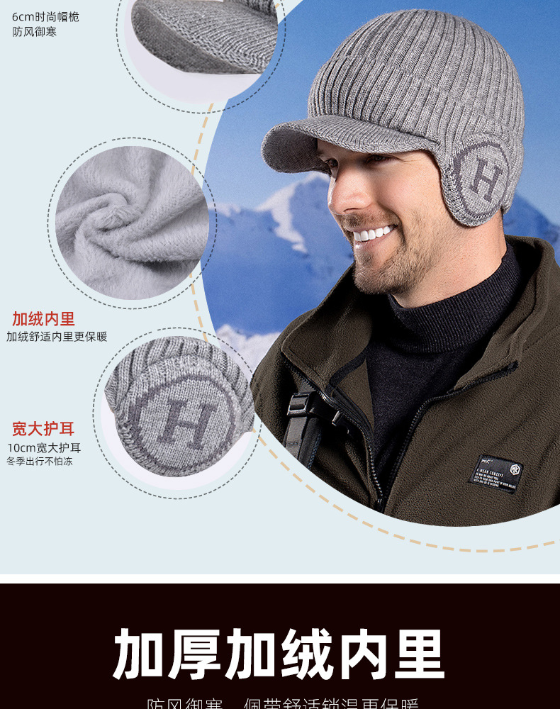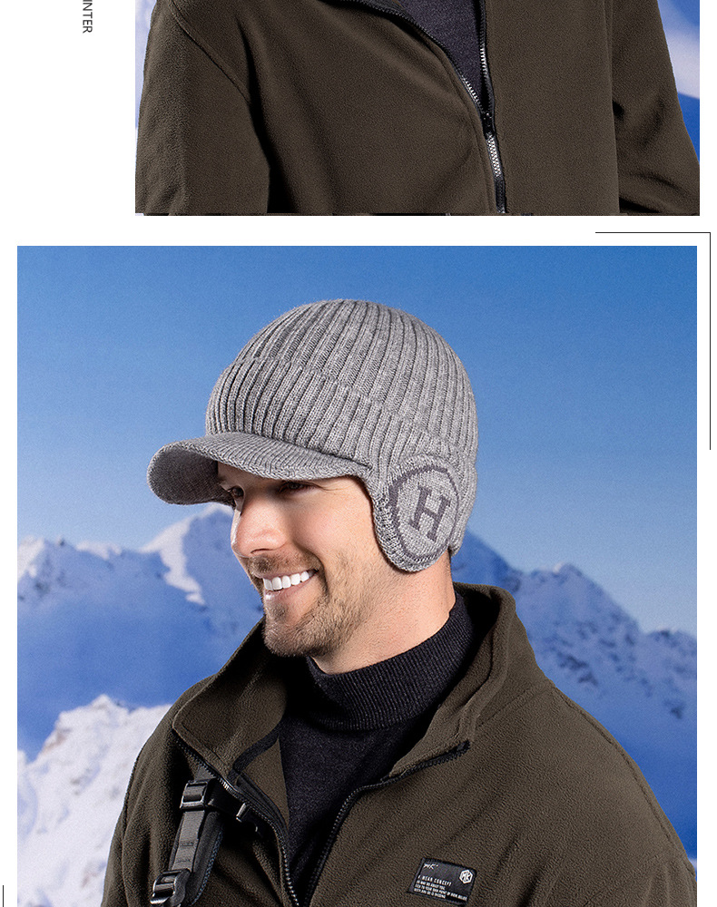 9159跨境冬季加绒护耳棒球帽子男士套头帽户外防寒保暖针织毛线帽