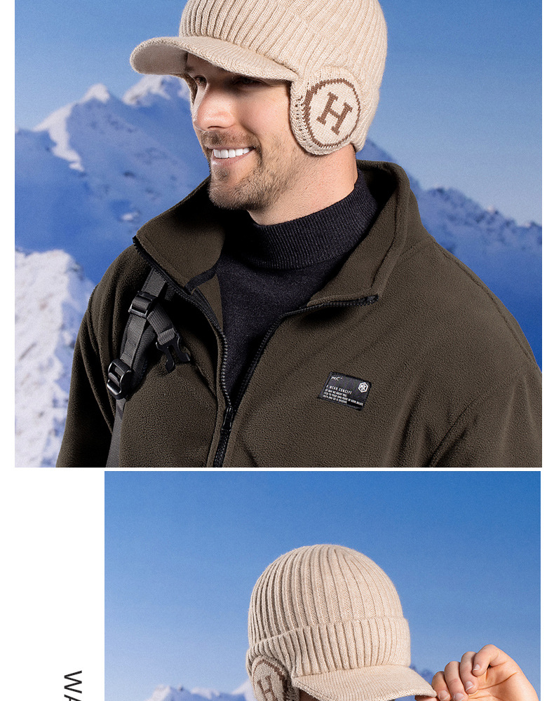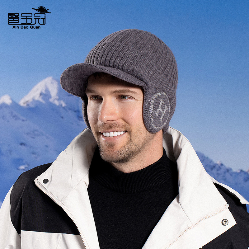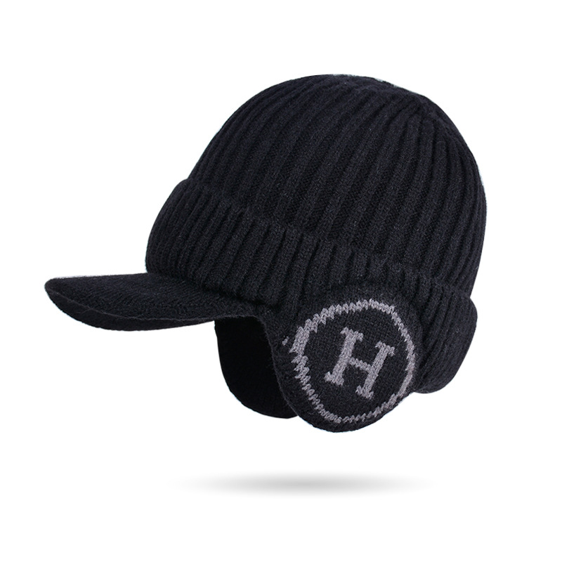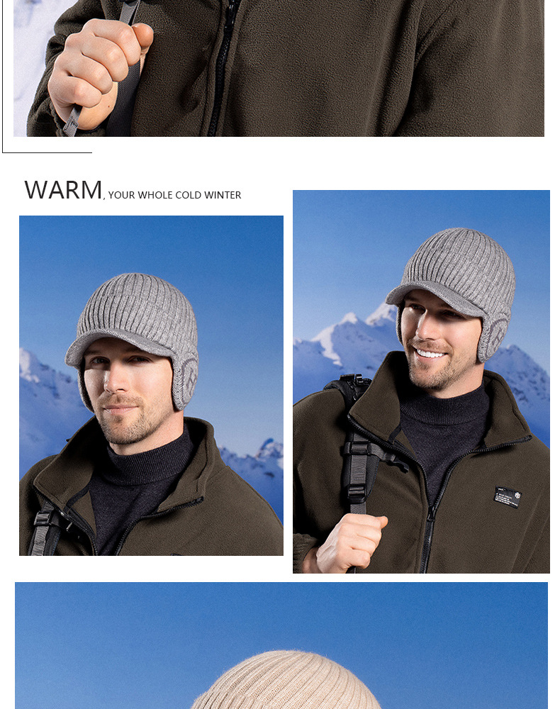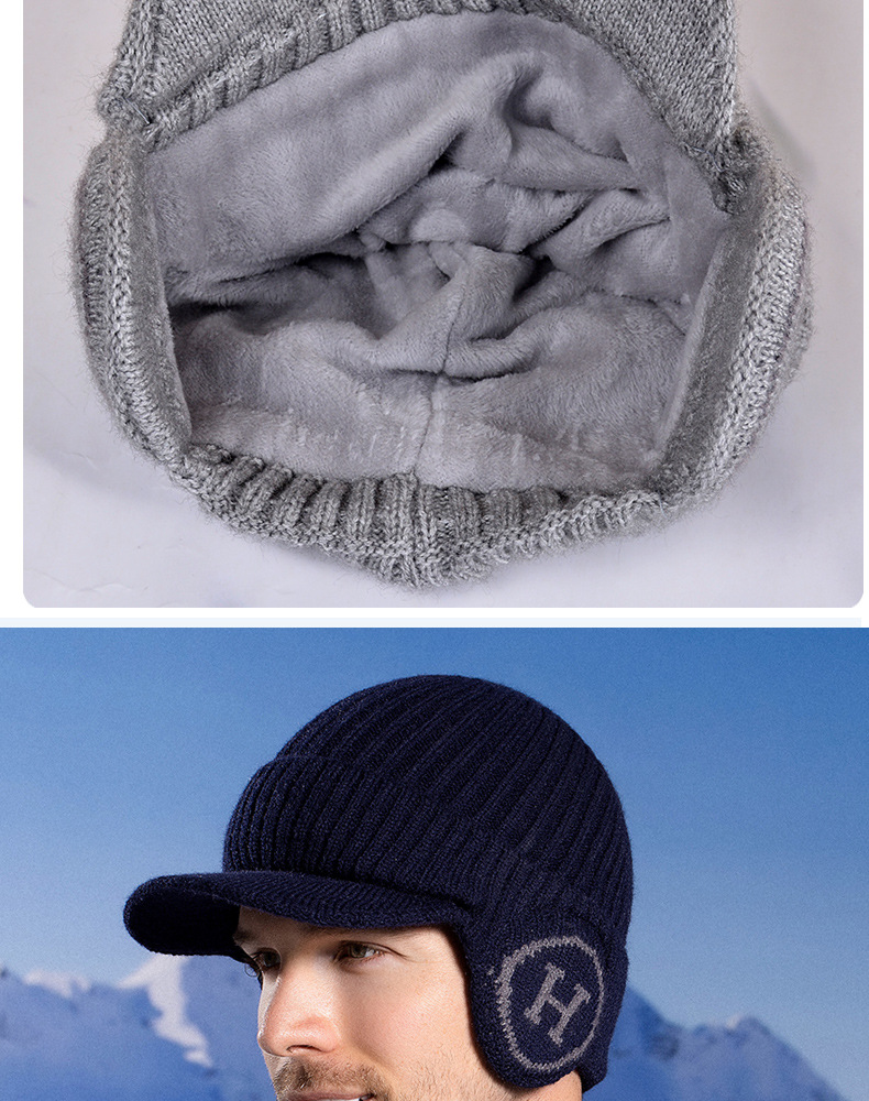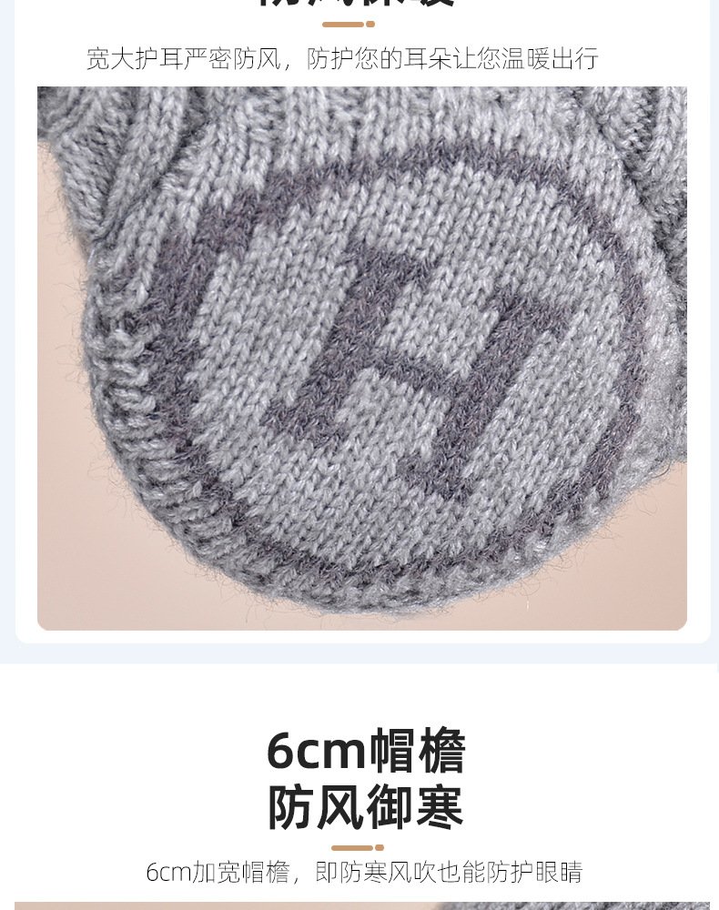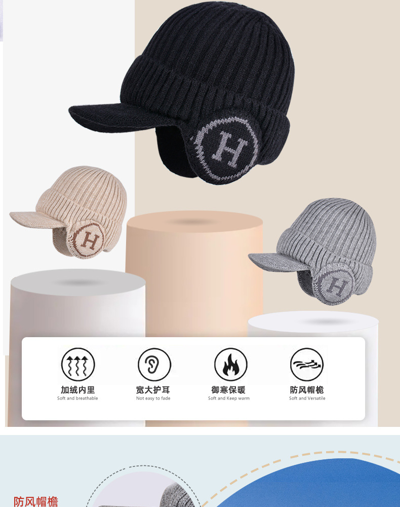 9159跨境冬季加绒护耳棒球帽子男士套头帽户外防寒保暖针织毛线帽