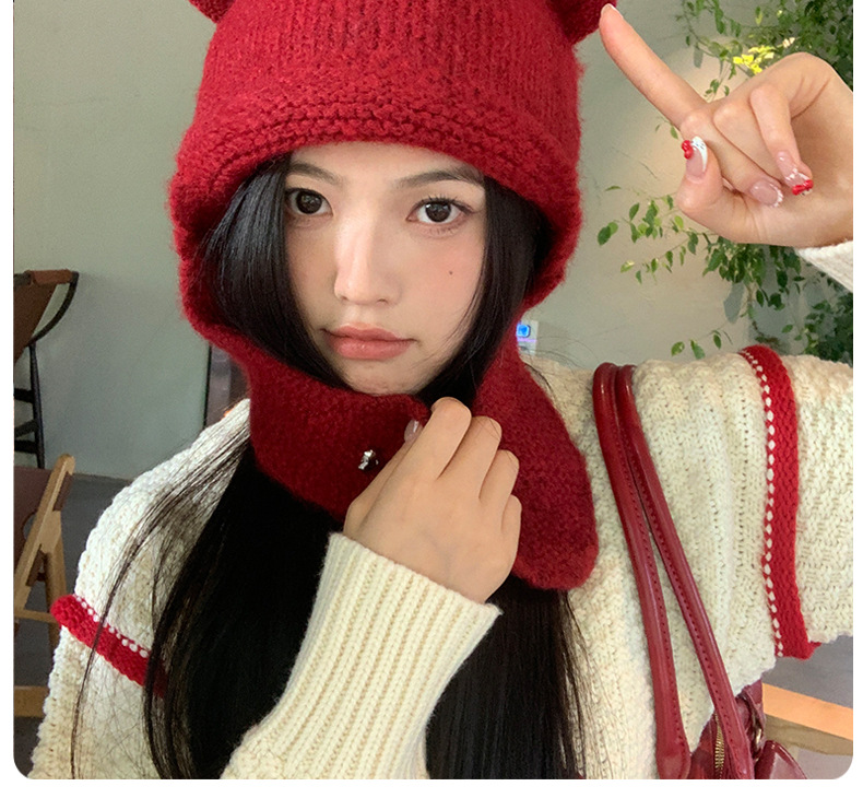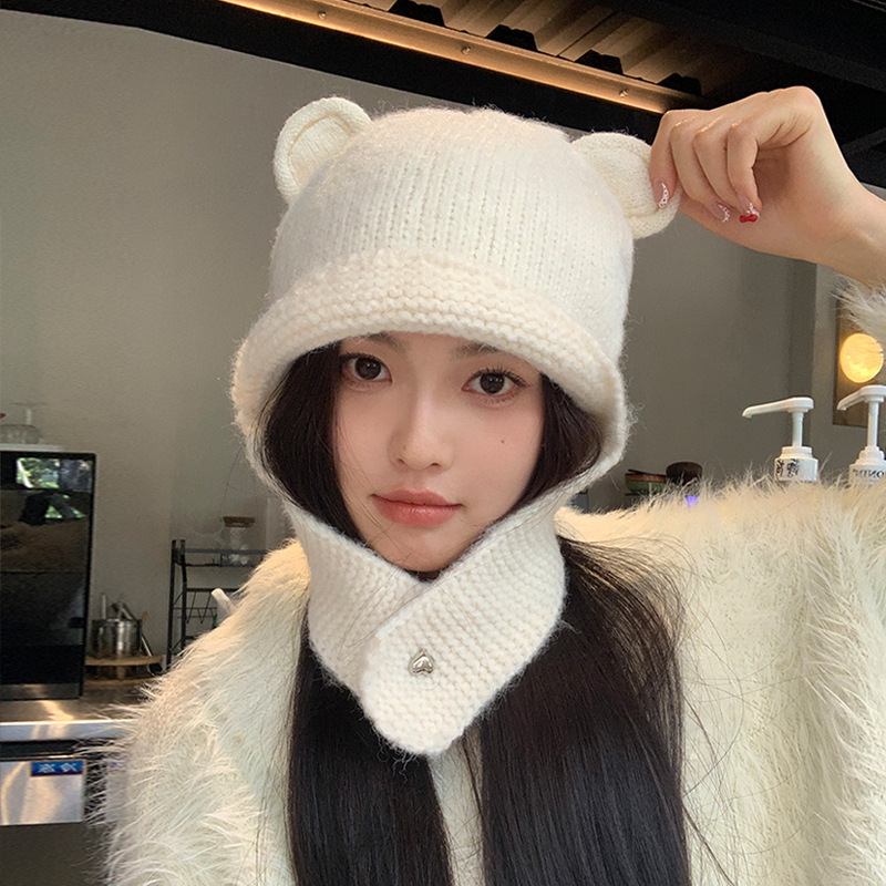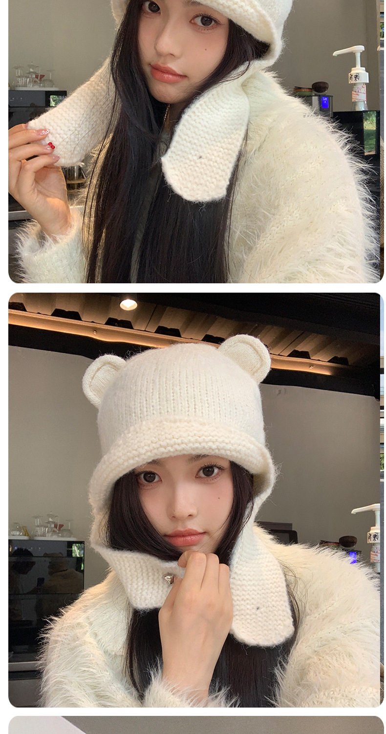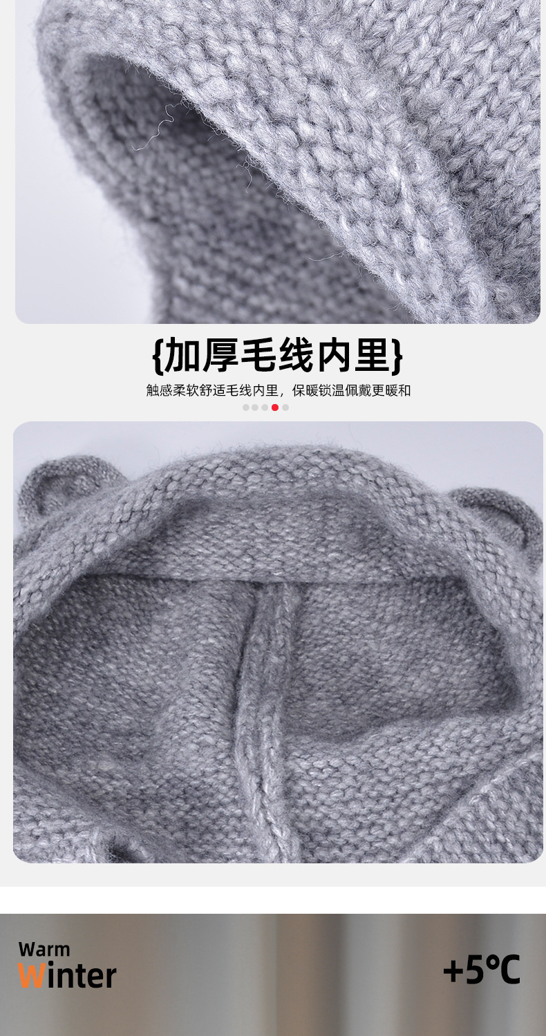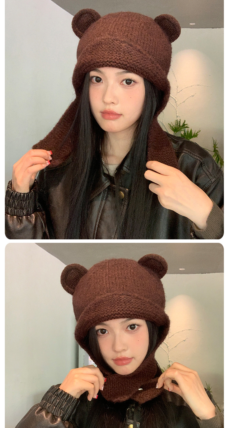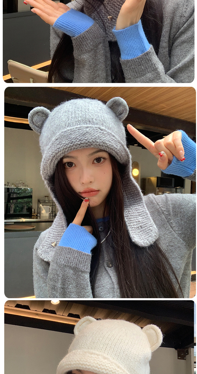 新款可爱小熊针织毛线帽秋冬季保暖套头帽子女户外防寒护耳雷锋帽