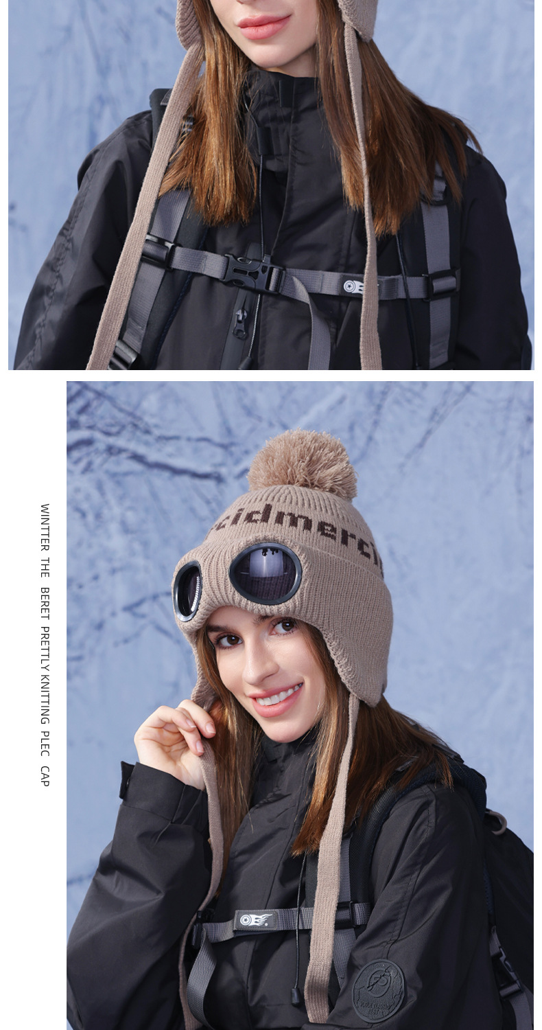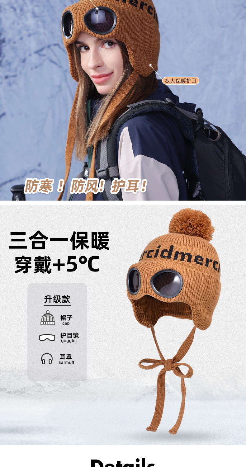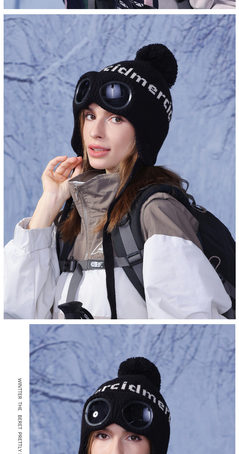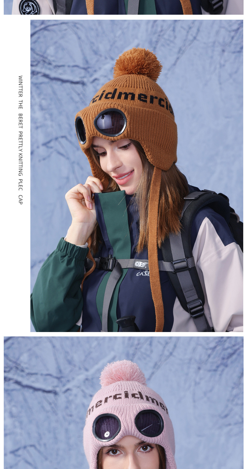 冬季套头帽子女带眼镜毛球针织毛线帽户外防寒保暖护耳雷锋帽跨境
