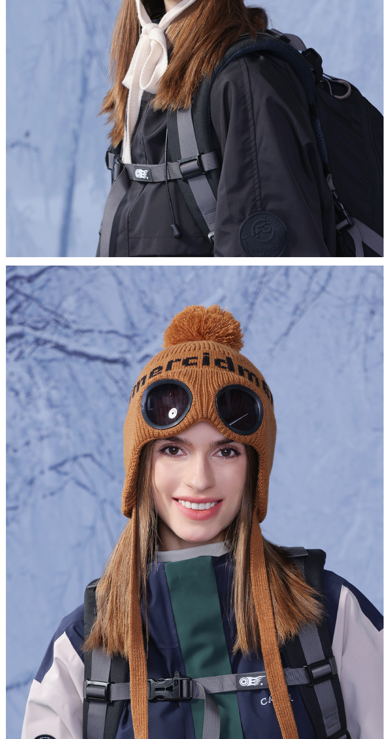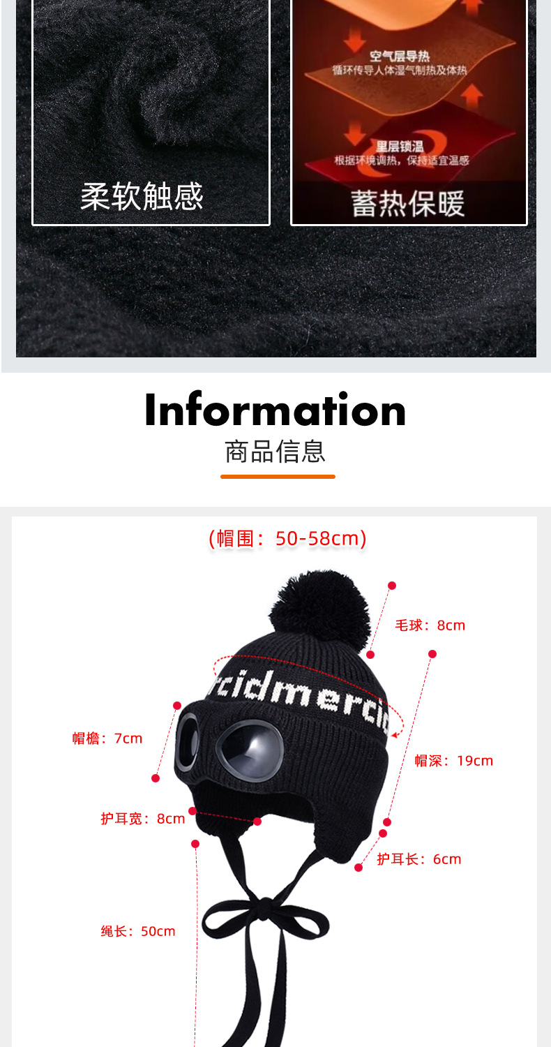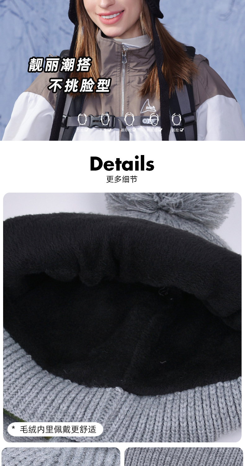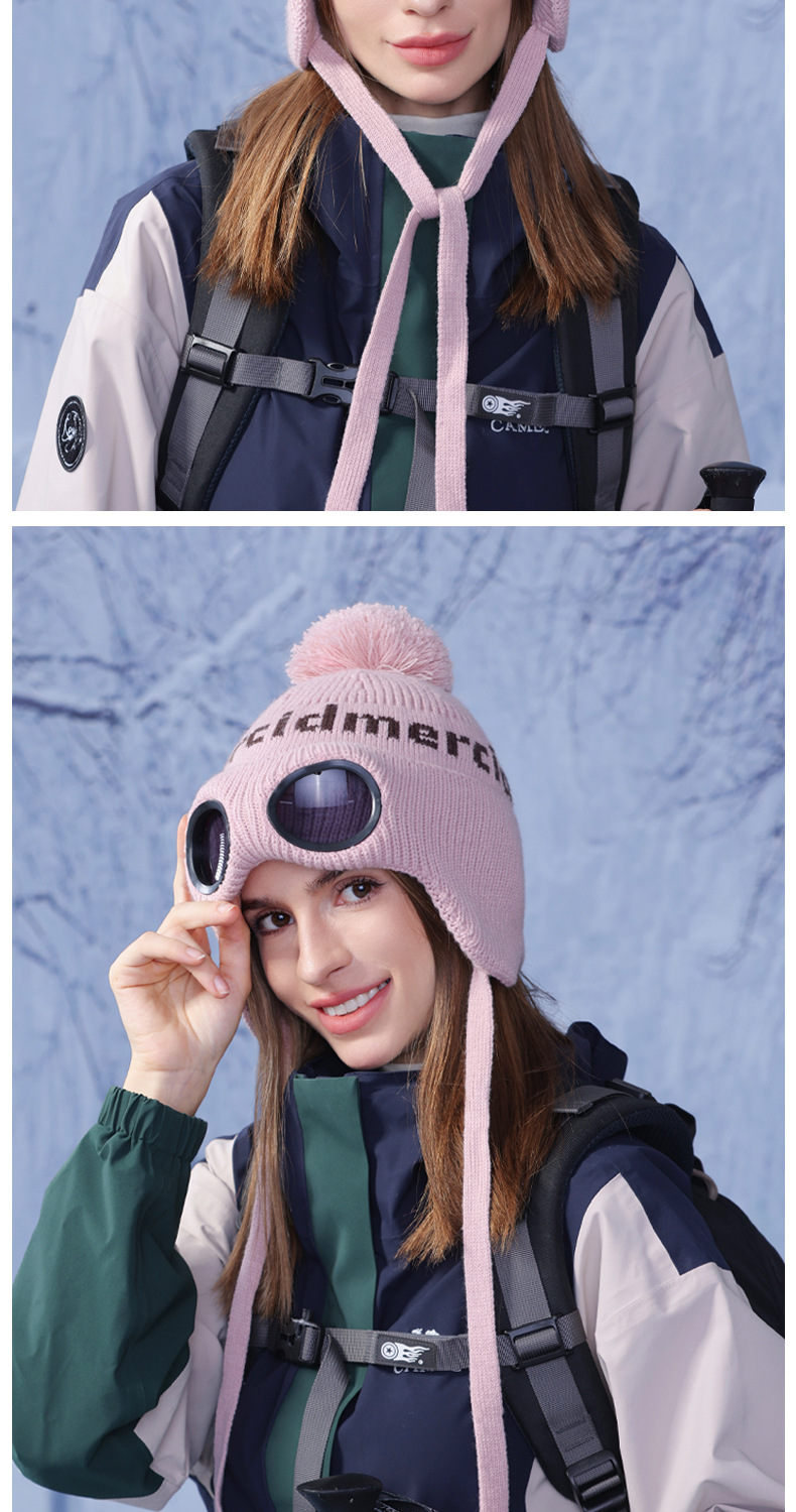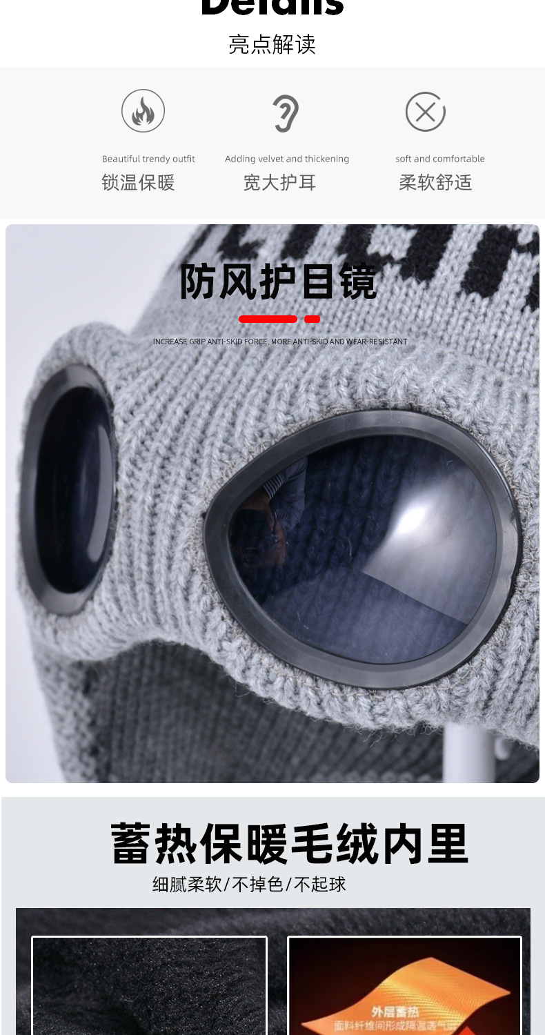 冬季套头帽子女带眼镜毛球针织毛线帽户外防寒保暖护耳雷锋帽跨境
