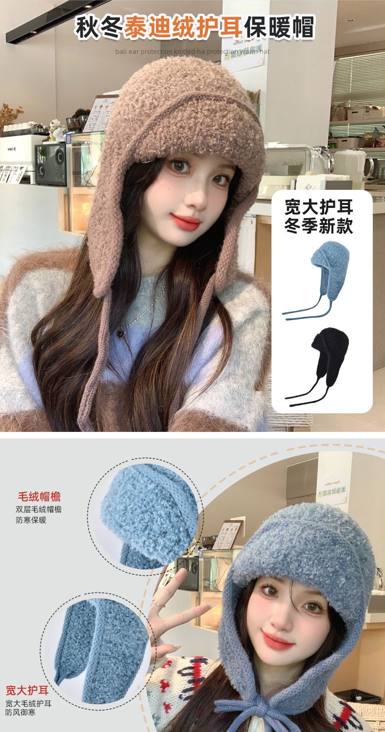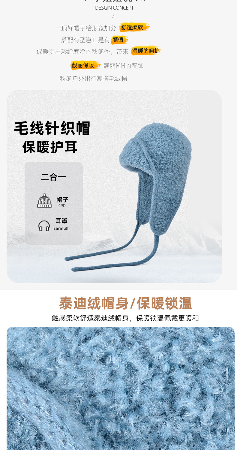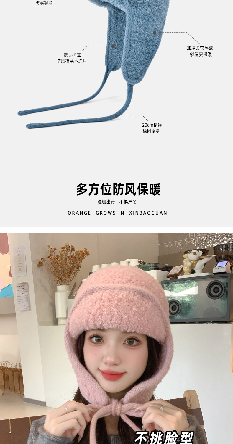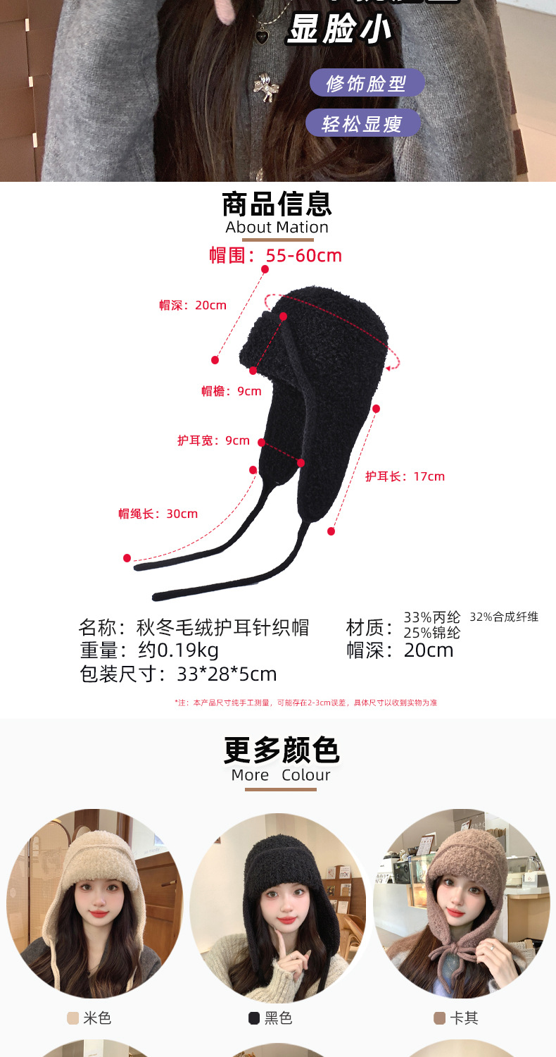 秋冬新款针织帽户外防寒保暖毛线帽韩版毛绒百搭显脸小护耳帽子女