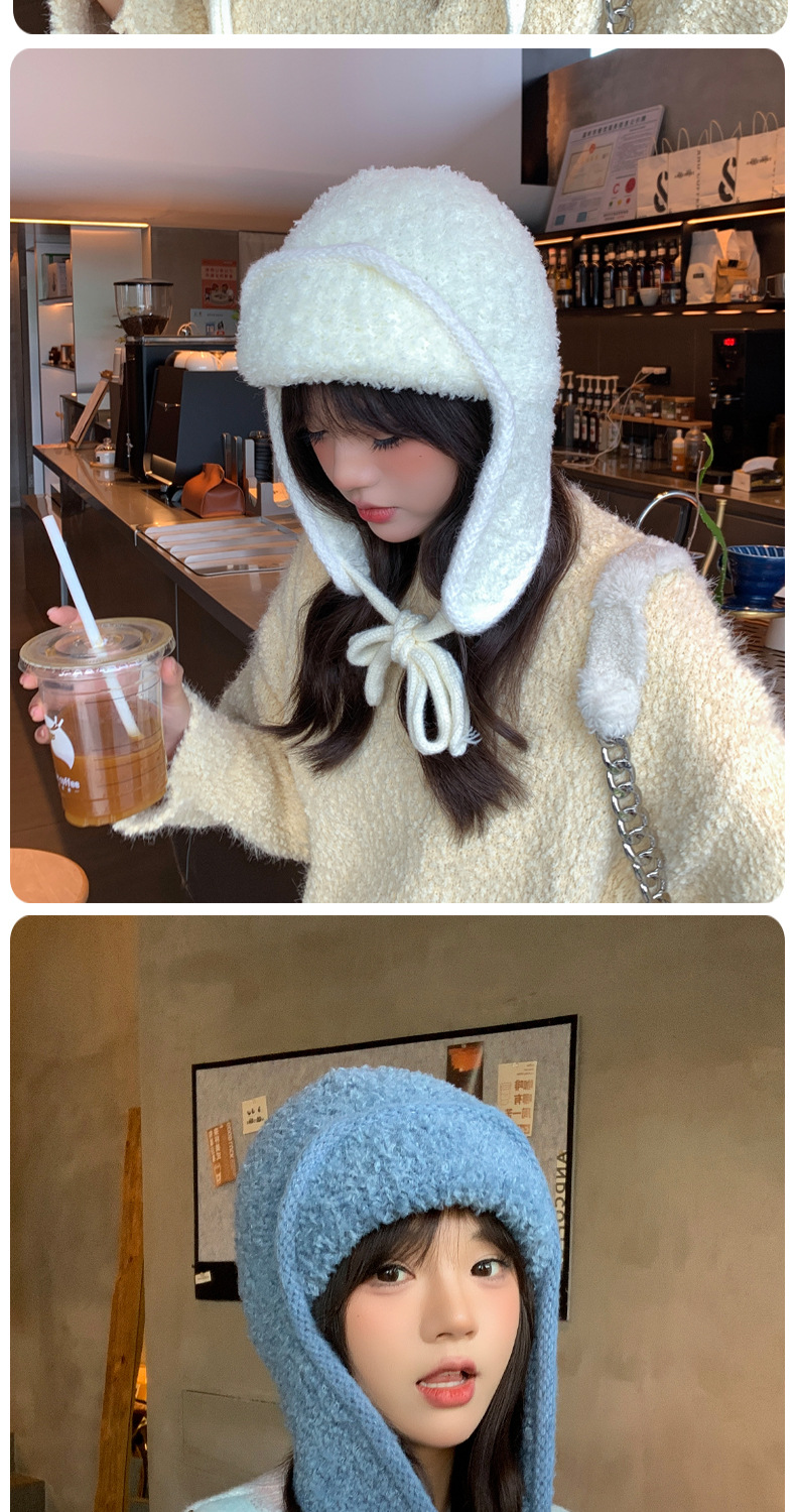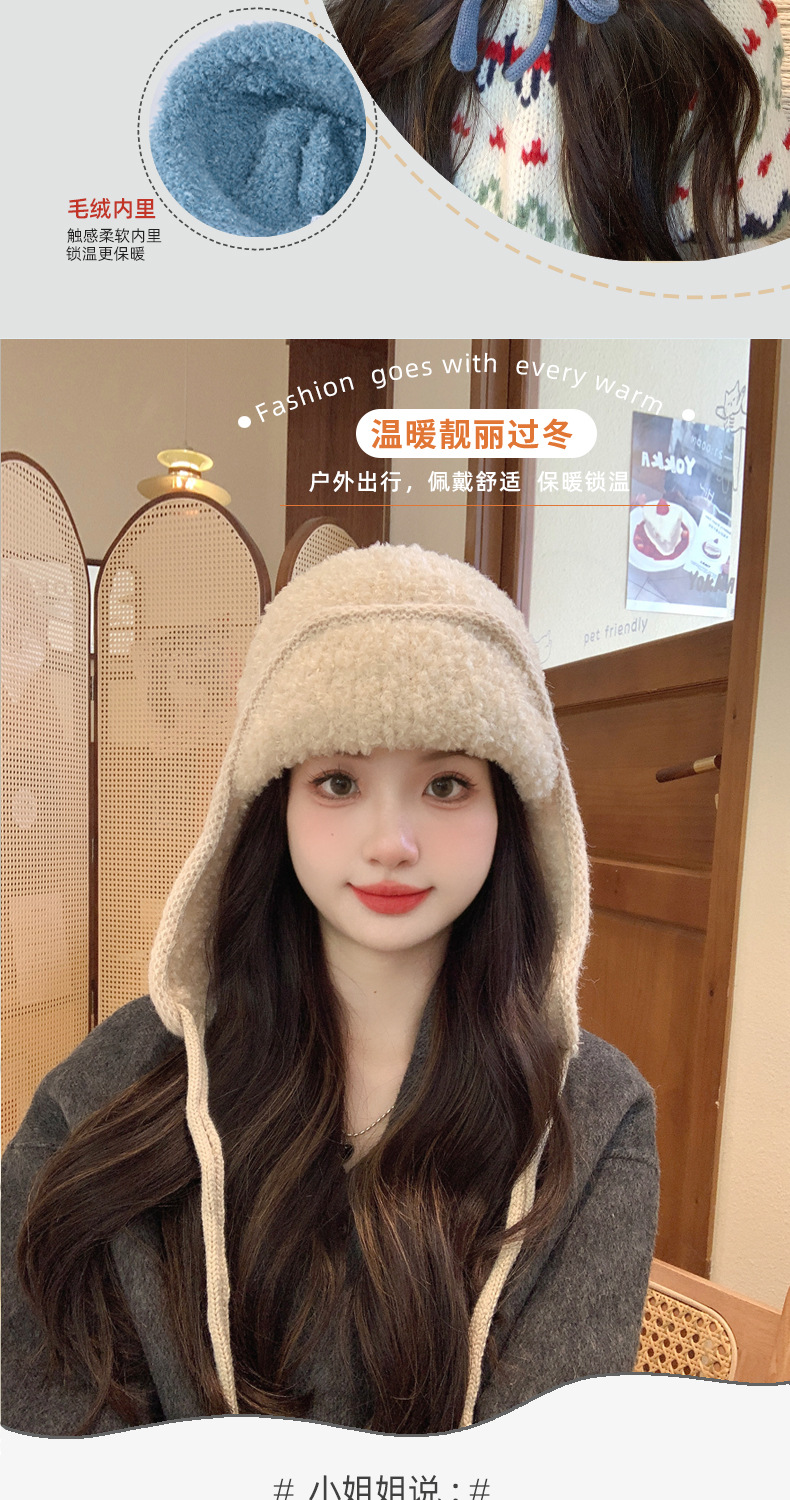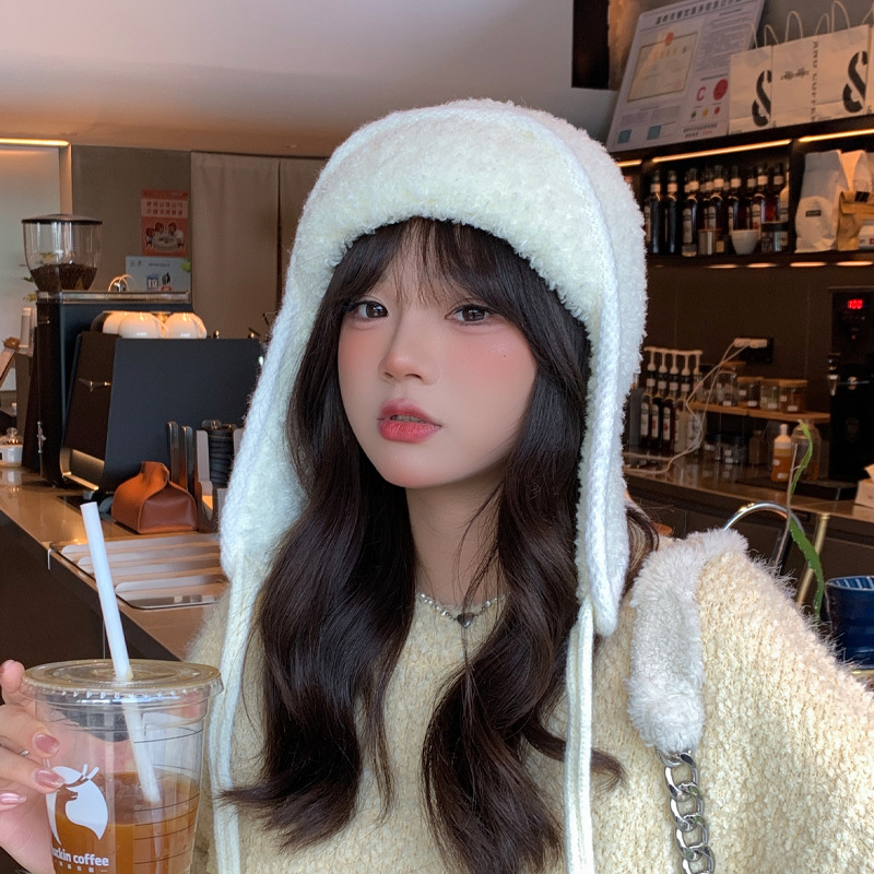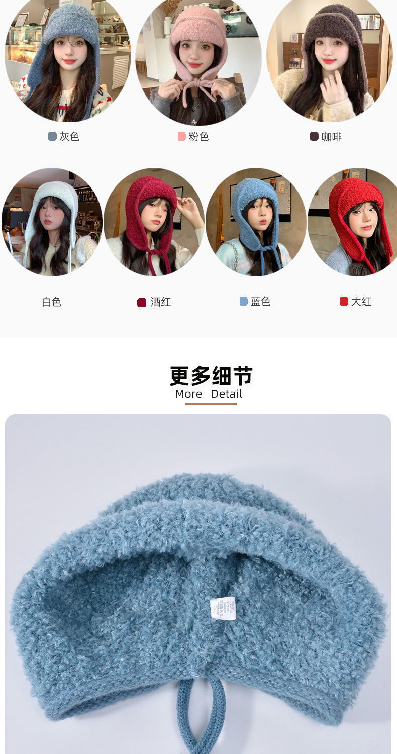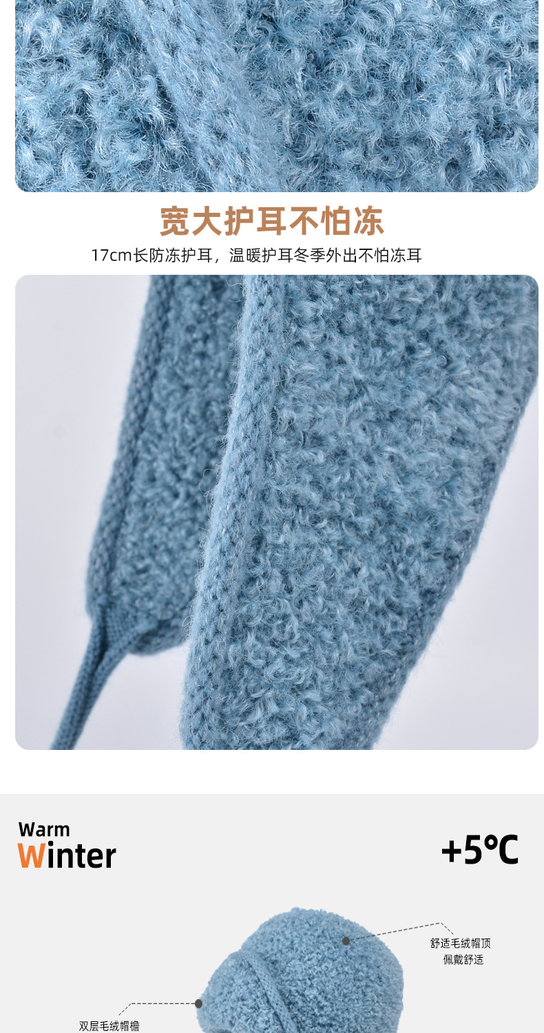 秋冬新款针织帽户外防寒保暖毛线帽韩版毛绒百搭显脸小护耳帽子女