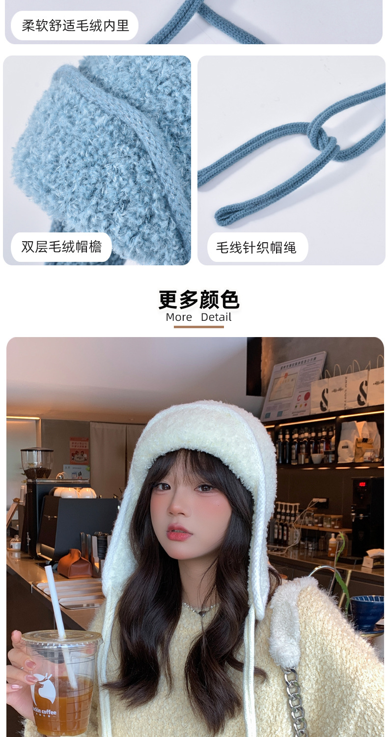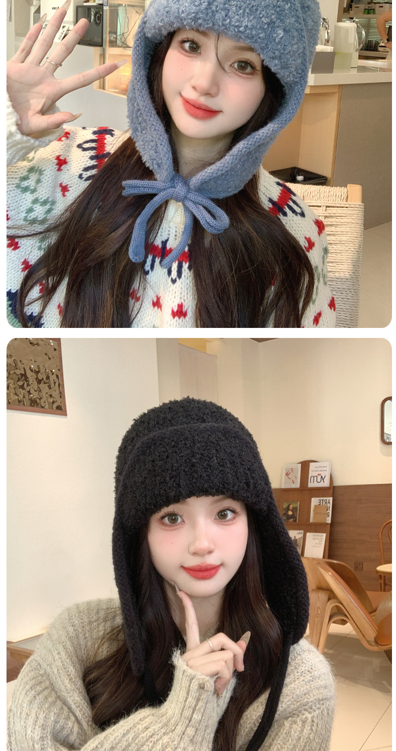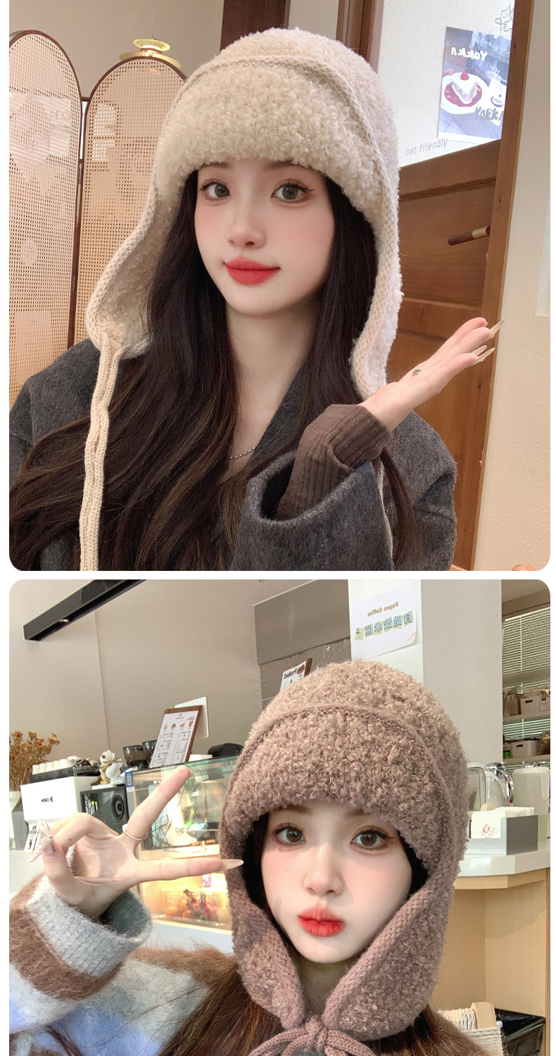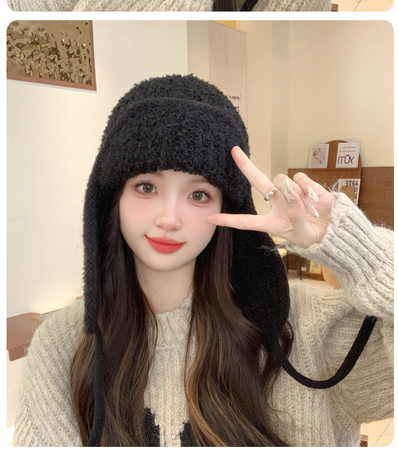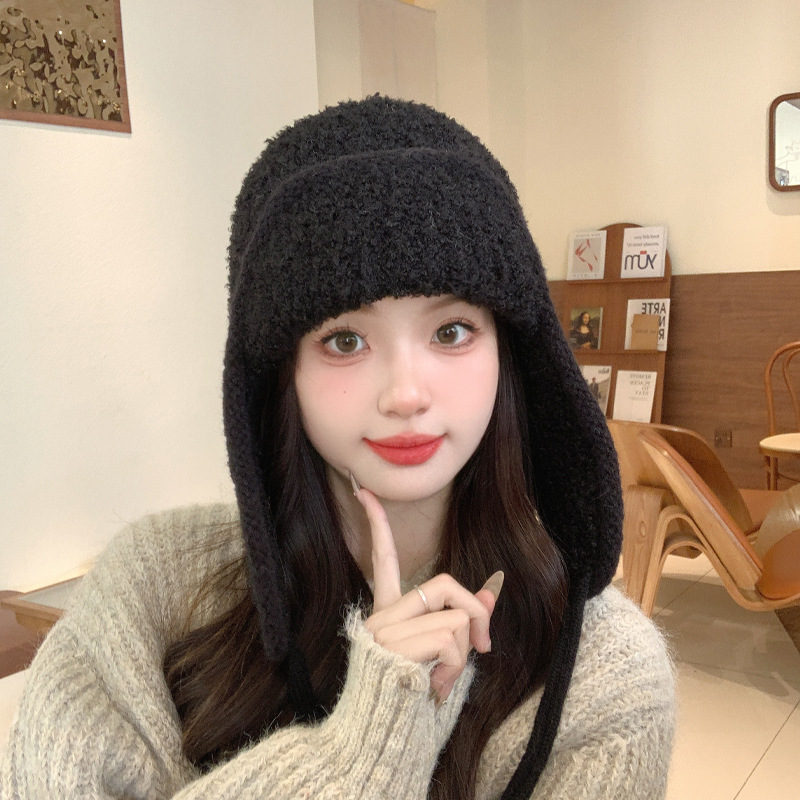 秋冬新款针织帽户外防寒保暖毛线帽韩版毛绒百搭显脸小护耳帽子女