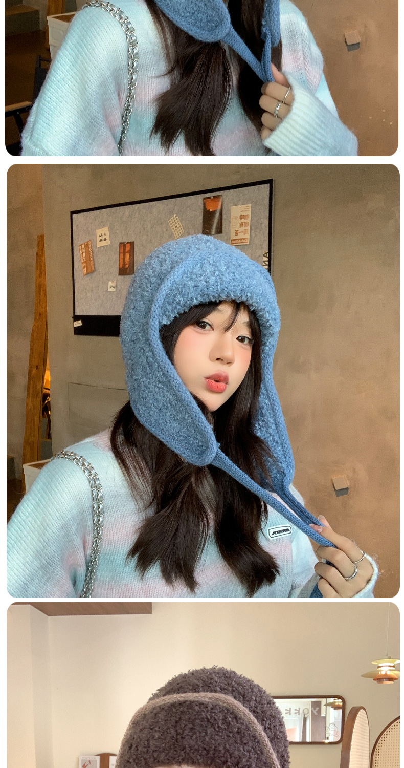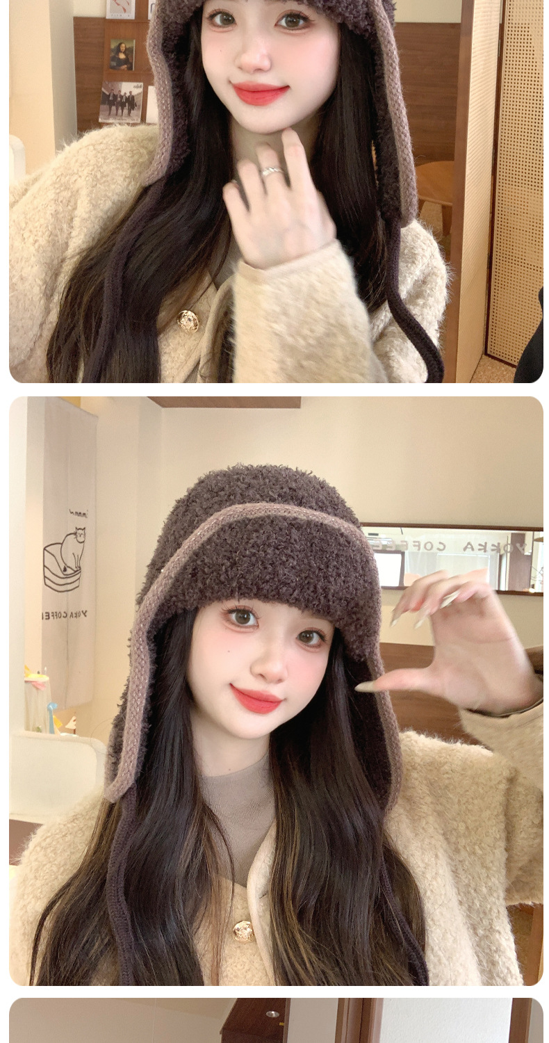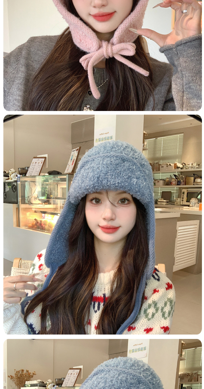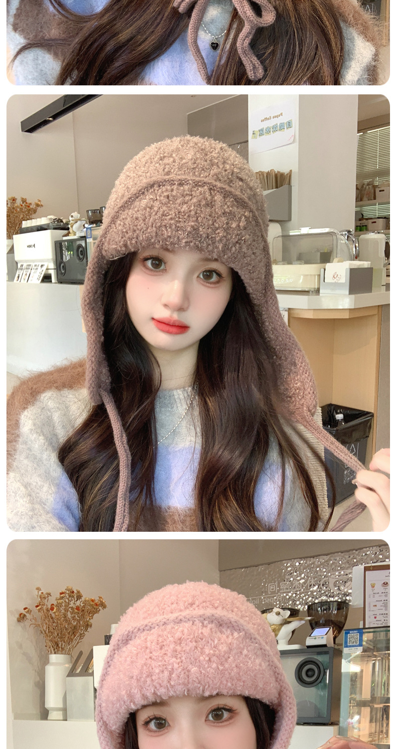 秋冬新款针织帽户外防寒保暖毛线帽韩版毛绒百搭显脸小护耳帽子女
