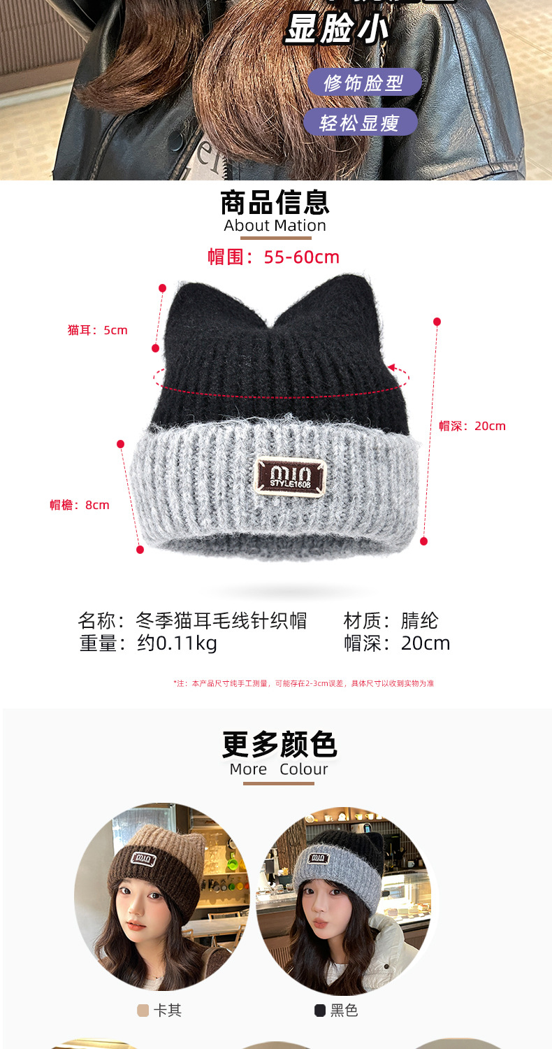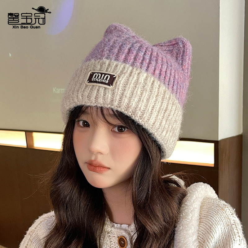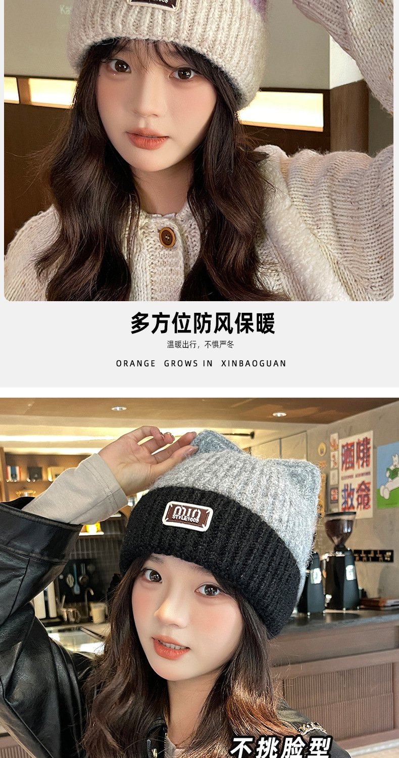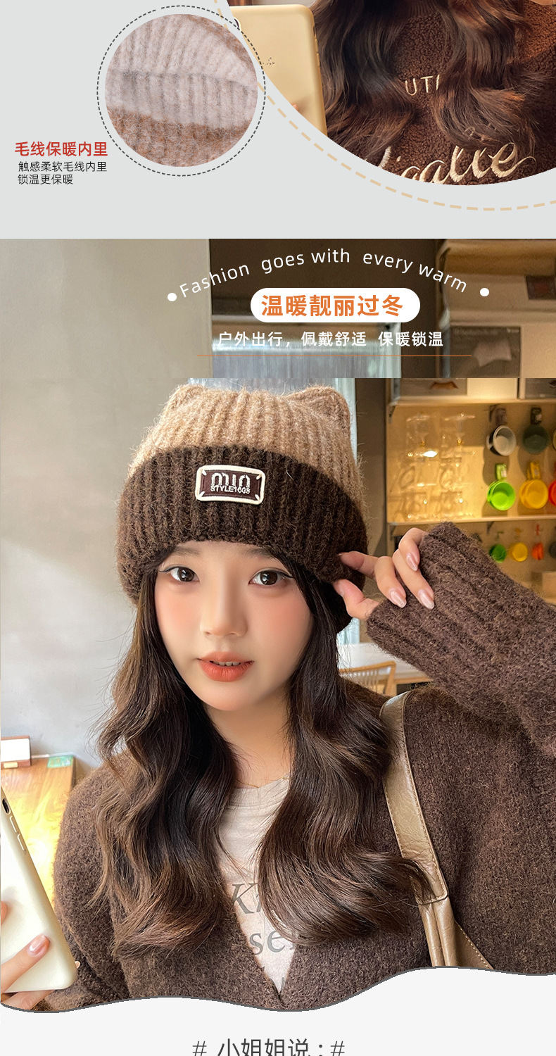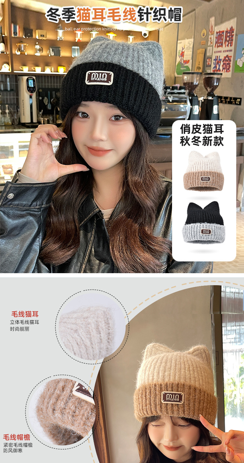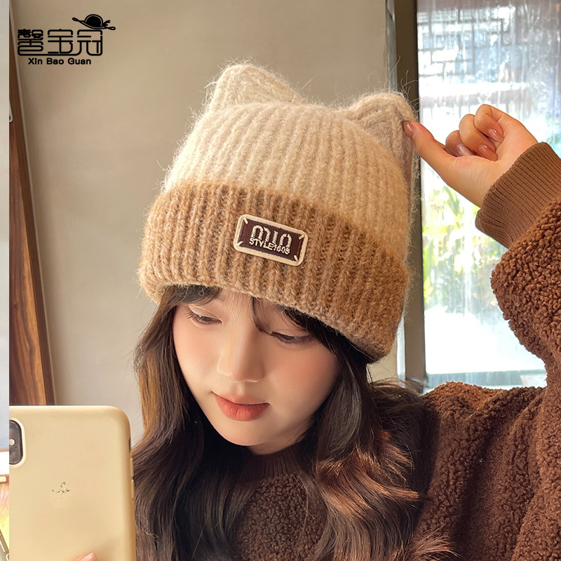 冬季猫耳帽子女防寒保暖护耳毛线帽韩版时尚针织帽可爱百搭套头帽