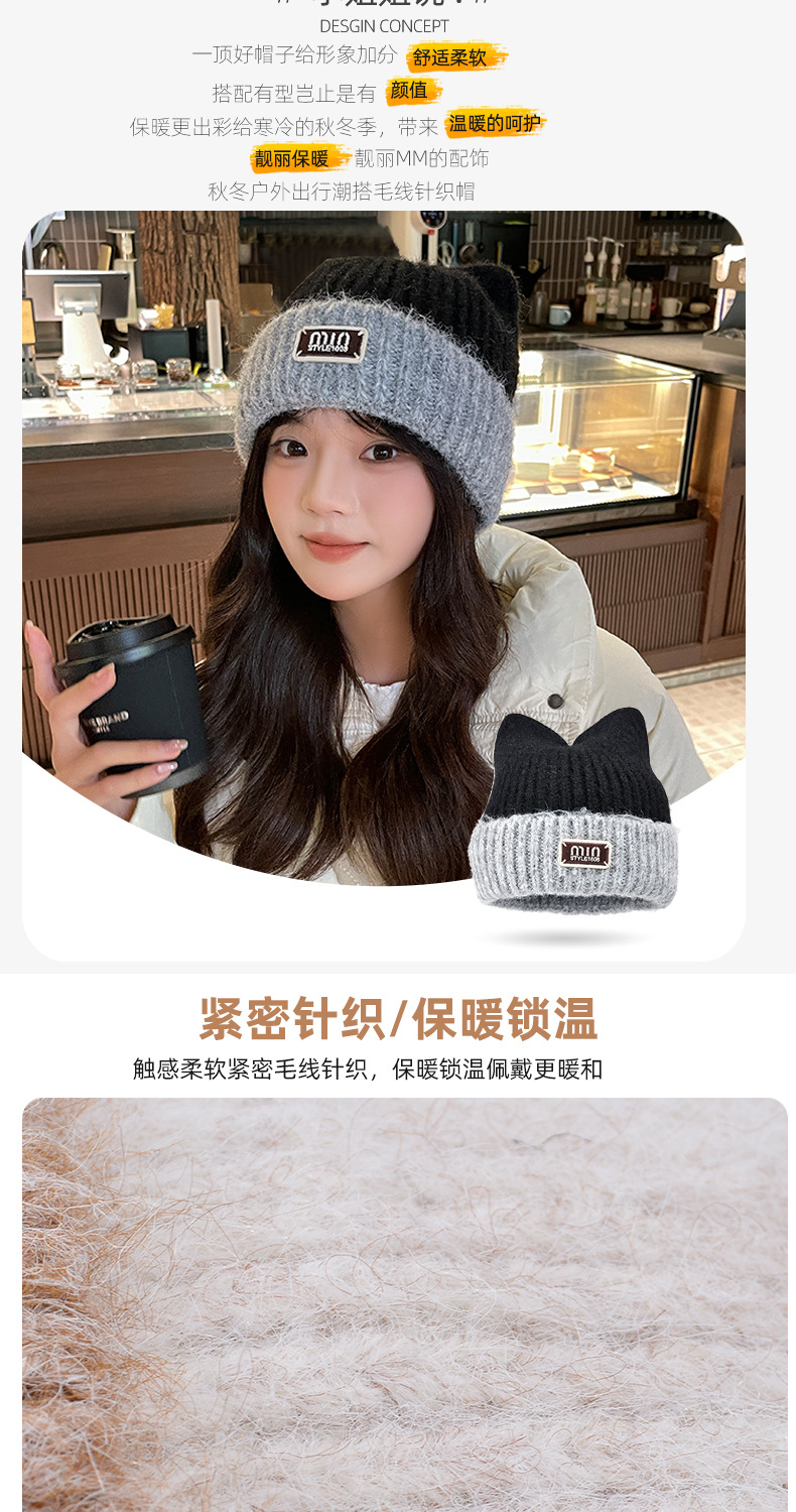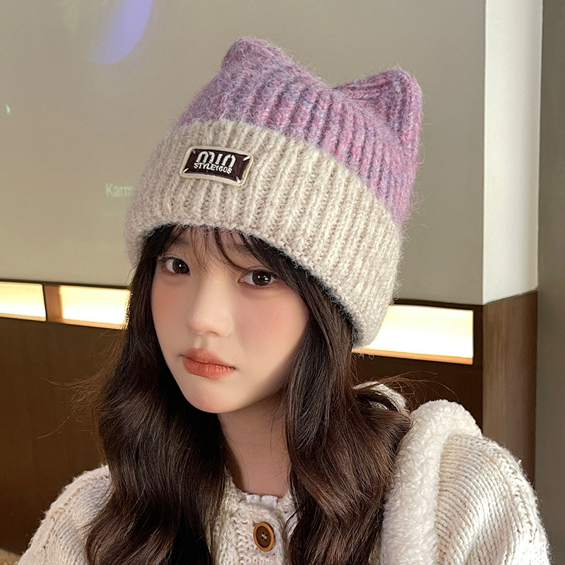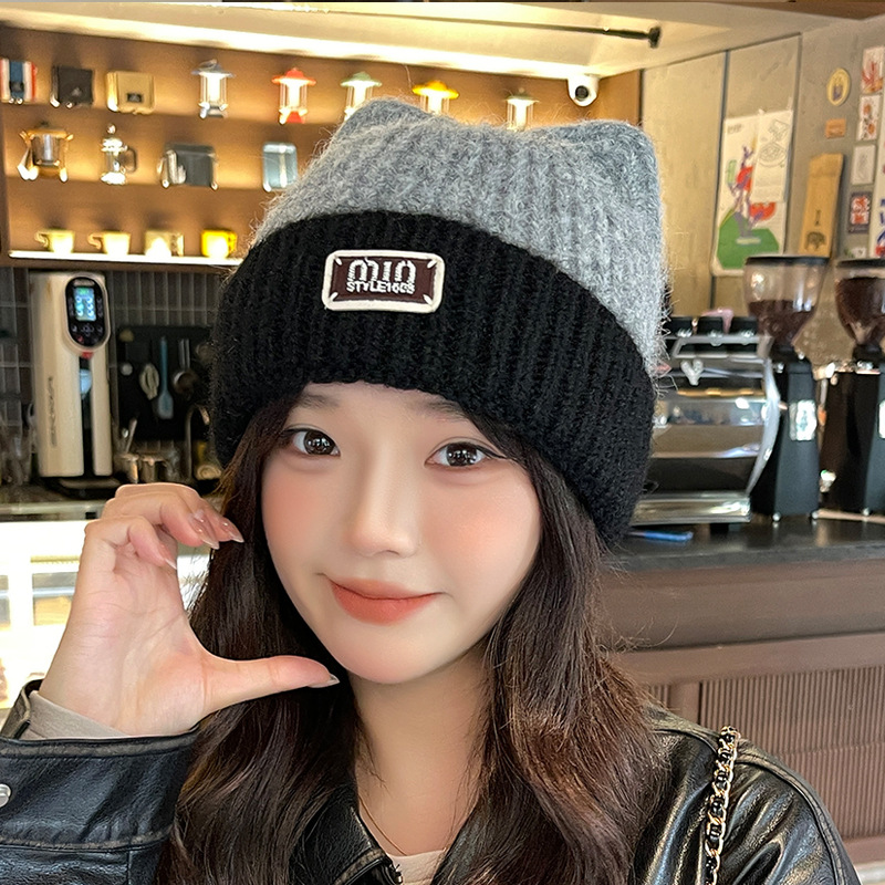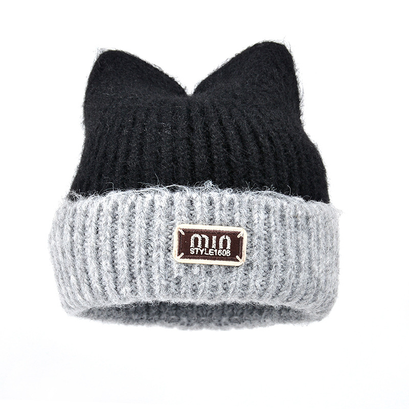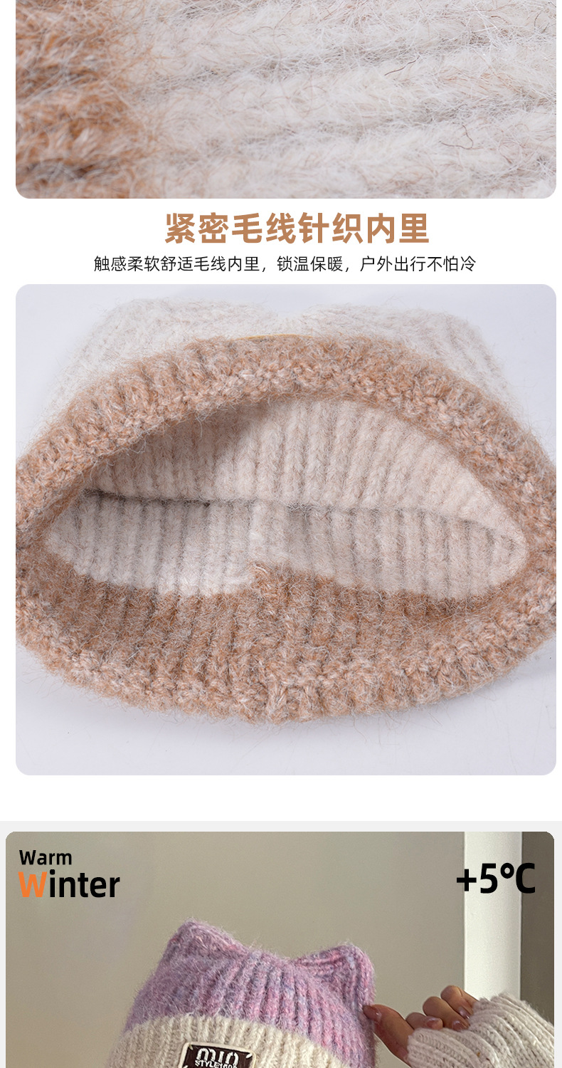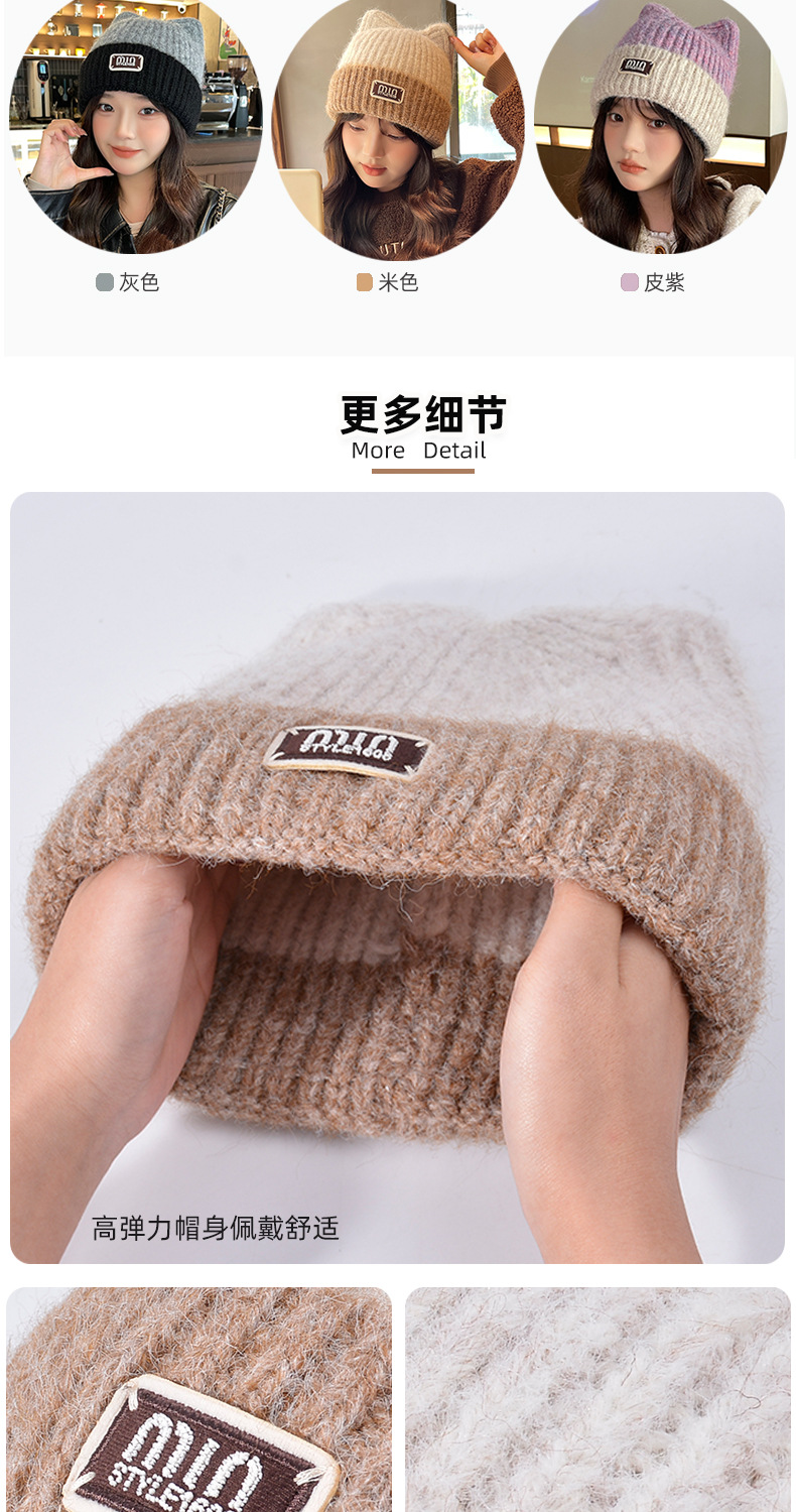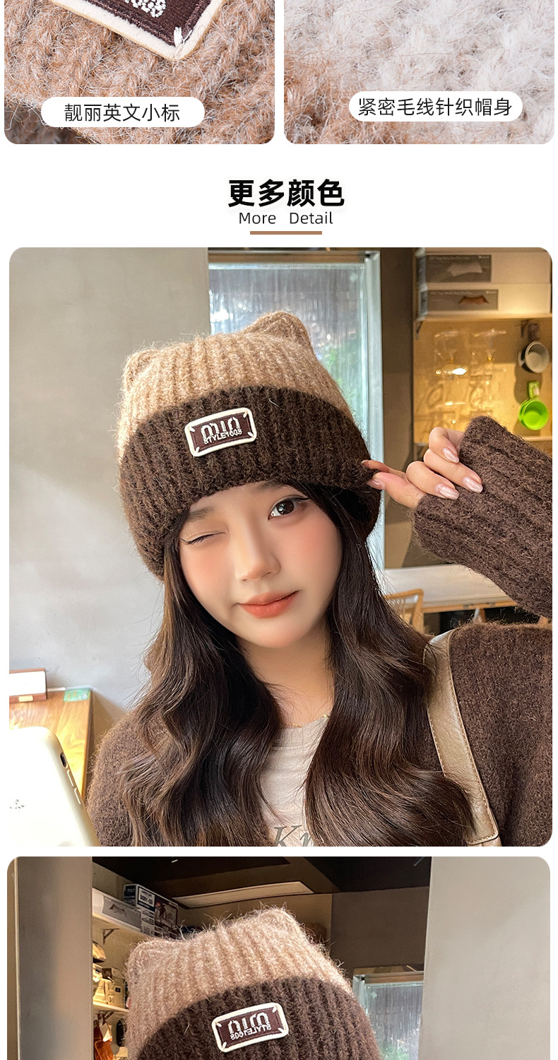 冬季猫耳帽子女防寒保暖护耳毛线帽韩版时尚针织帽可爱百搭套头帽