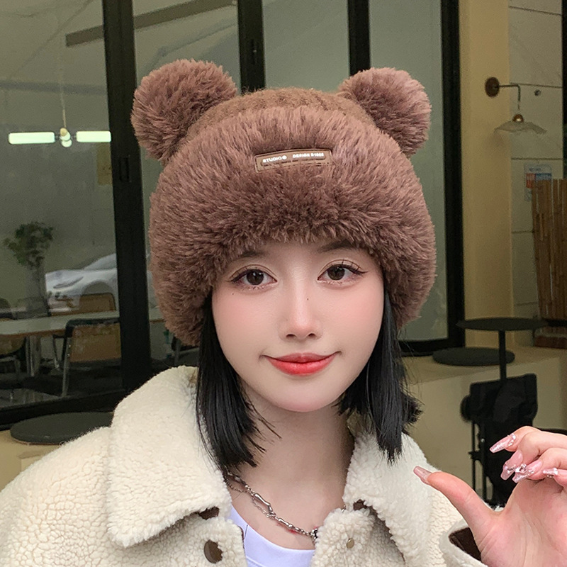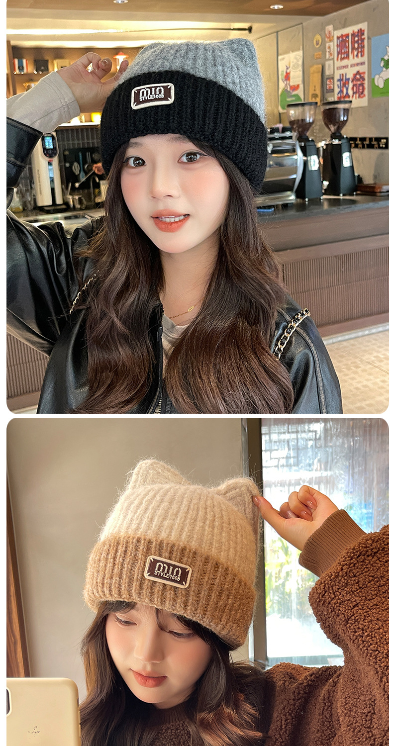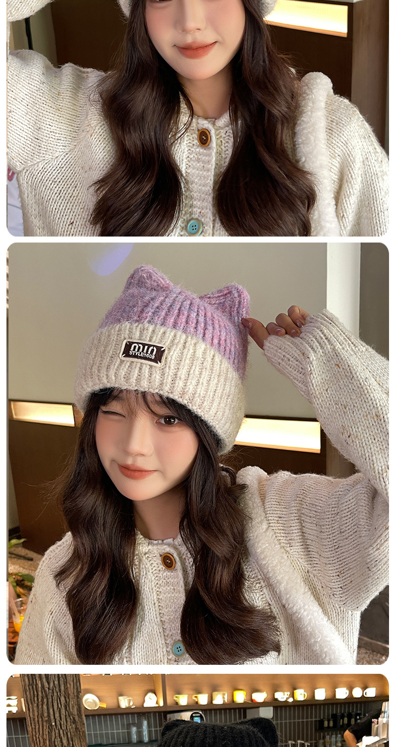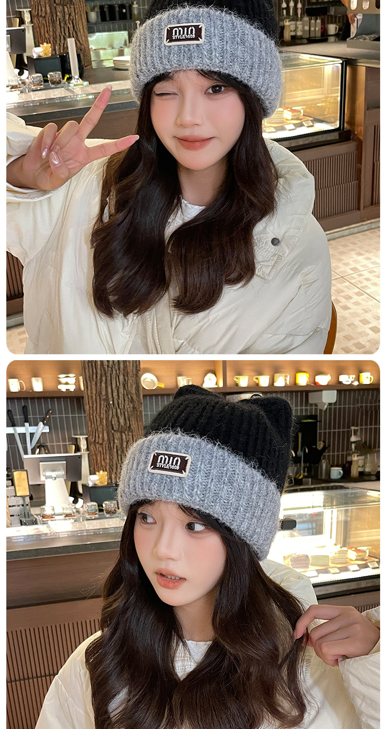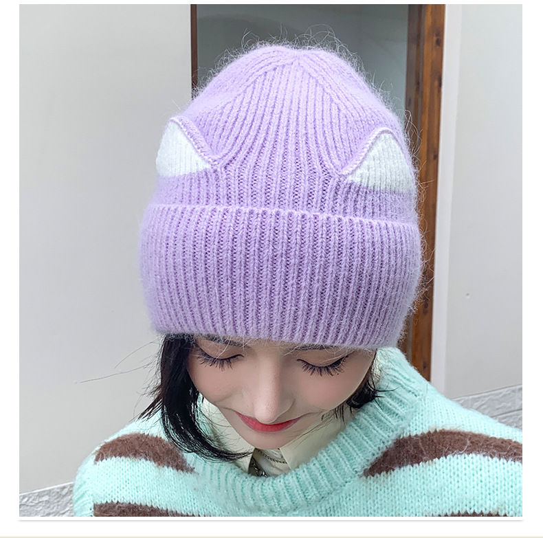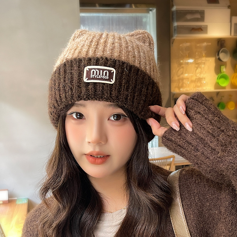 冬季猫耳帽子女防寒保暖护耳毛线帽韩版时尚针织帽可爱百搭套头帽