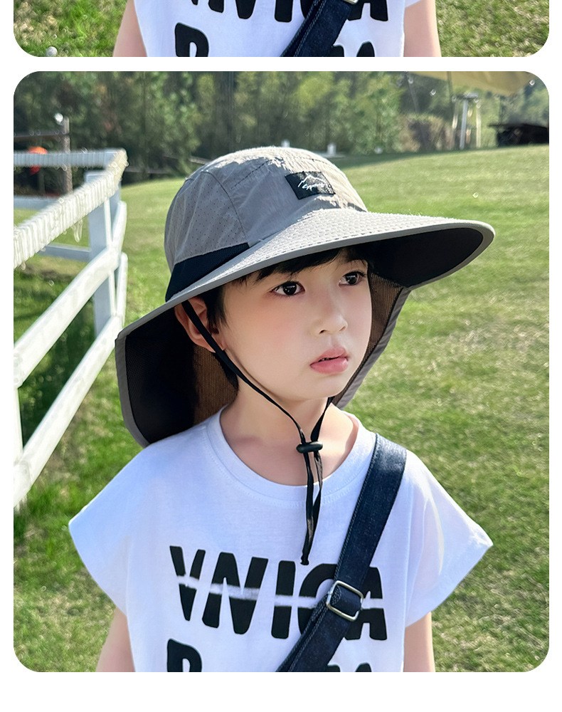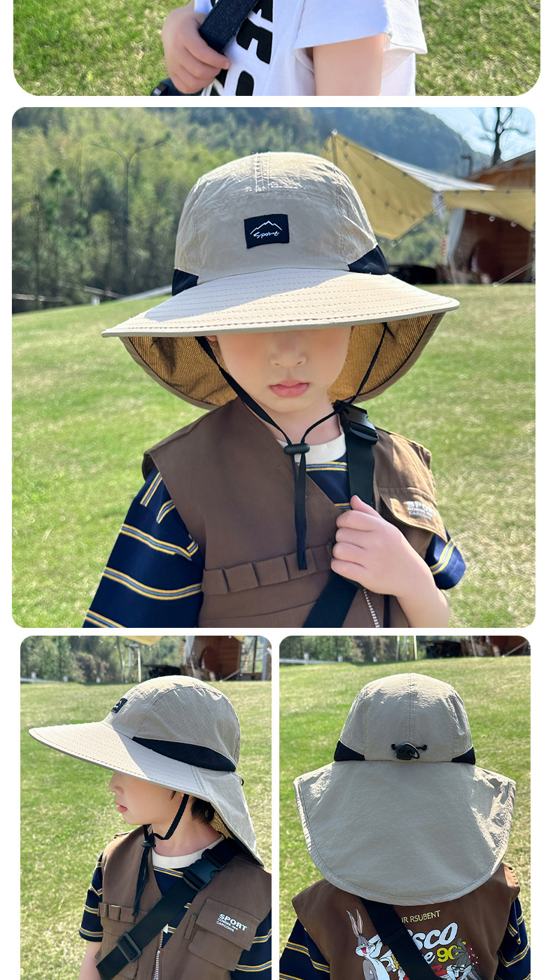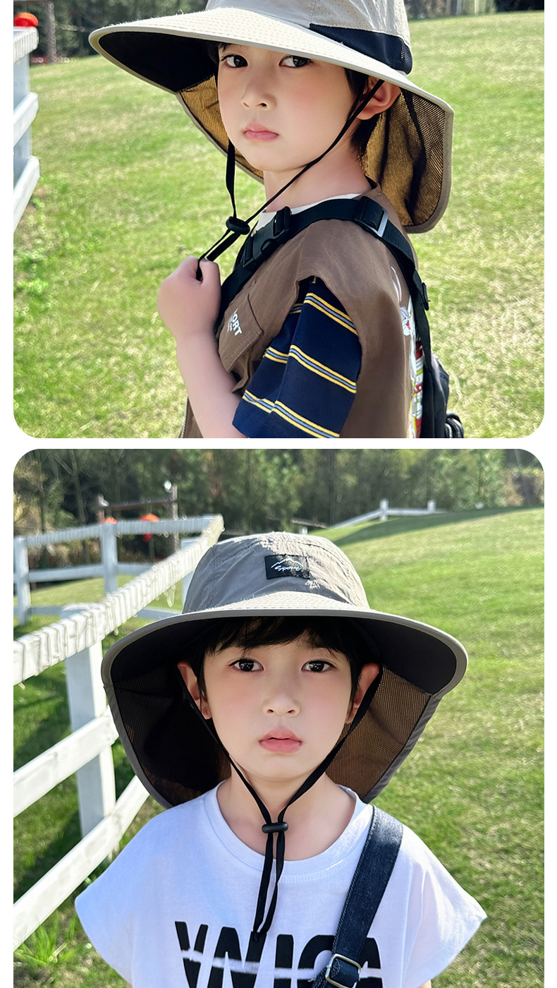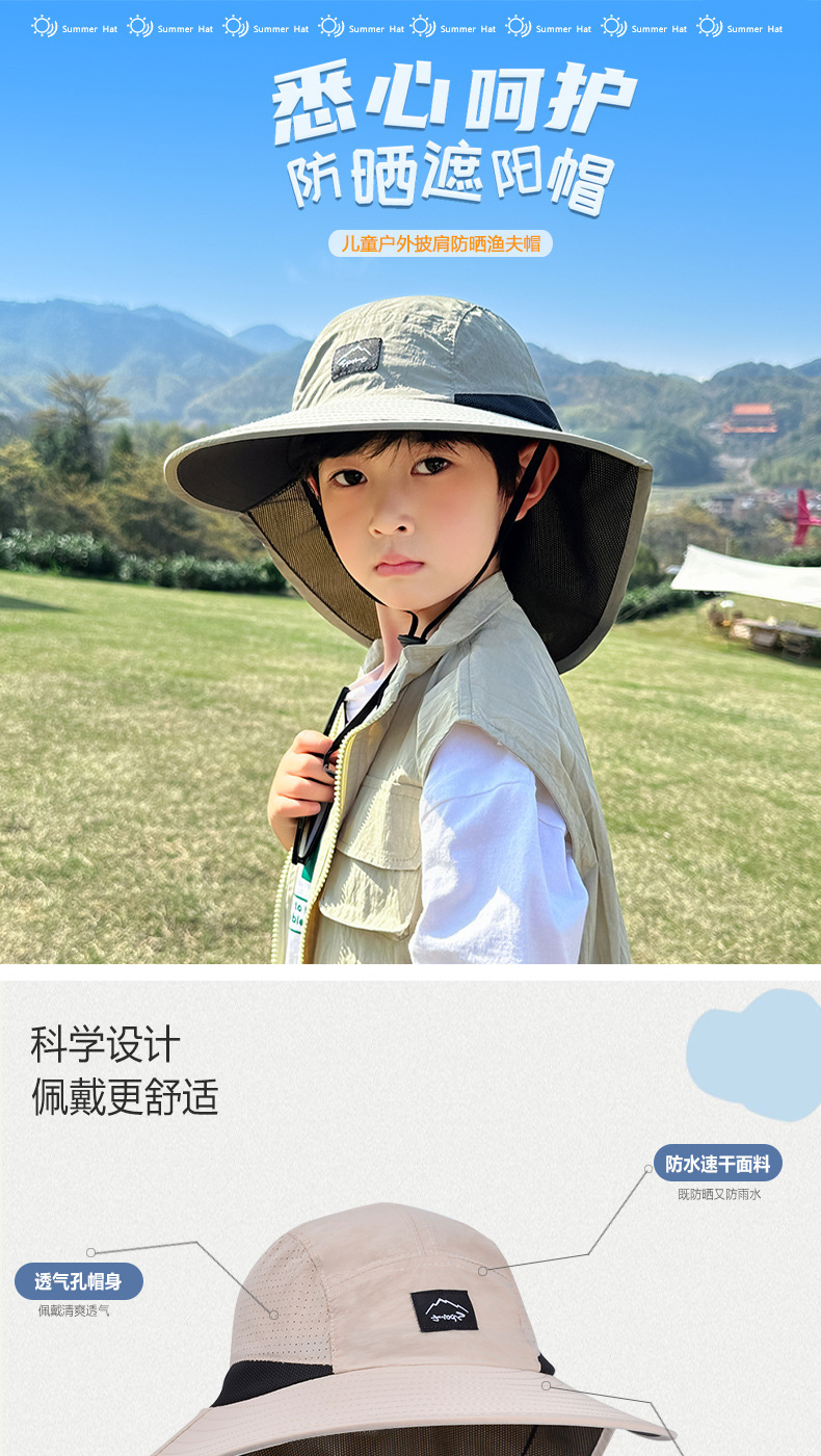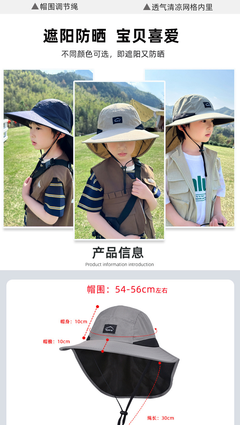 1136儿童帽子夏季大帽檐披肩防晒帽户外出游渔夫帽大童男孩遮阳帽