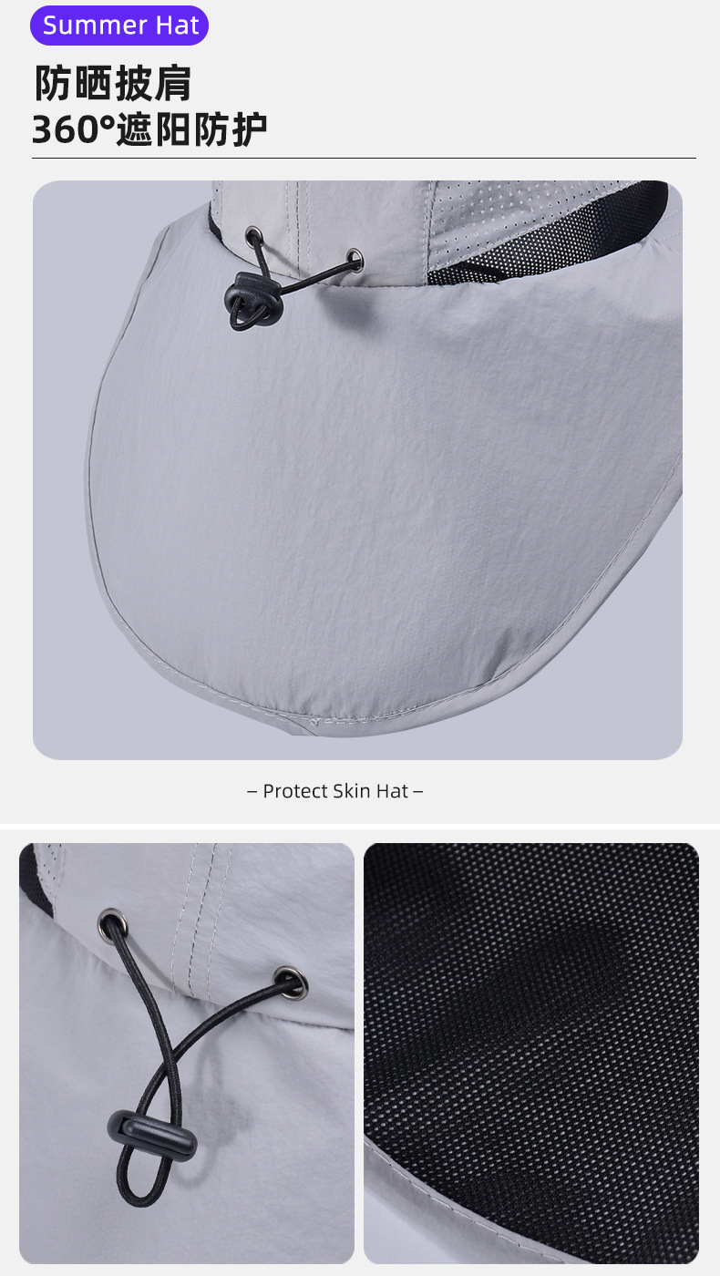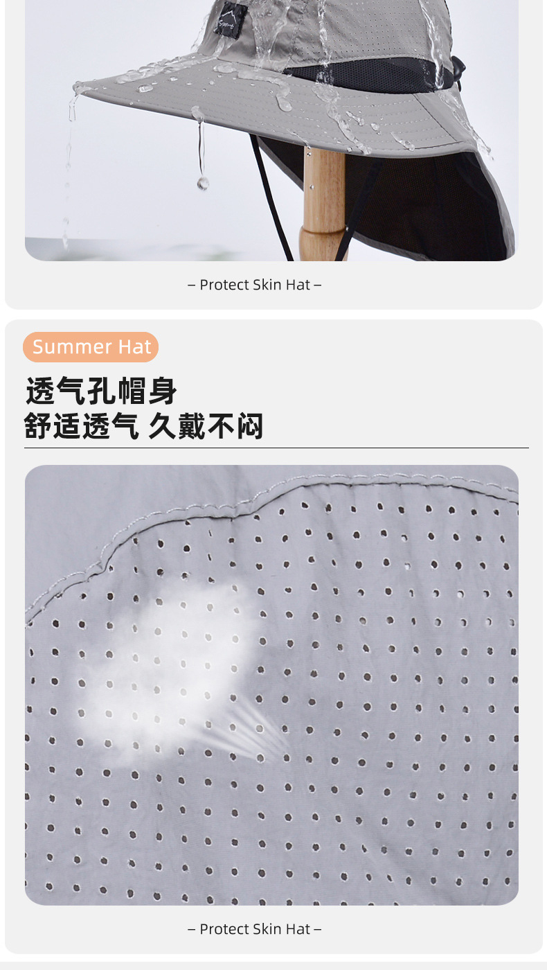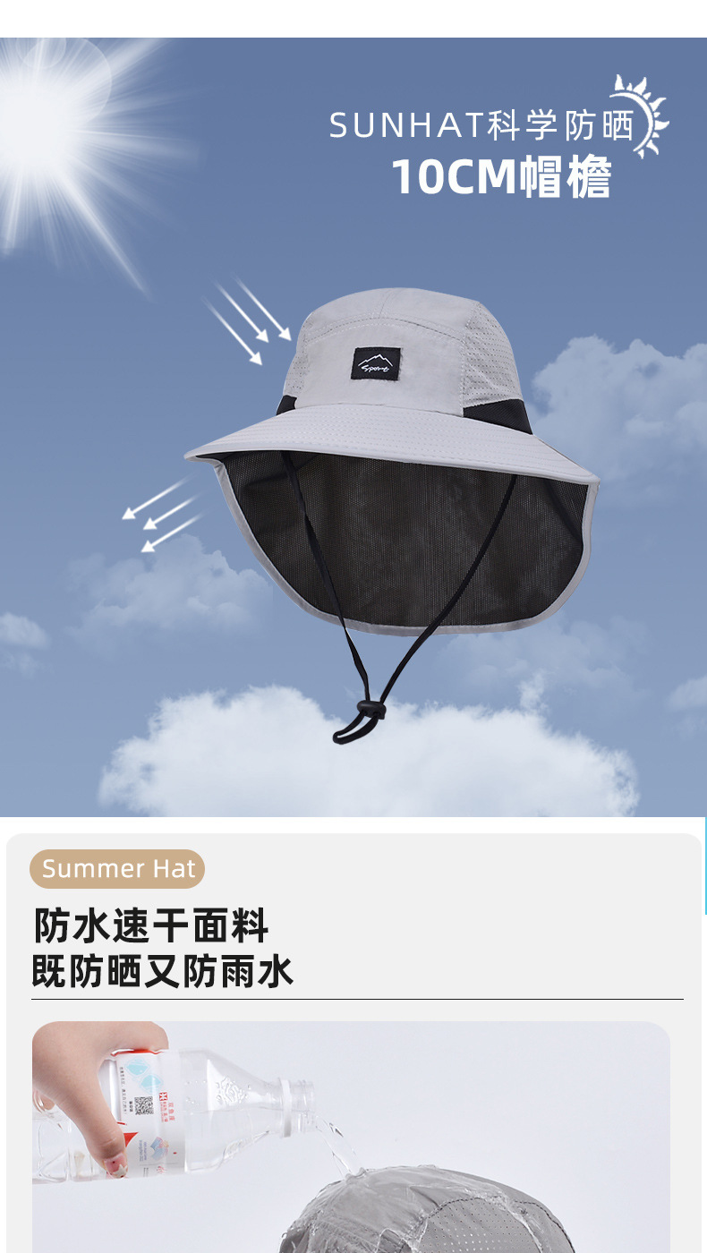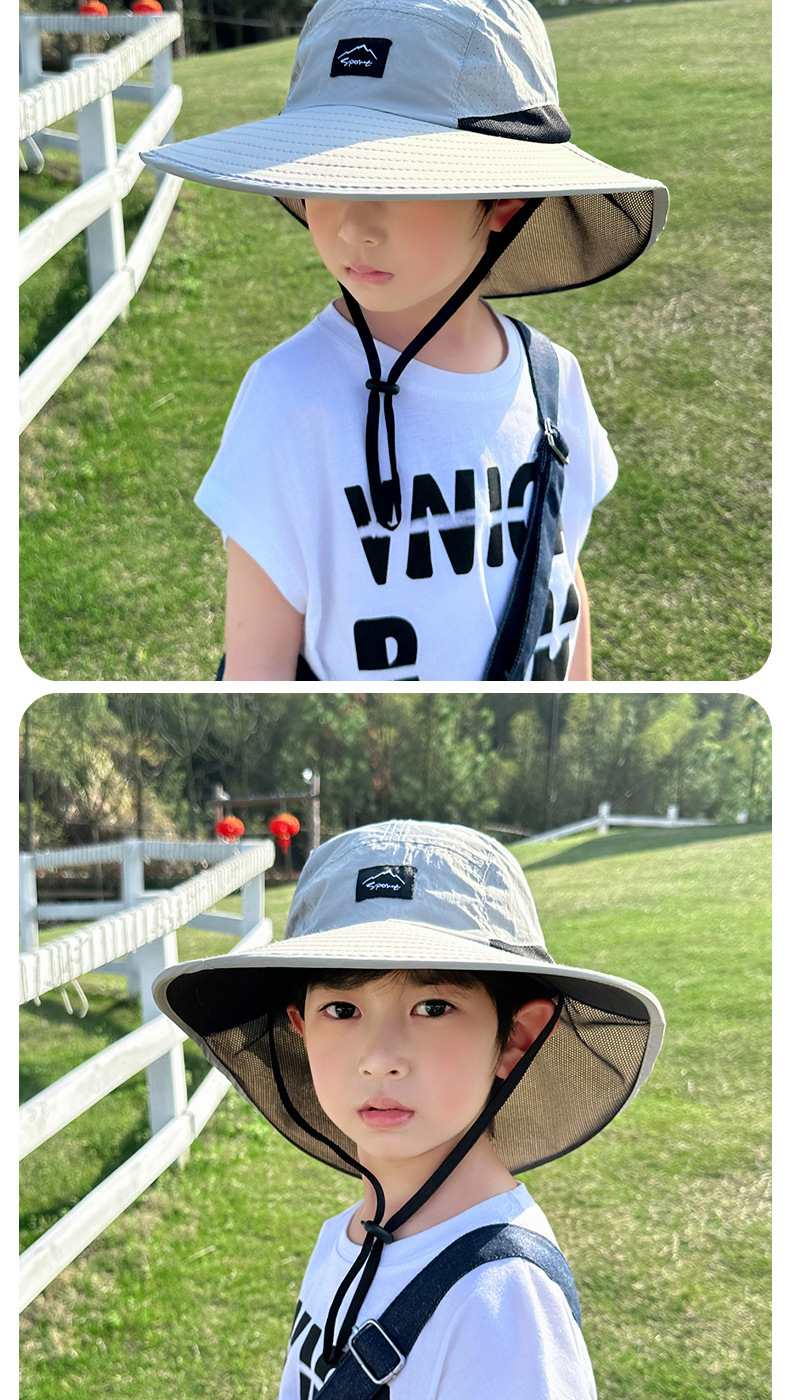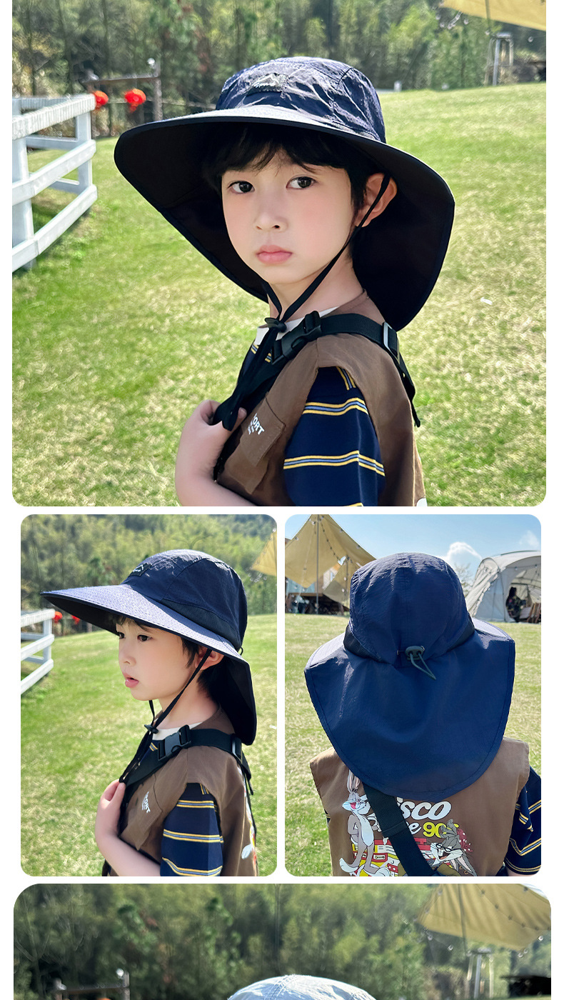 1136儿童帽子夏季大帽檐披肩防晒帽户外出游渔夫帽大童男孩遮阳帽