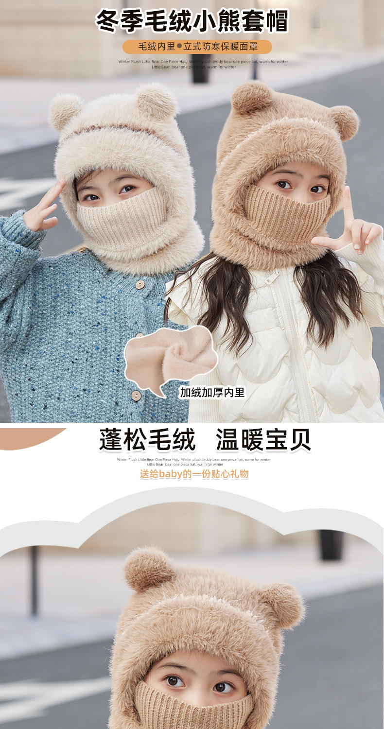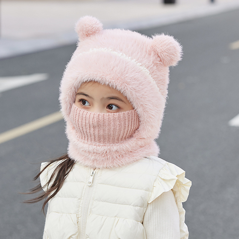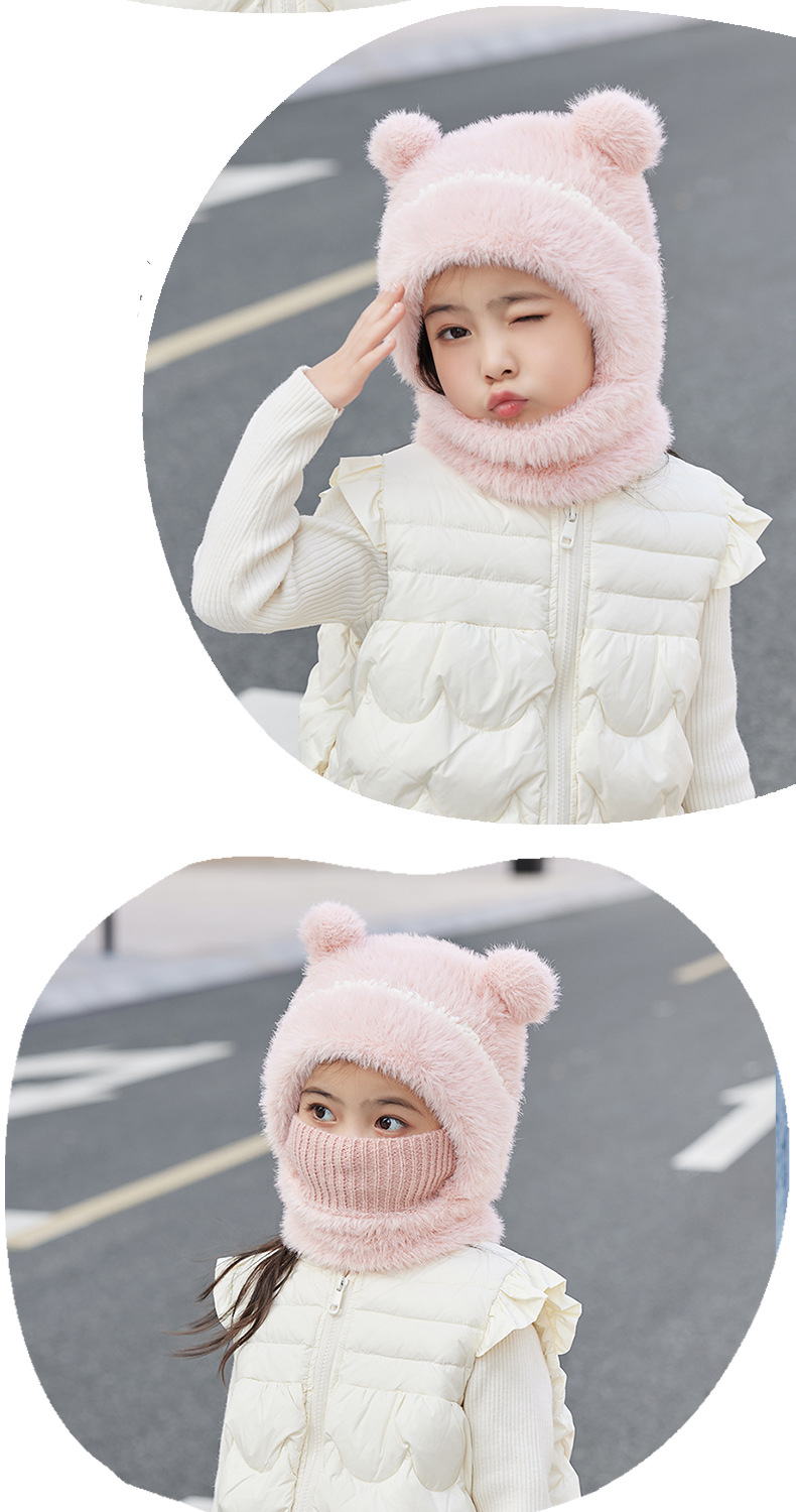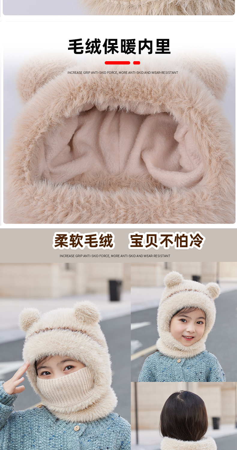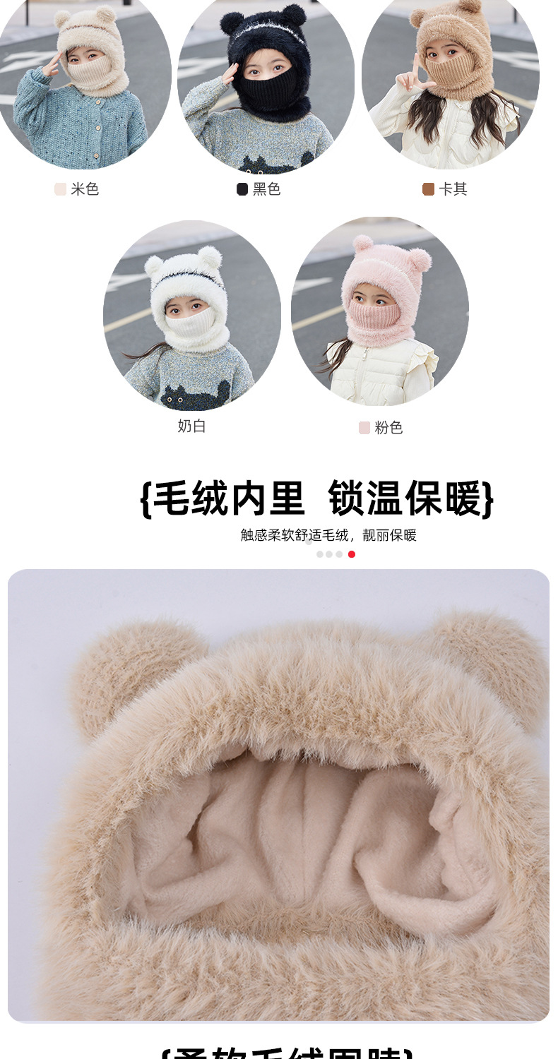 儿童帽子冬季可爱毛绒围脖面罩一体帽保暖防风护耳套头针织毛线帽
