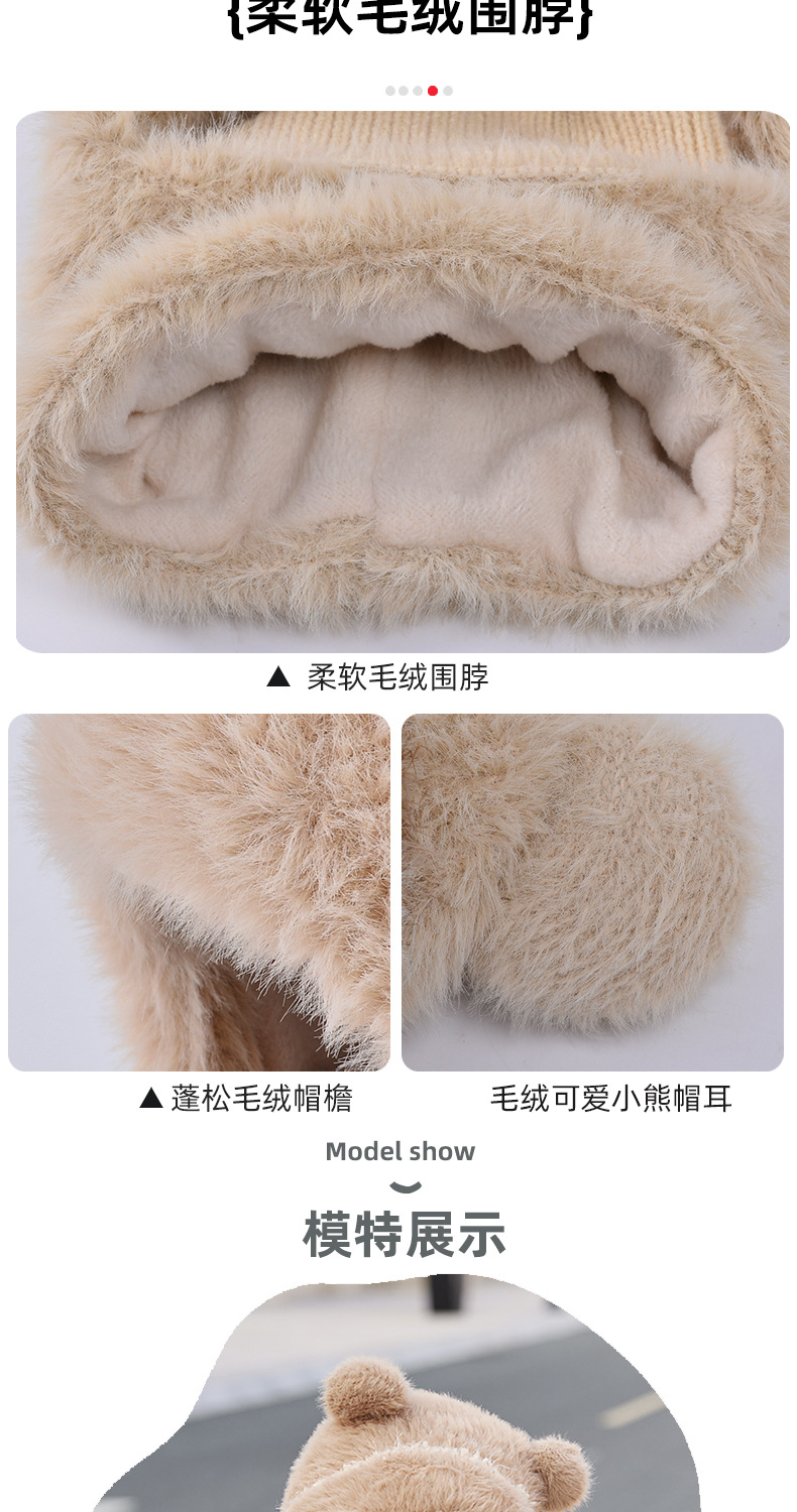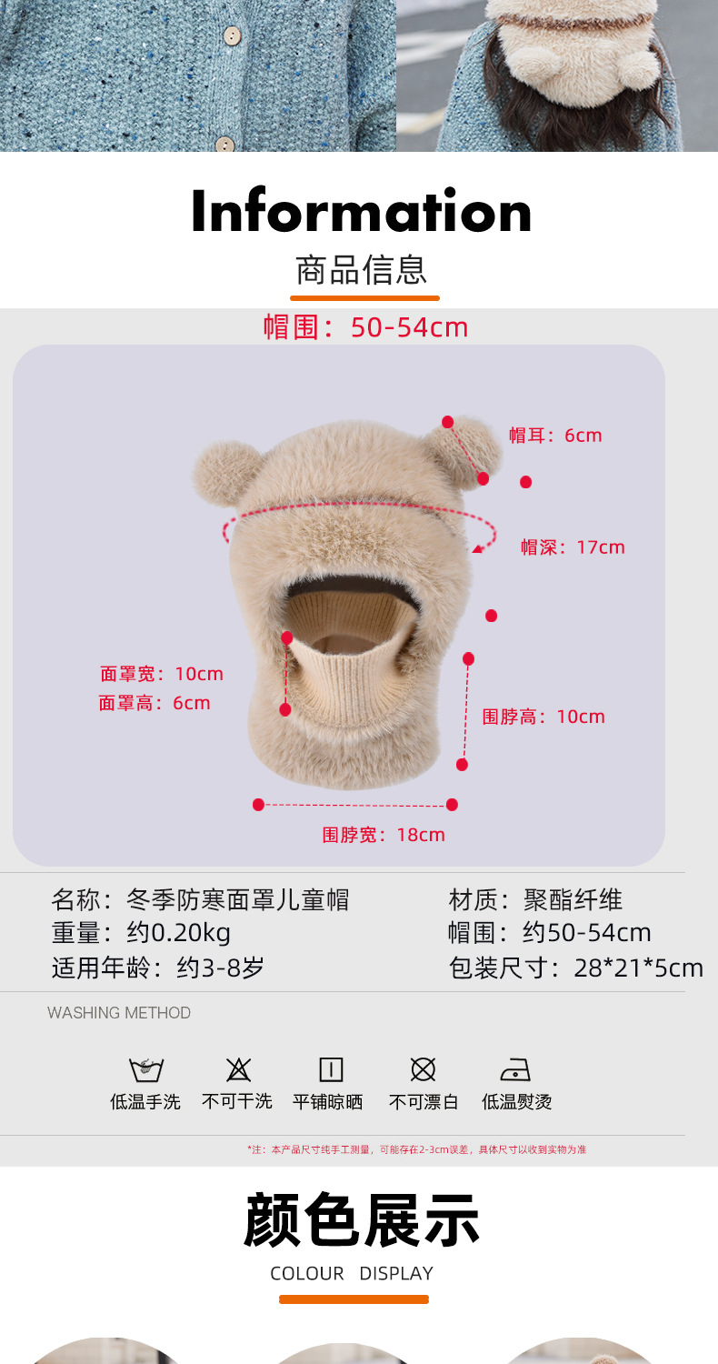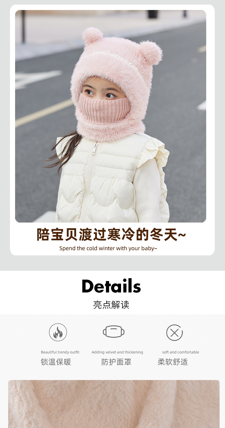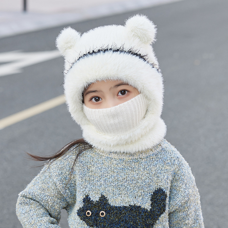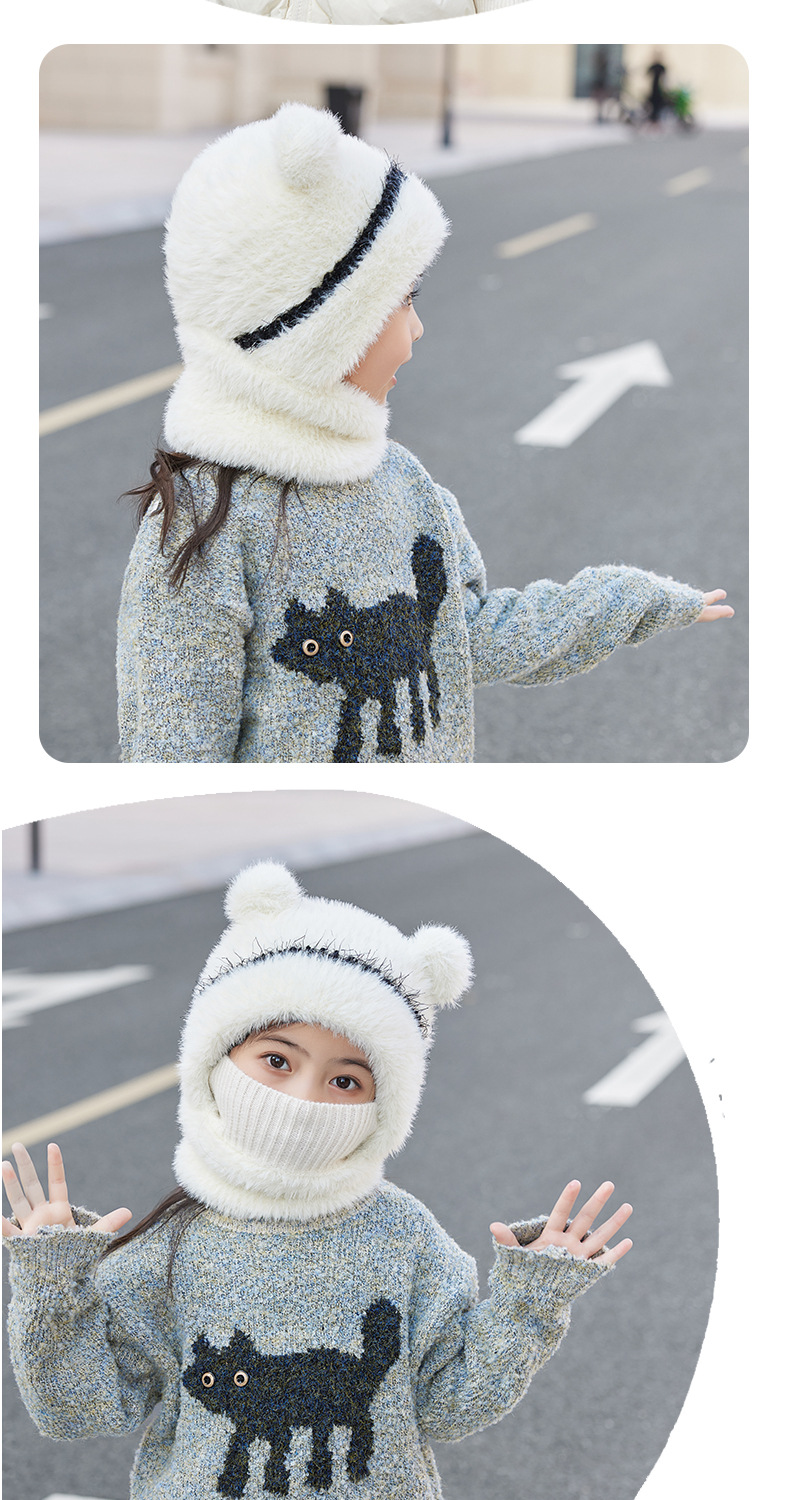儿童帽子冬季可爱毛绒围脖面罩一体帽保暖防风护耳套头针织毛线帽
