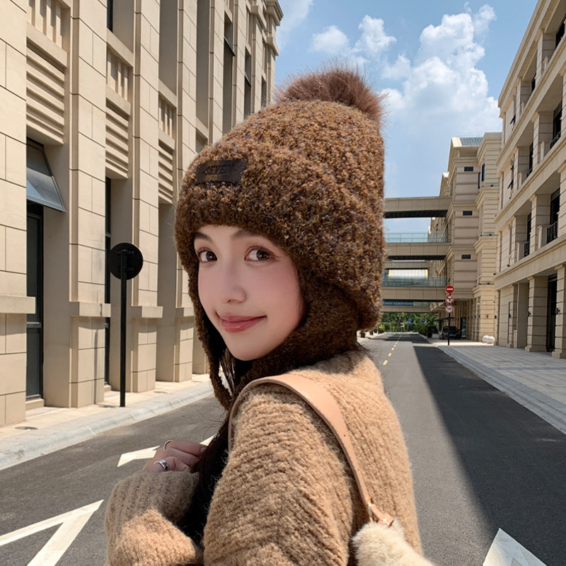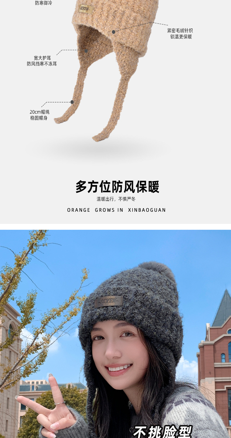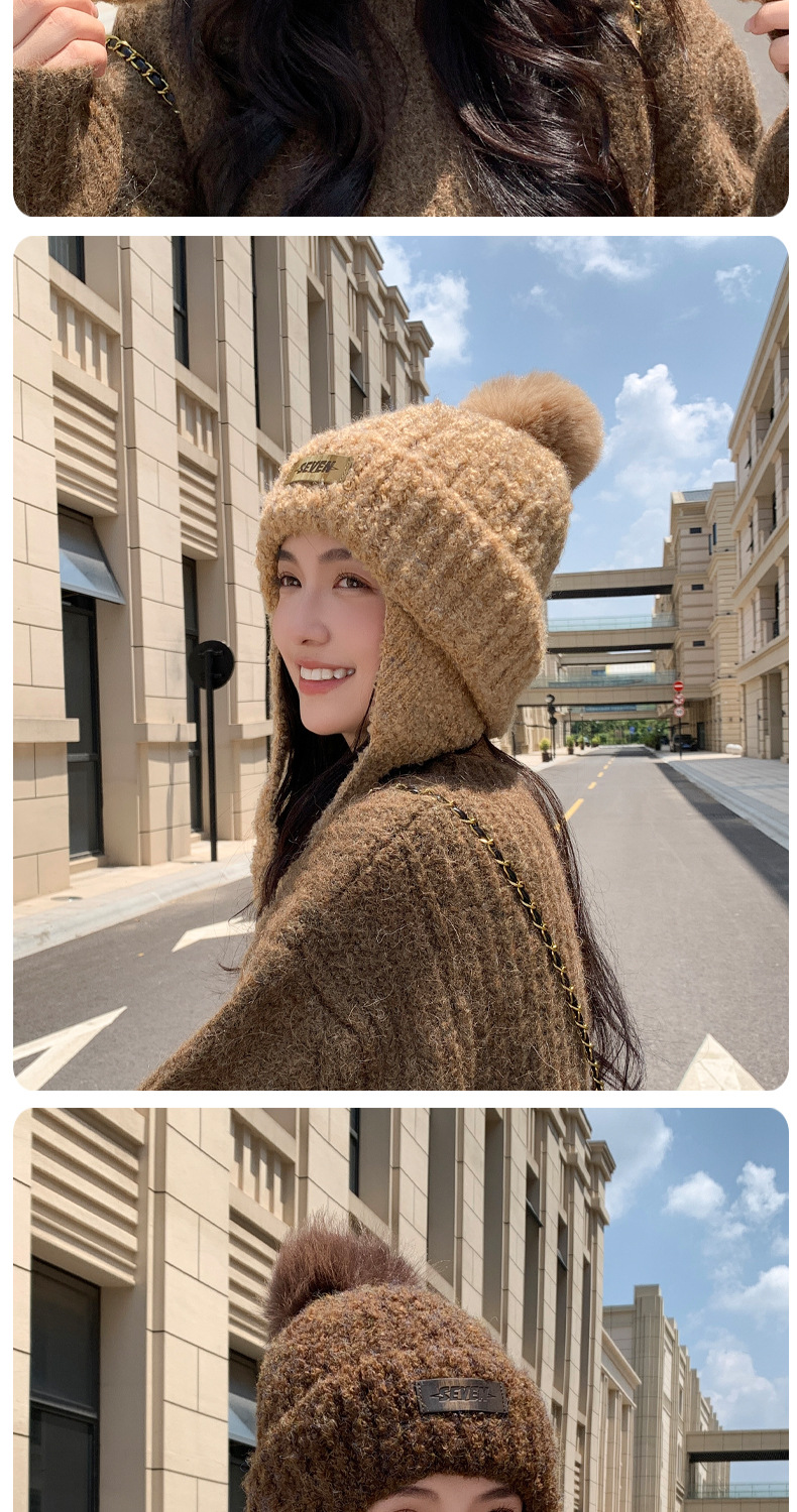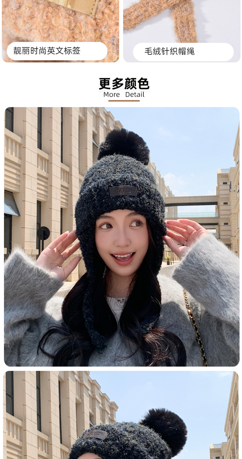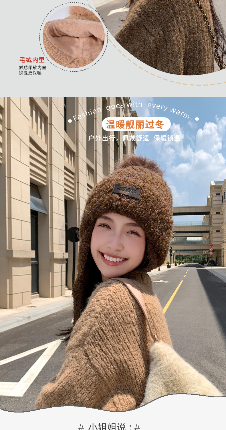 秋冬韩版毛绒帽子女加绒保暖护耳针织毛线帽显脸小百搭套头雷锋帽
