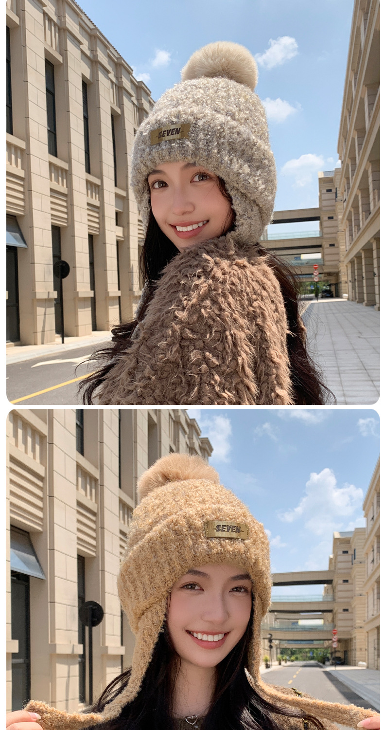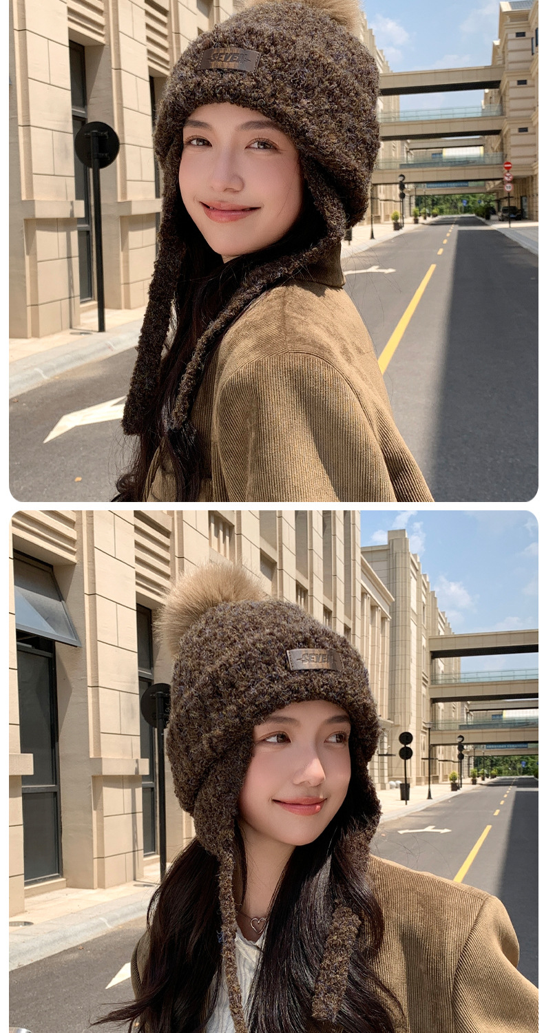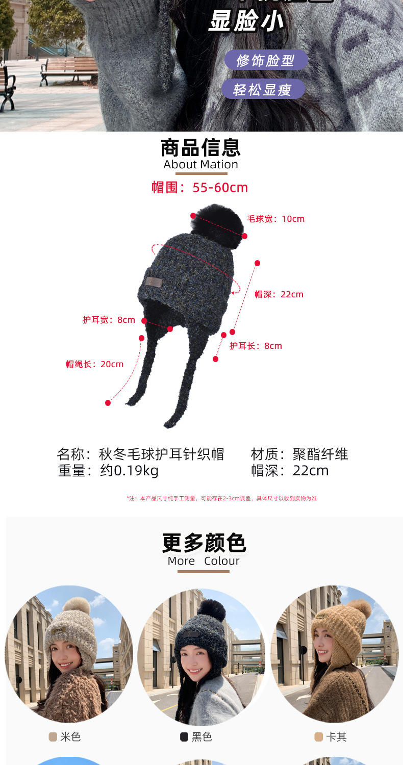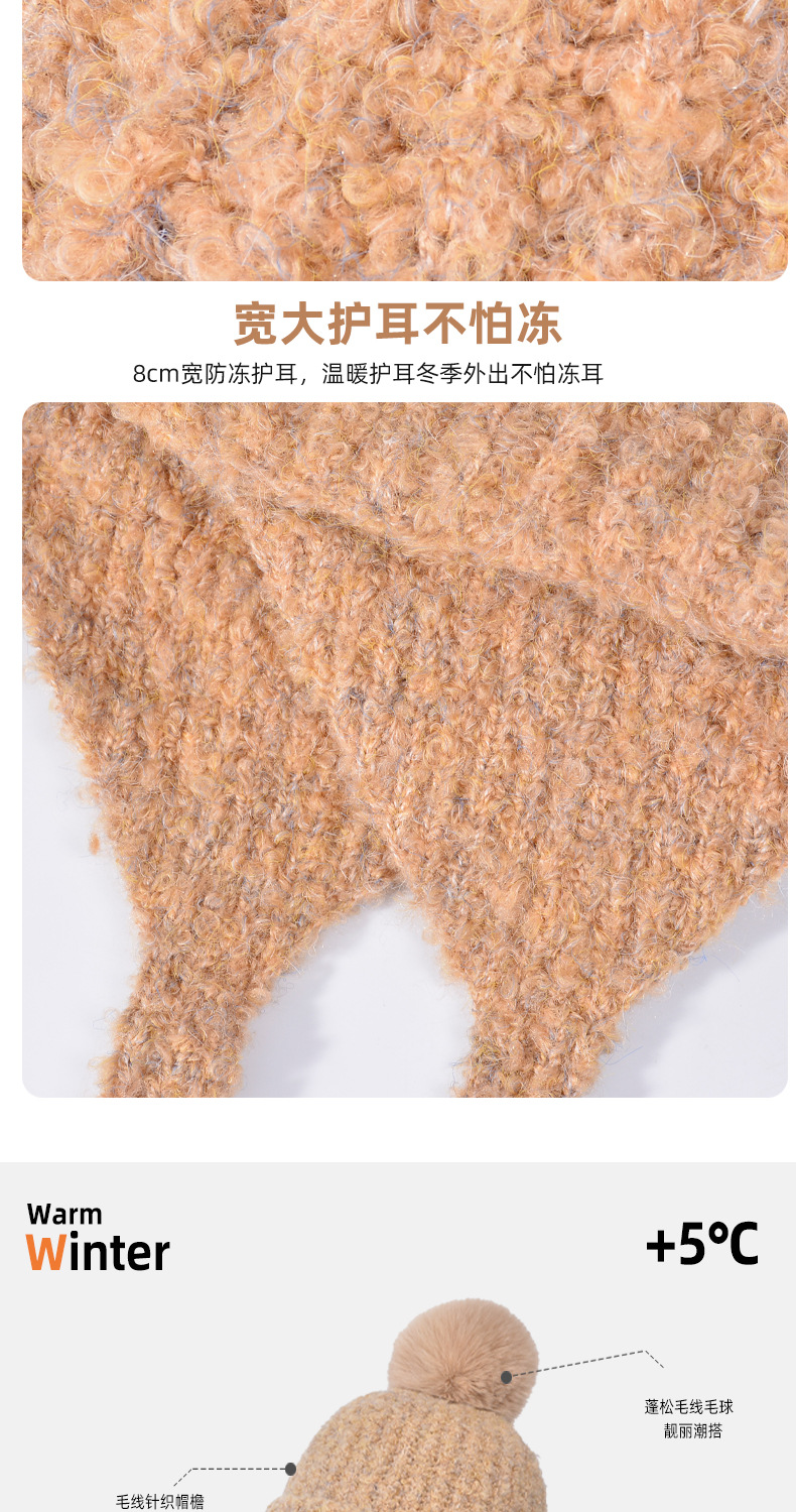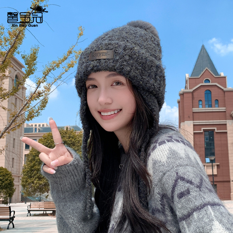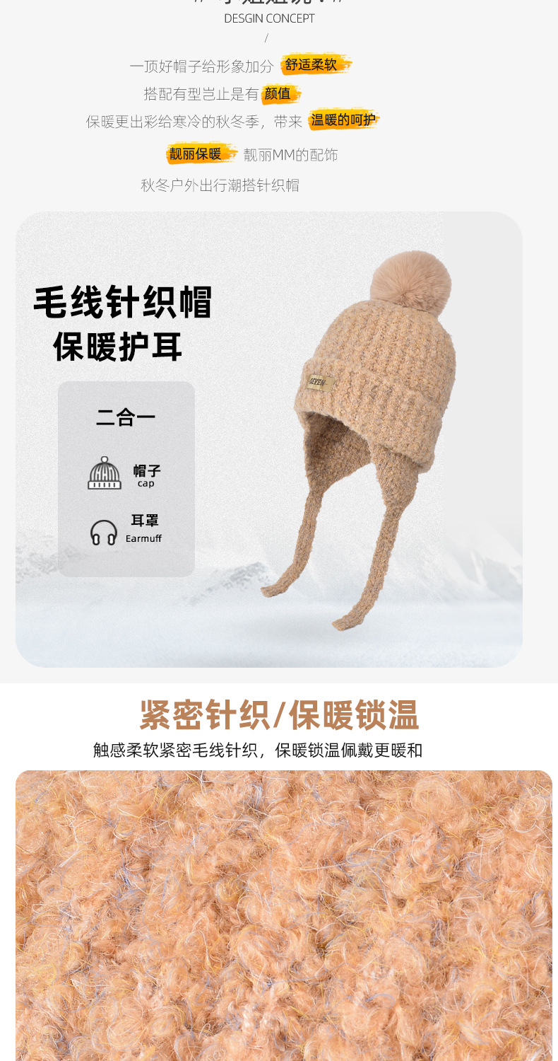 秋冬韩版毛绒帽子女加绒保暖护耳针织毛线帽显脸小百搭套头雷锋帽