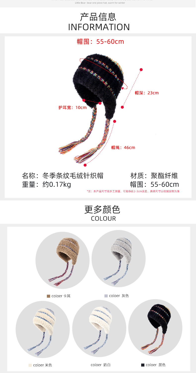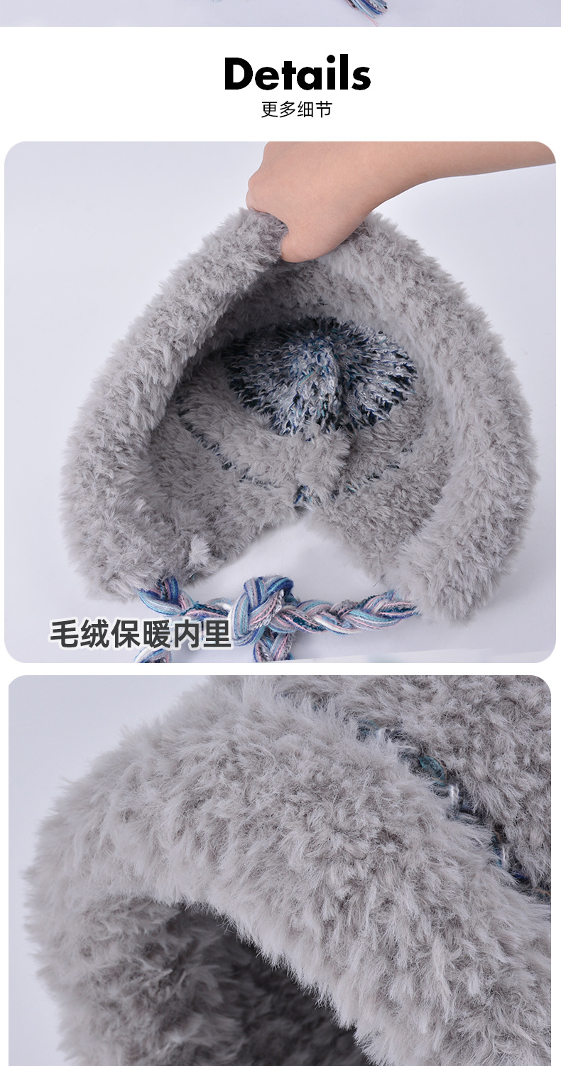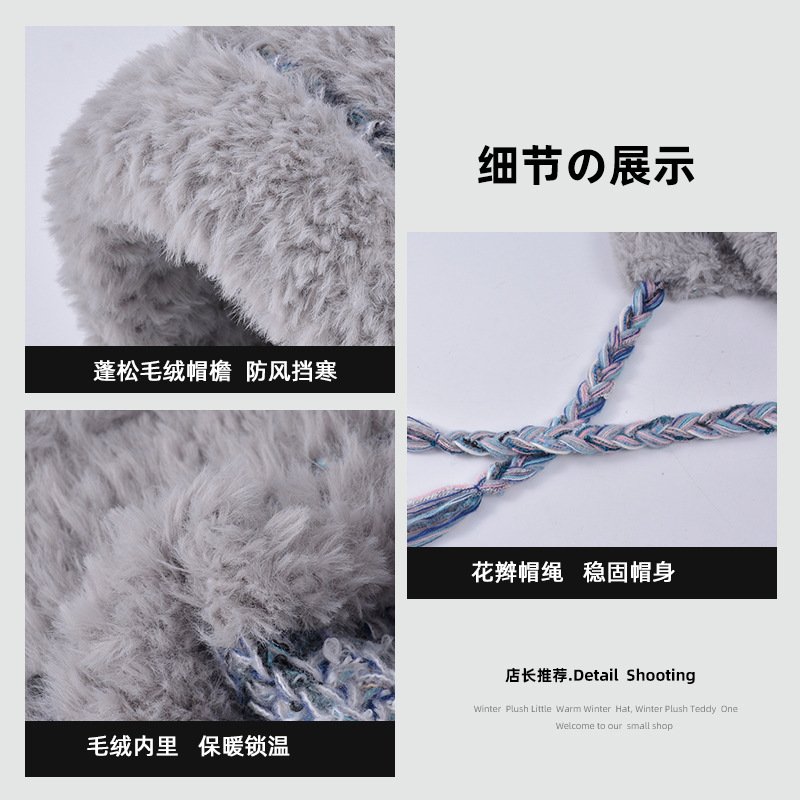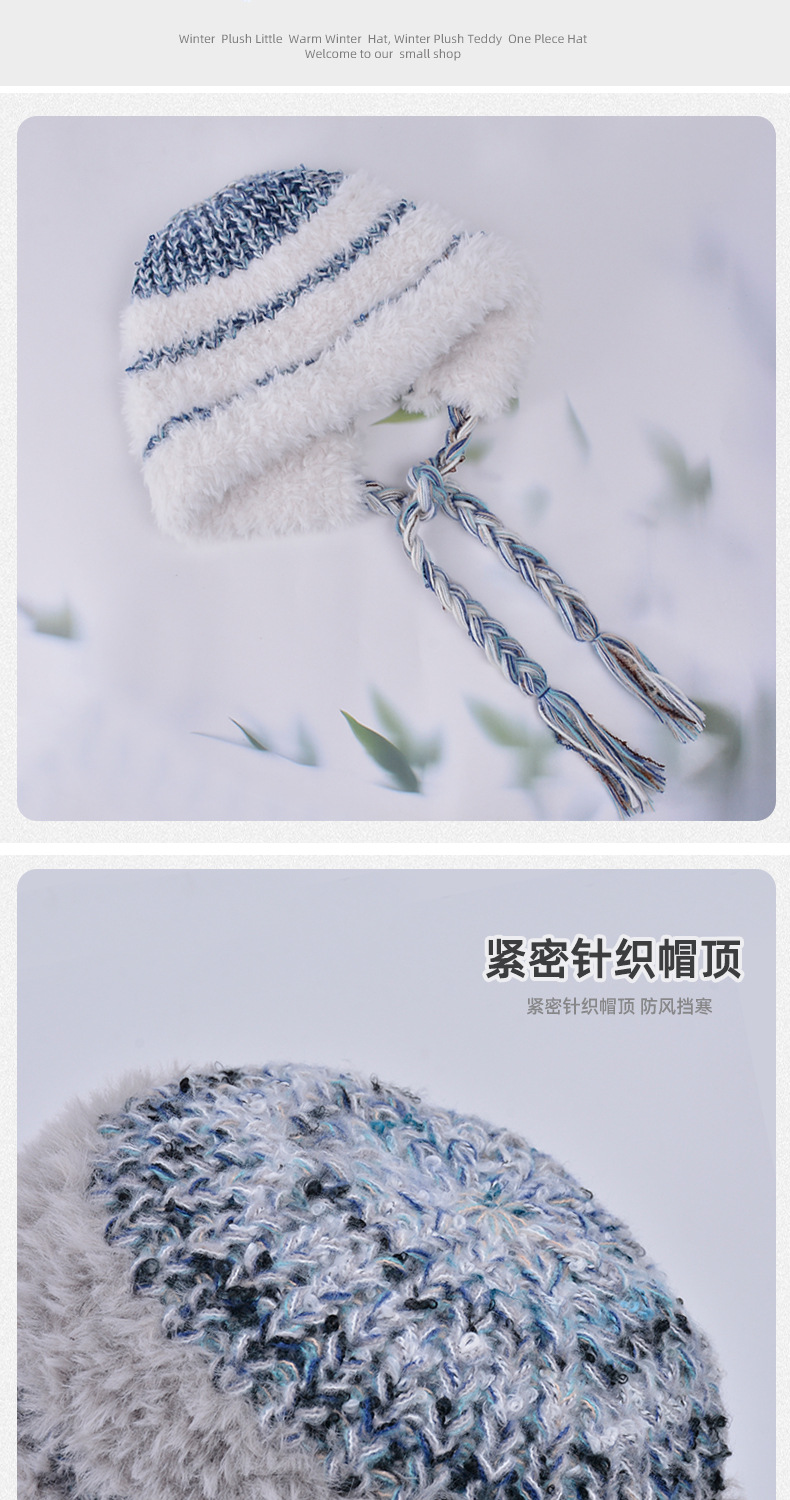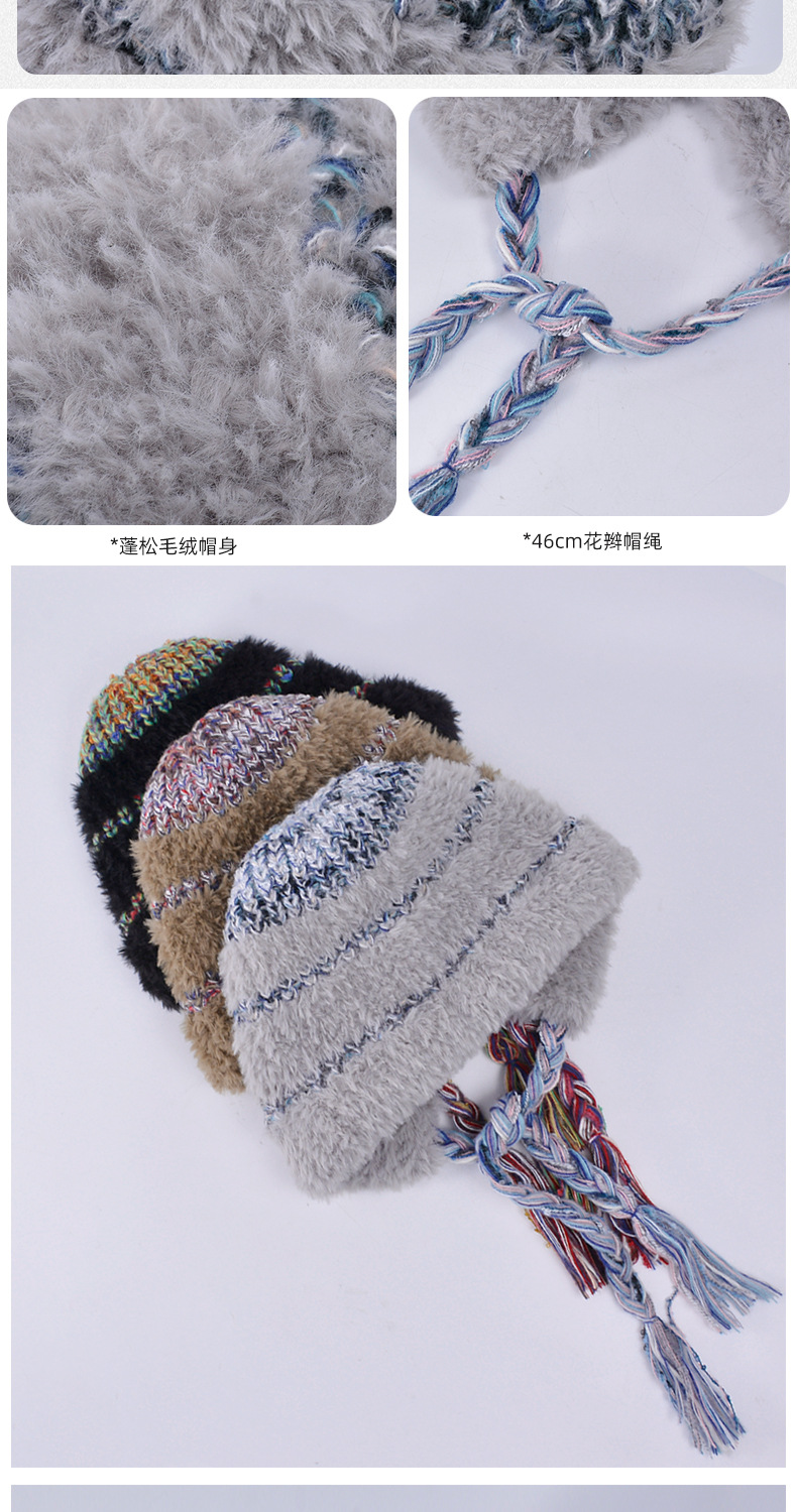冬季百搭显脸小帽子女韩版时尚绑带针织套头帽毛绒保暖护耳毛线帽