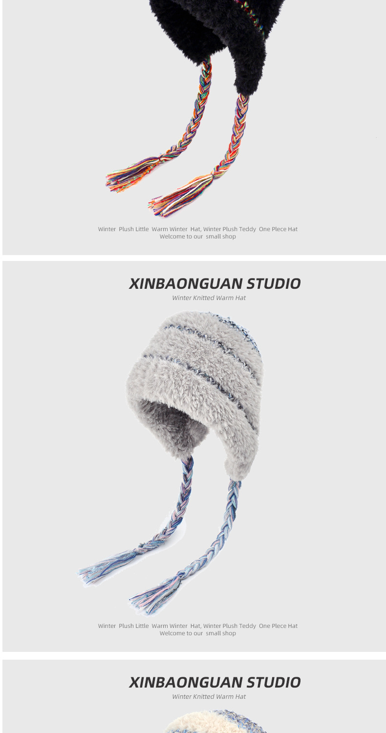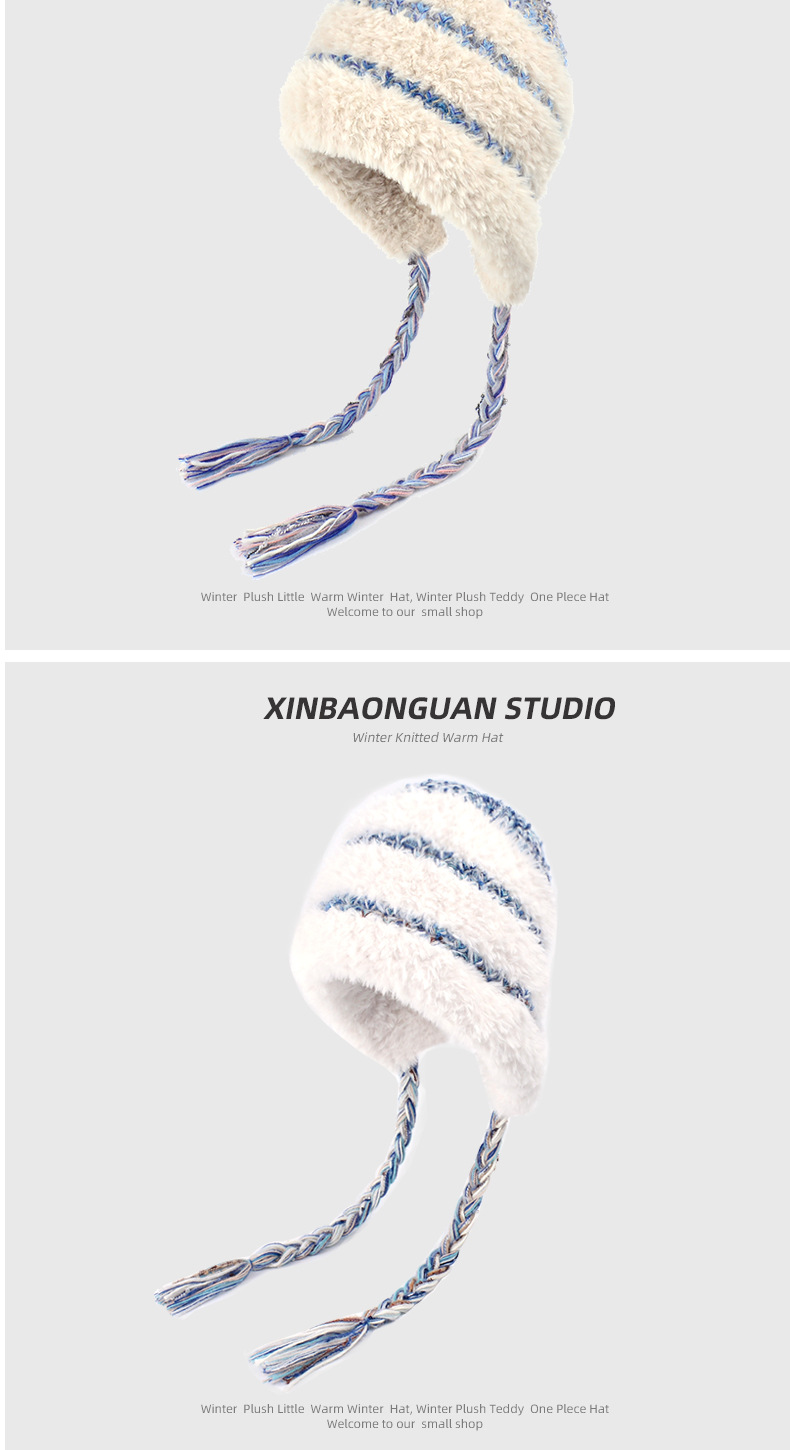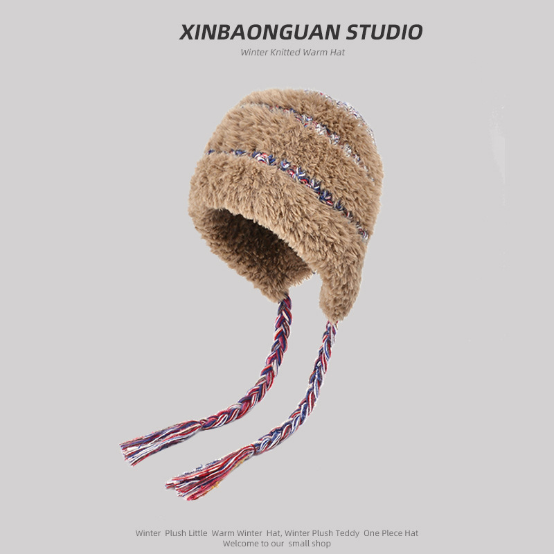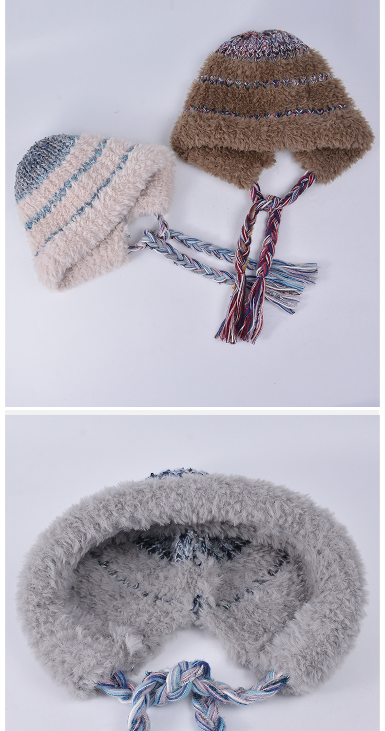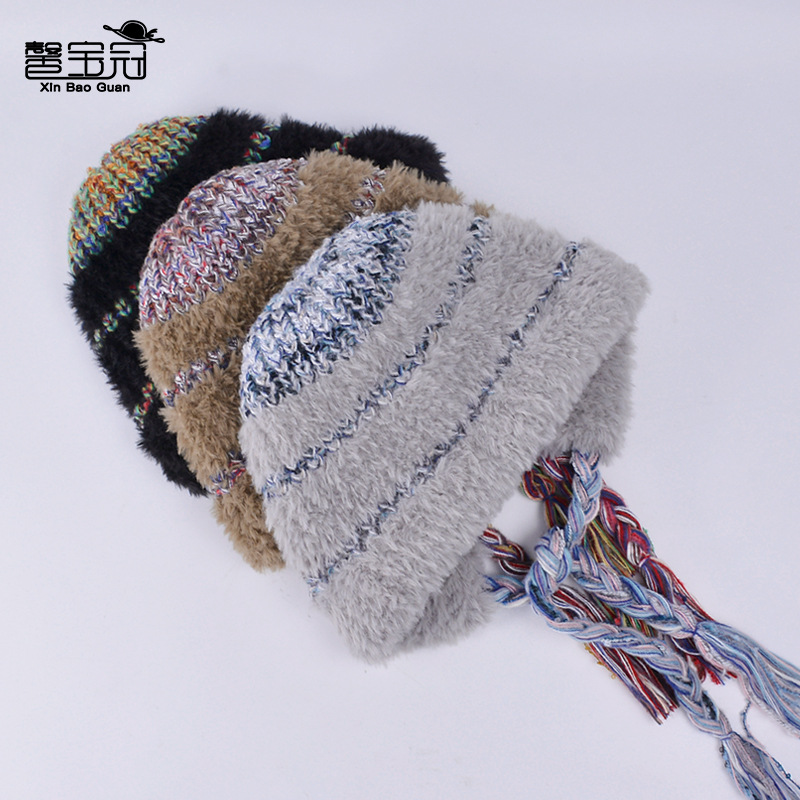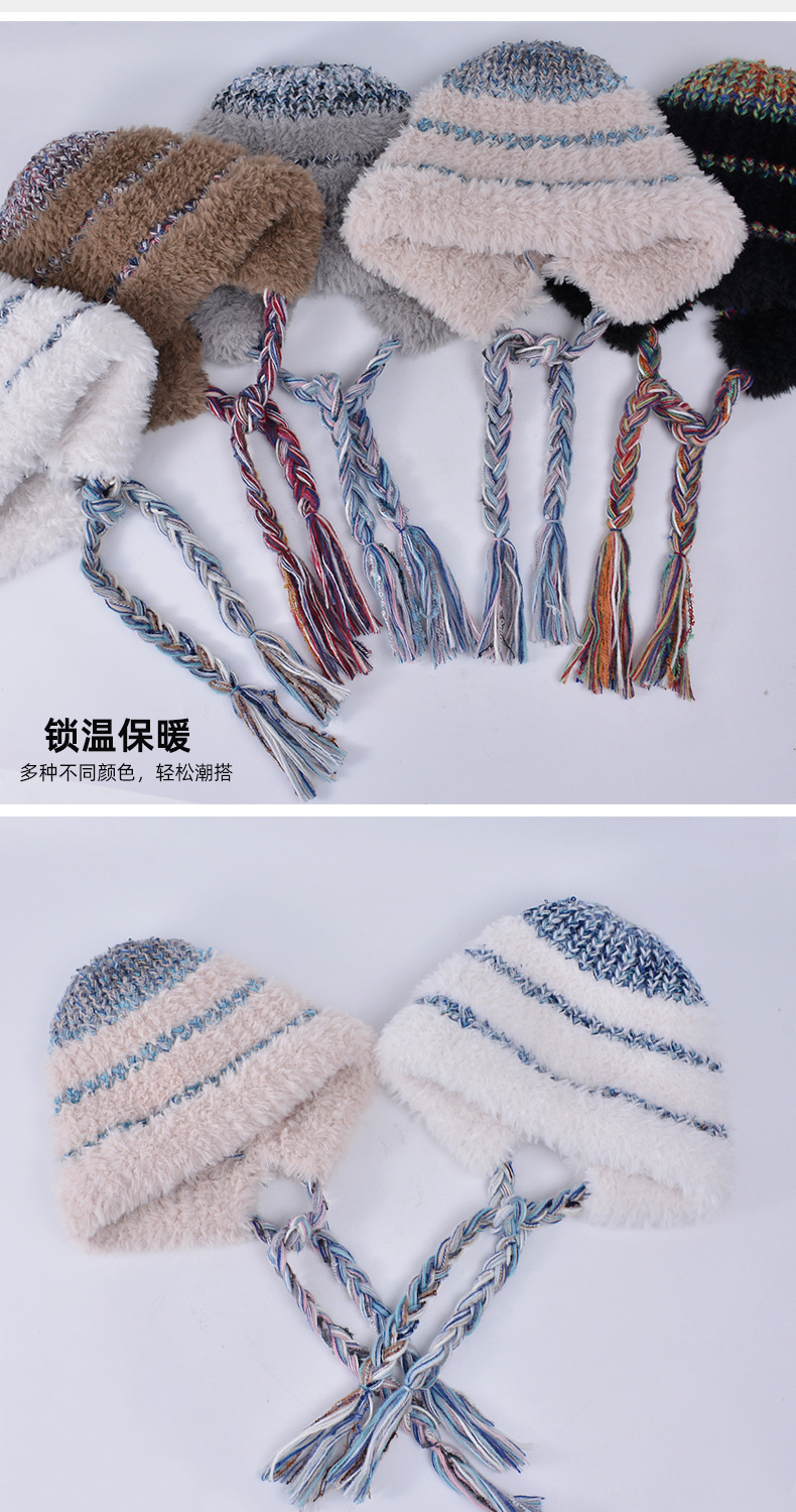 冬季百搭显脸小帽子女韩版时尚绑带针织套头帽毛绒保暖护耳毛线帽
