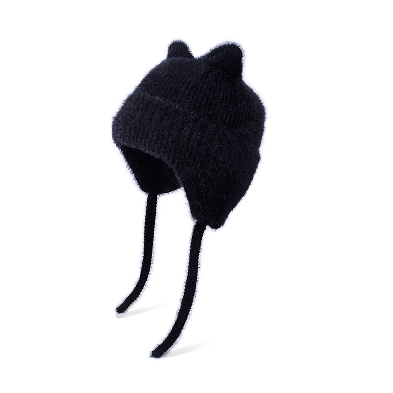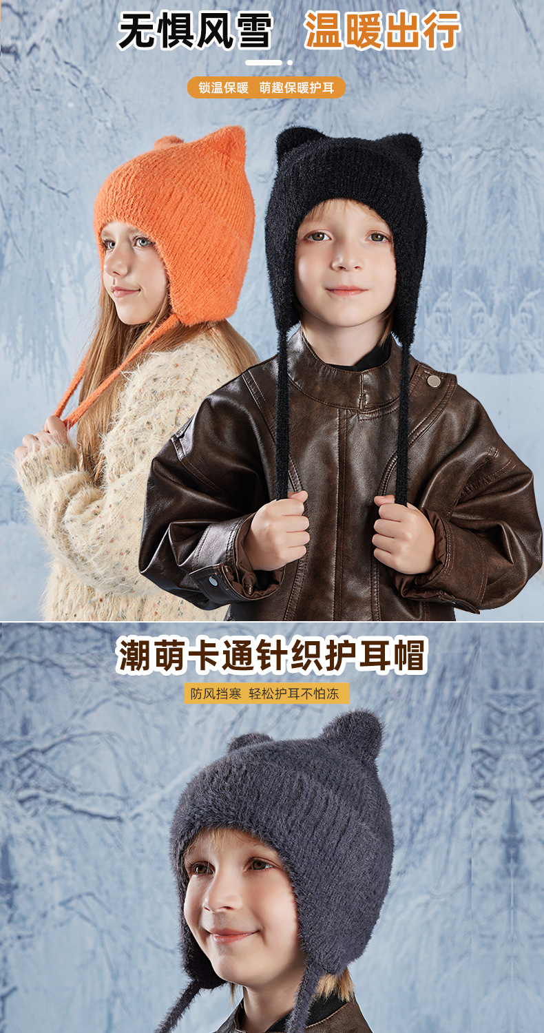 儿童帽子冬季男女宝宝户外保暖护耳套头帽卡通可爱猫耳针织毛线帽