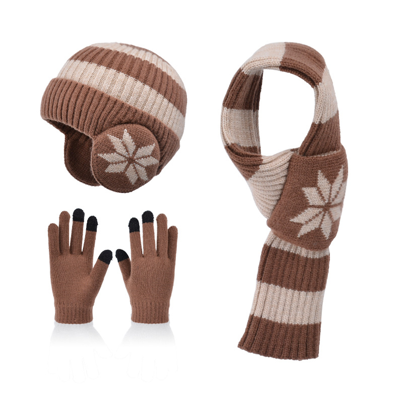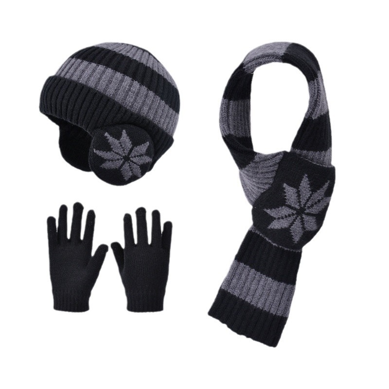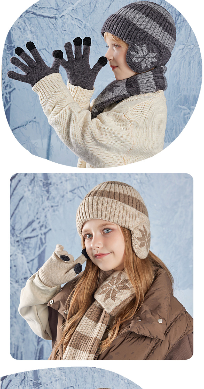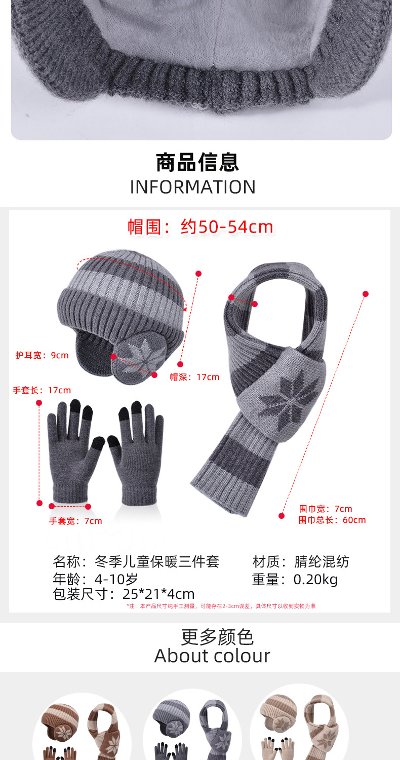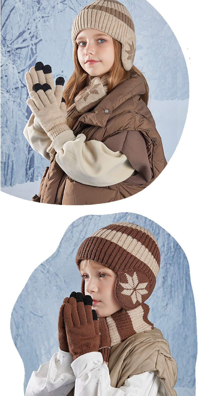 儿童帽子手套围巾套装男女宝宝加绒护耳套头帽冬季保暖针织毛线帽