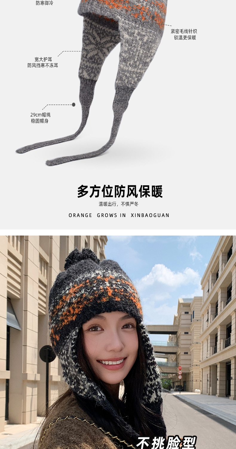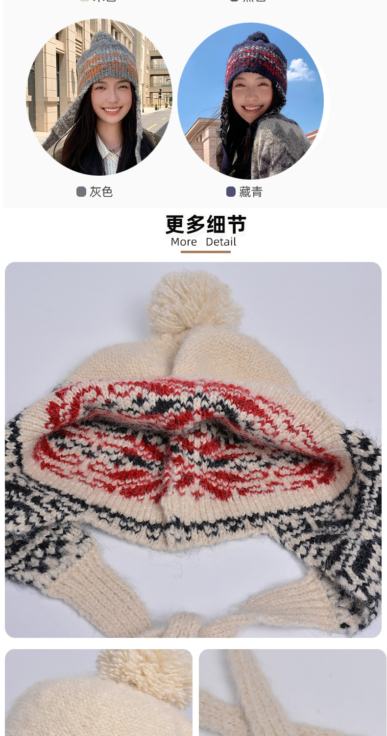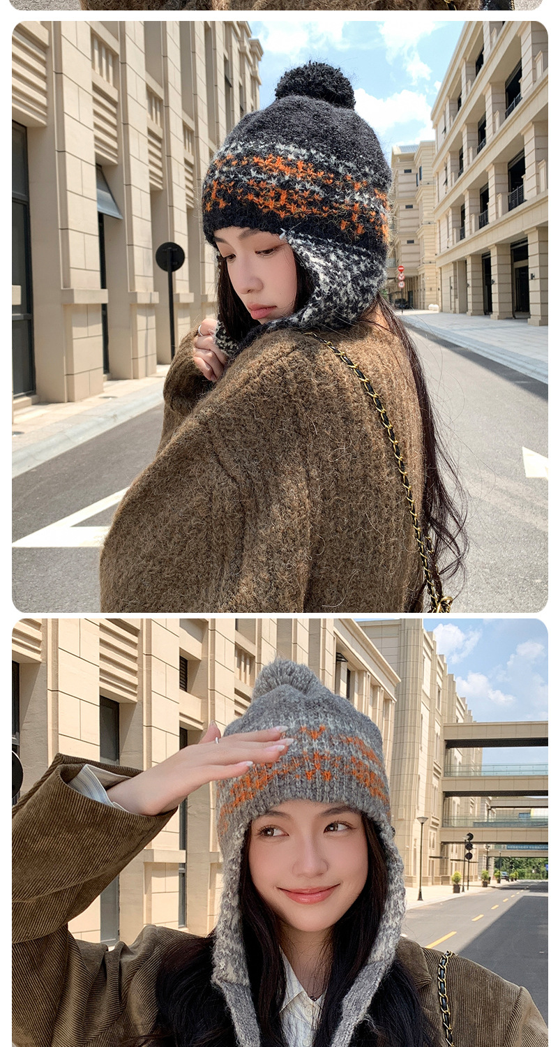 冬季护耳套头帽子女彩色条纹小香风甜美针织毛线帽防寒保暖雷锋帽