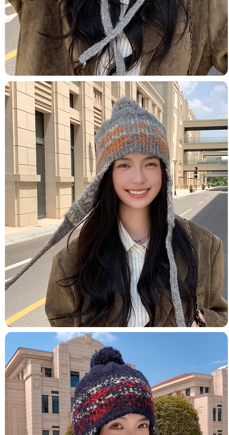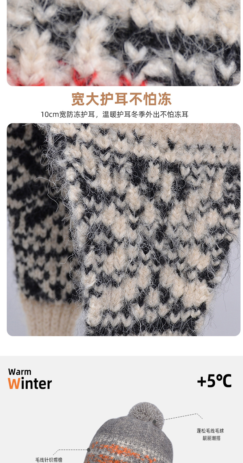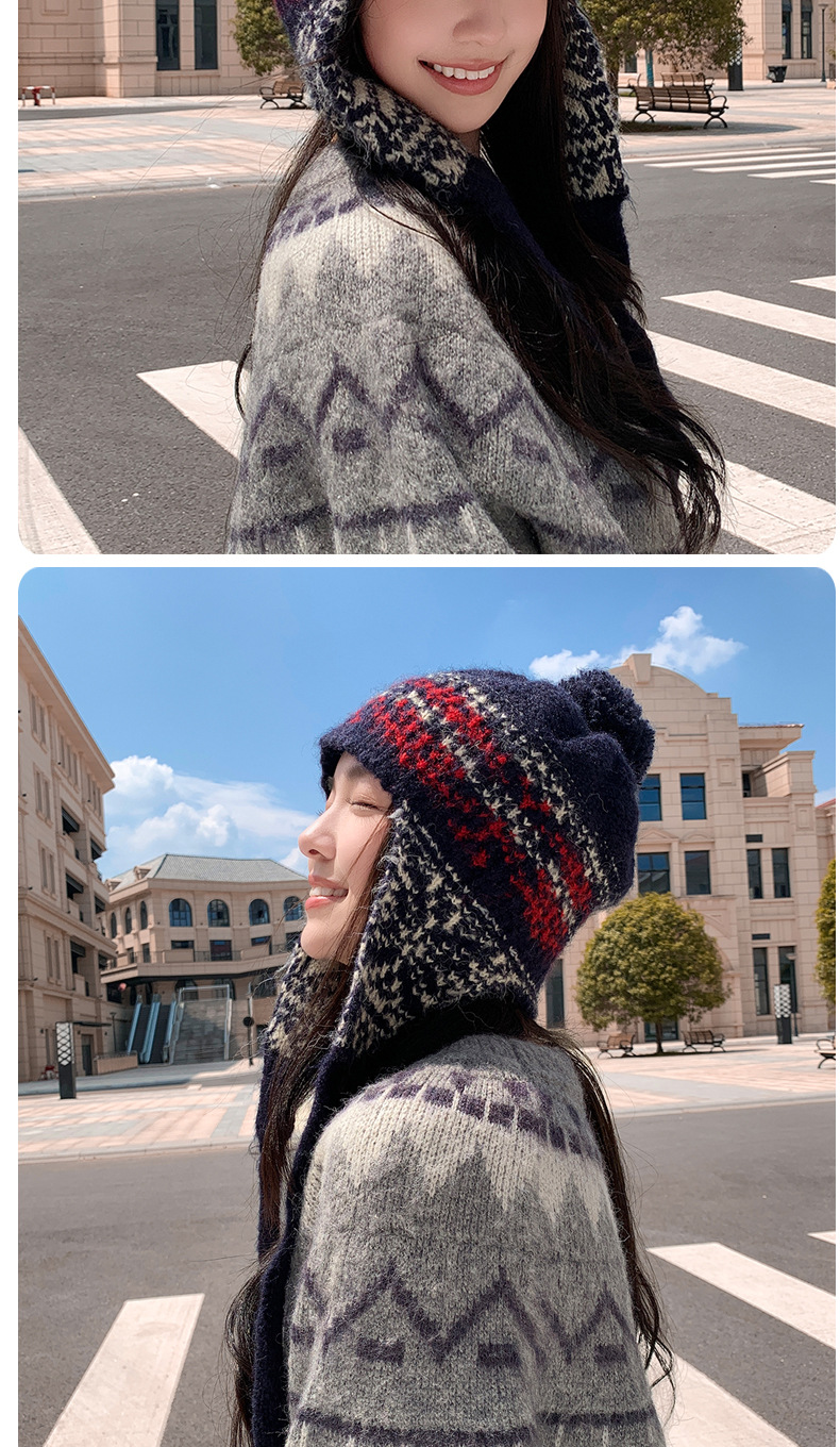冬季护耳套头帽子女彩色条纹小香风甜美针织毛线帽防寒保暖雷锋帽