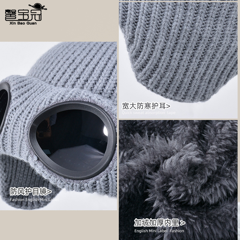 2163跨境儿童帽子围脖两件套冬季加绒护耳毛线帽带眼镜针织套头帽