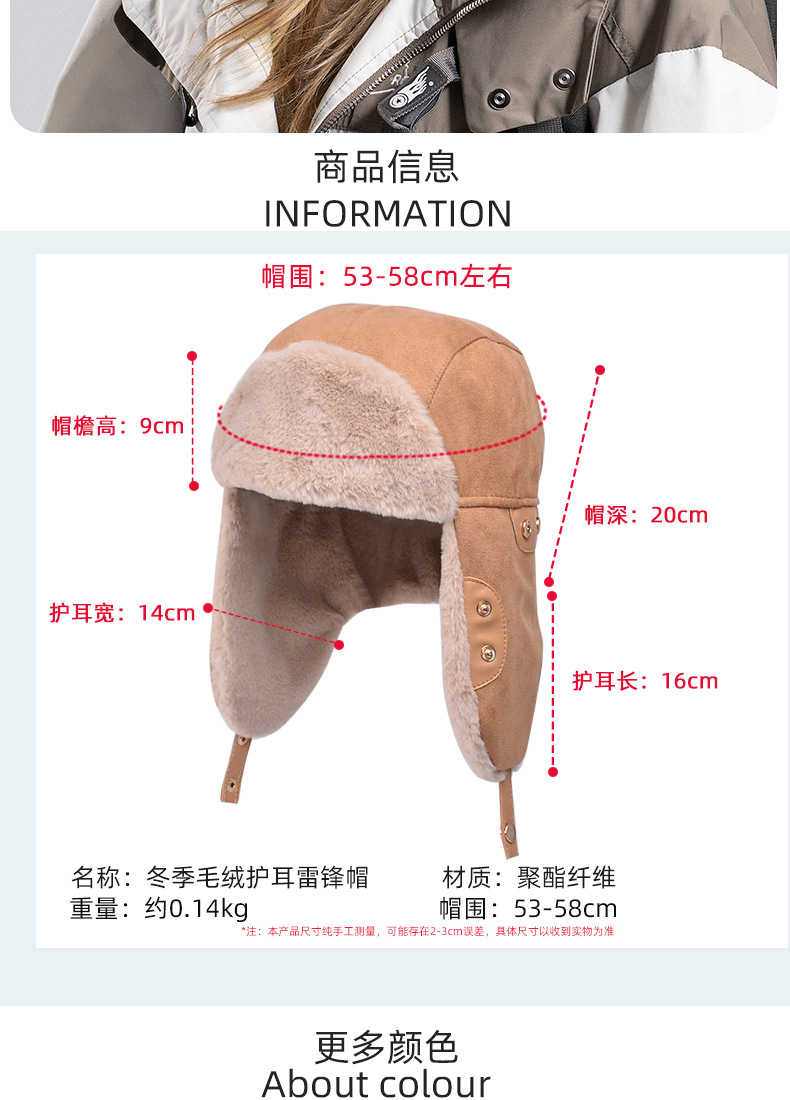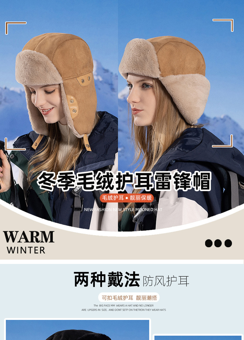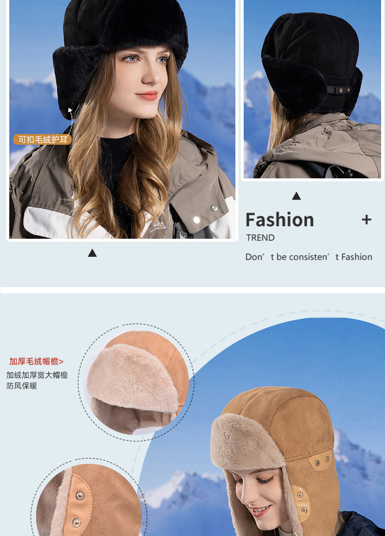 8384冬季加绒防寒帽子女男士户外防风护耳套头帽加厚保暖雷锋帽