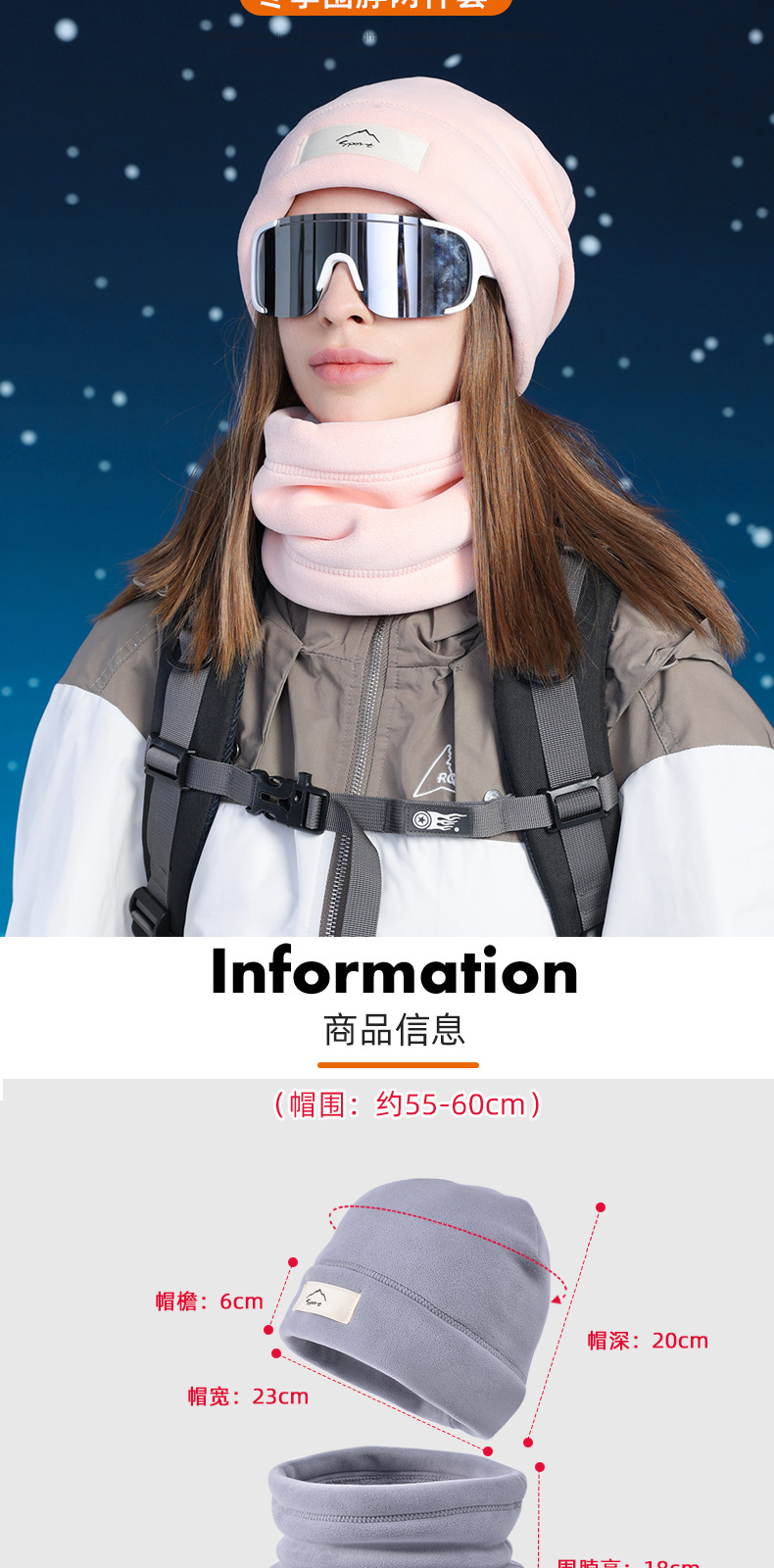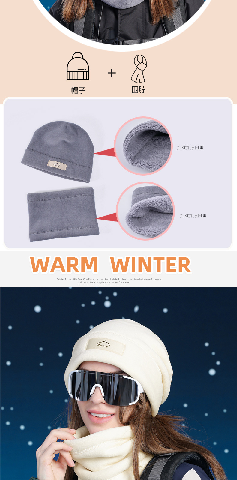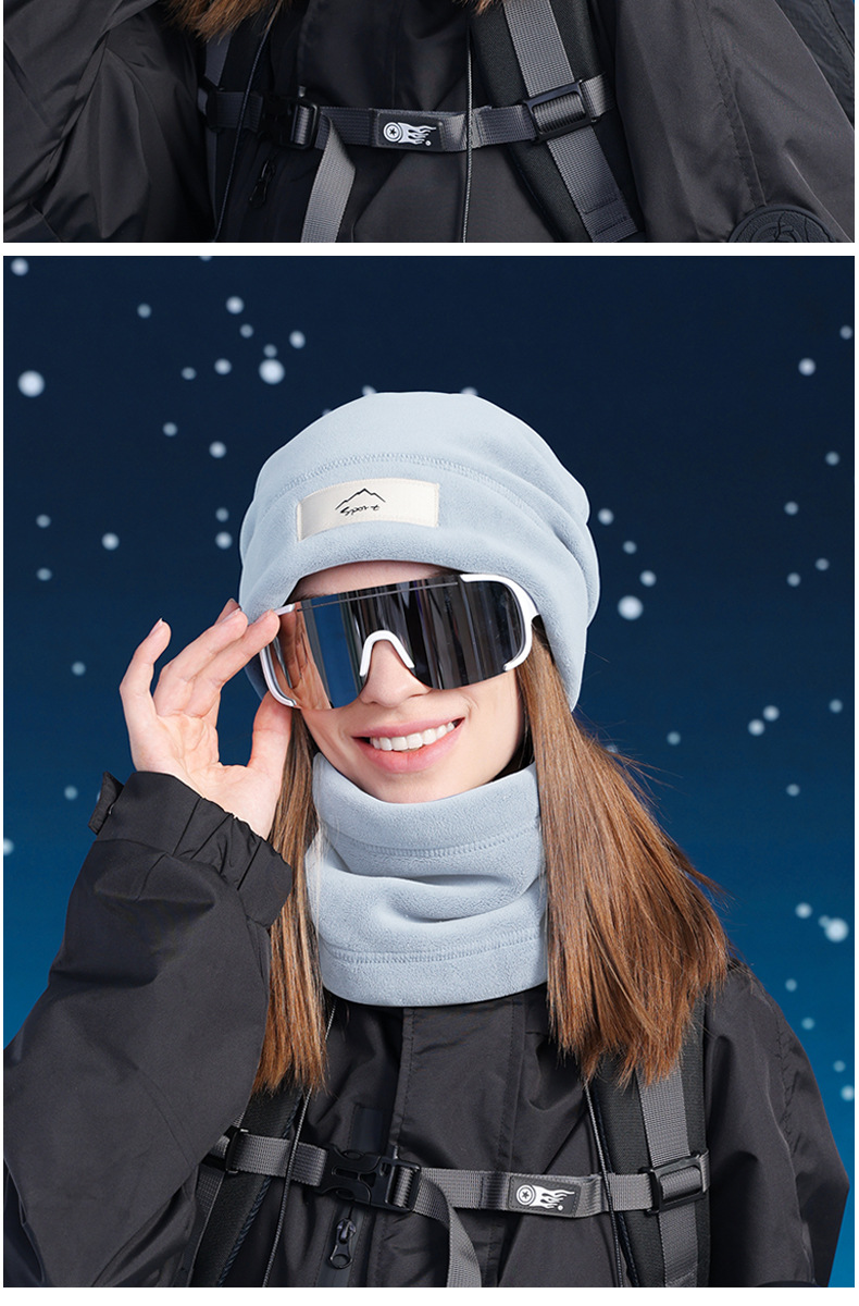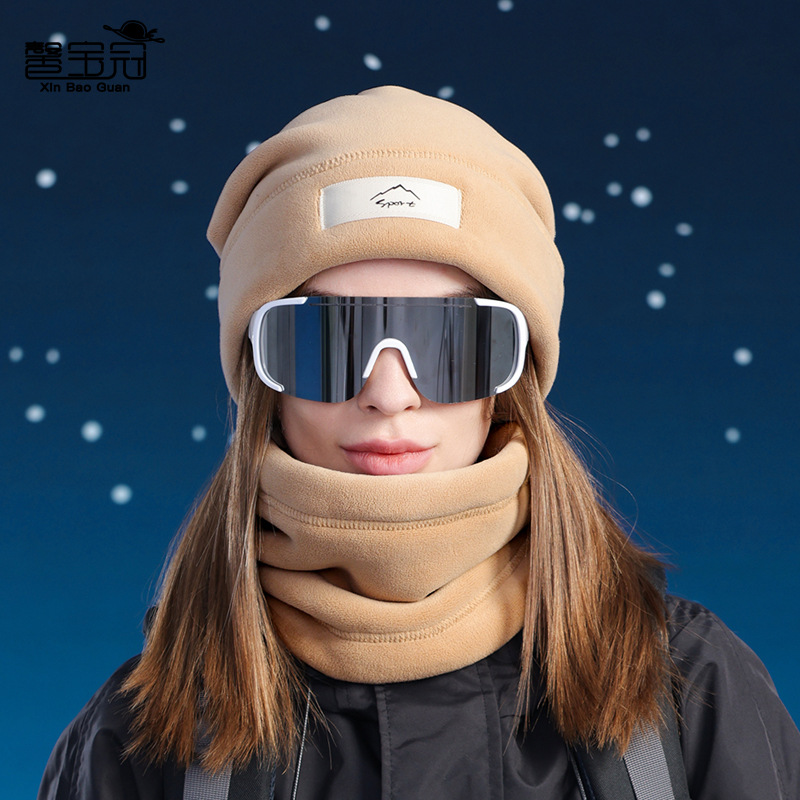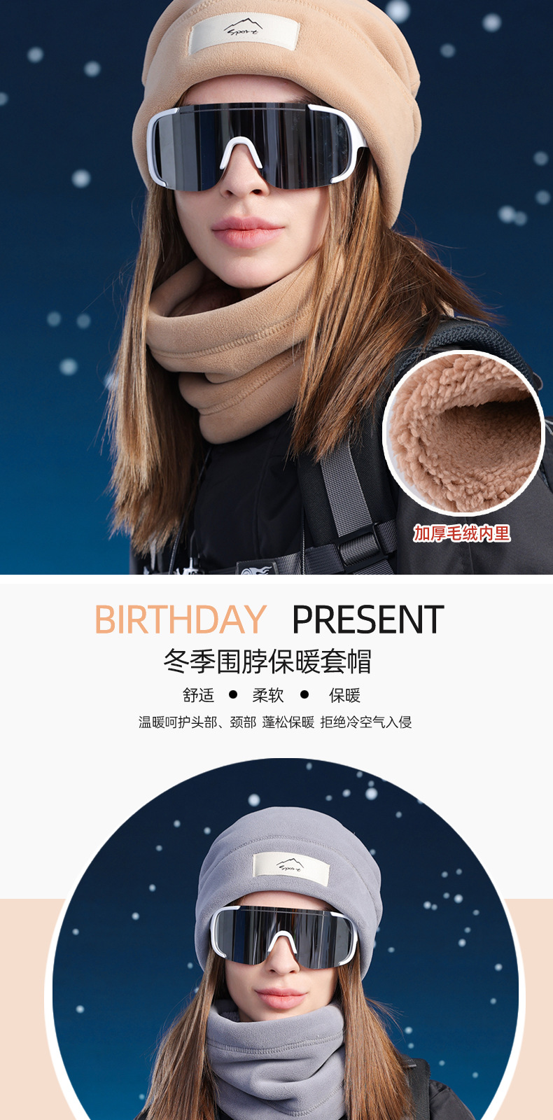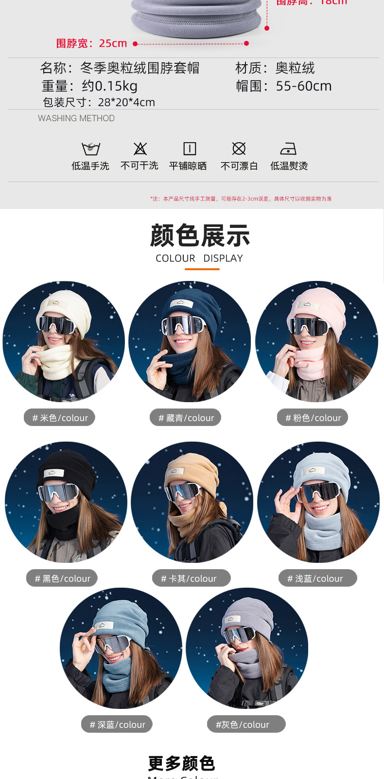 冬季奥粒绒帽子围脖套装加绒保暖护耳套头帽男女户外骑车防寒套帽