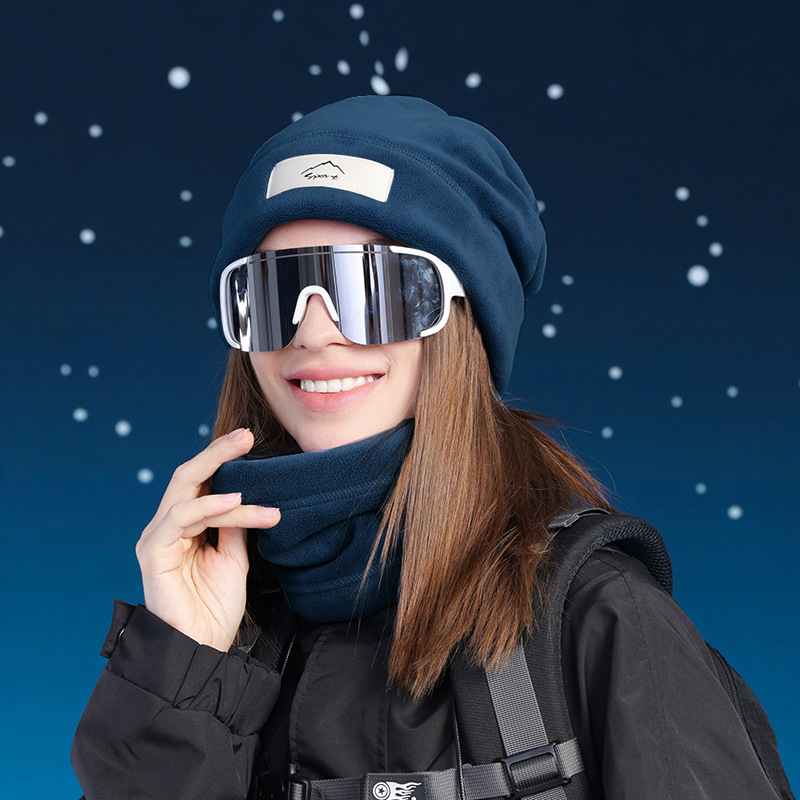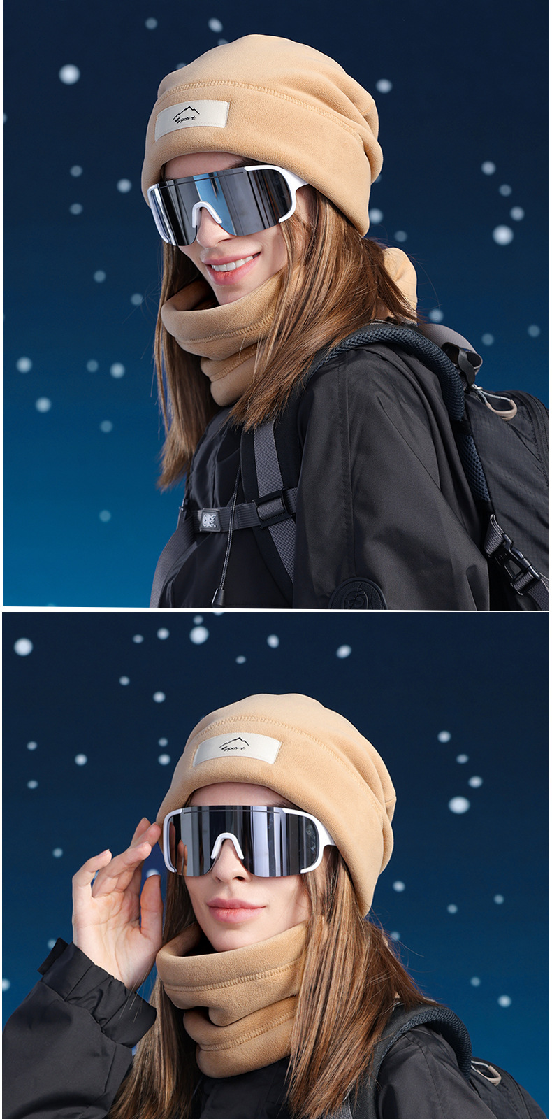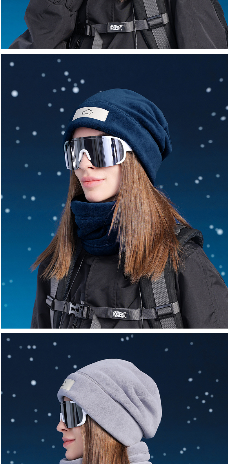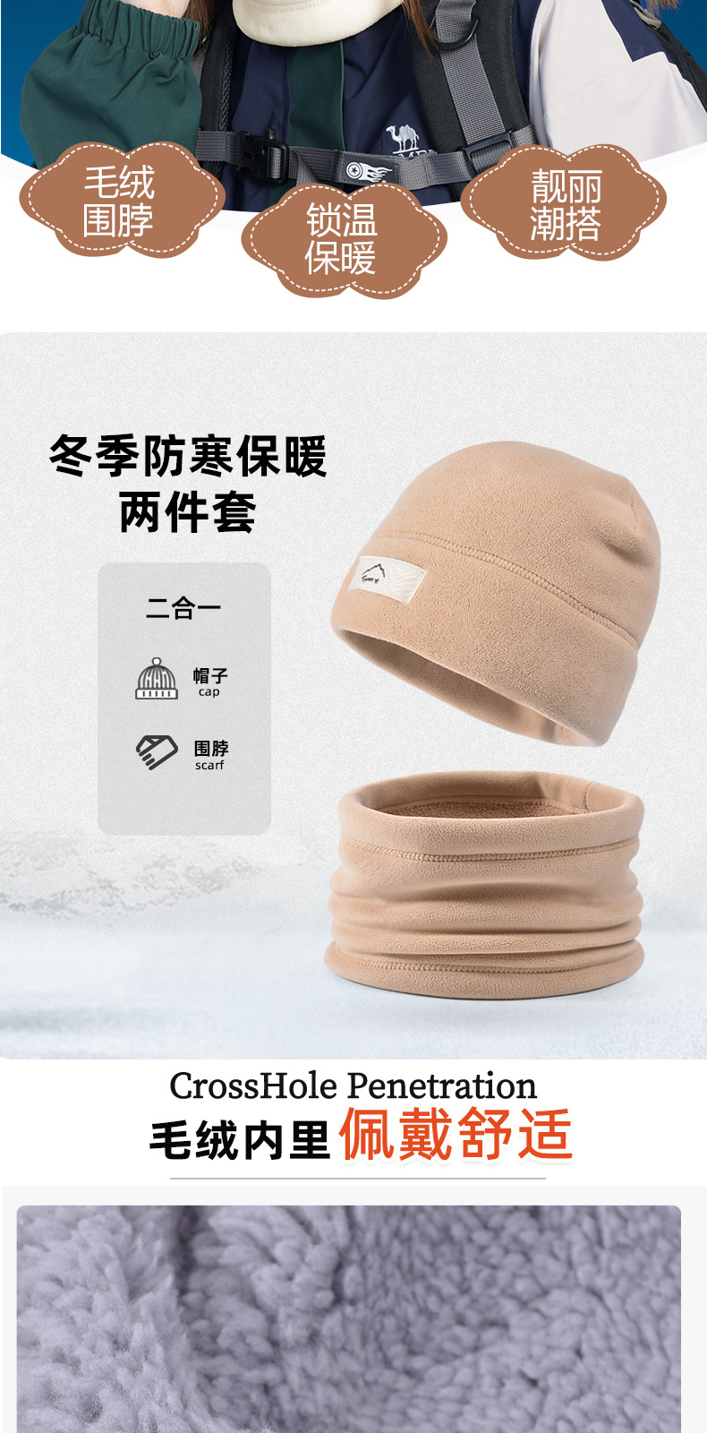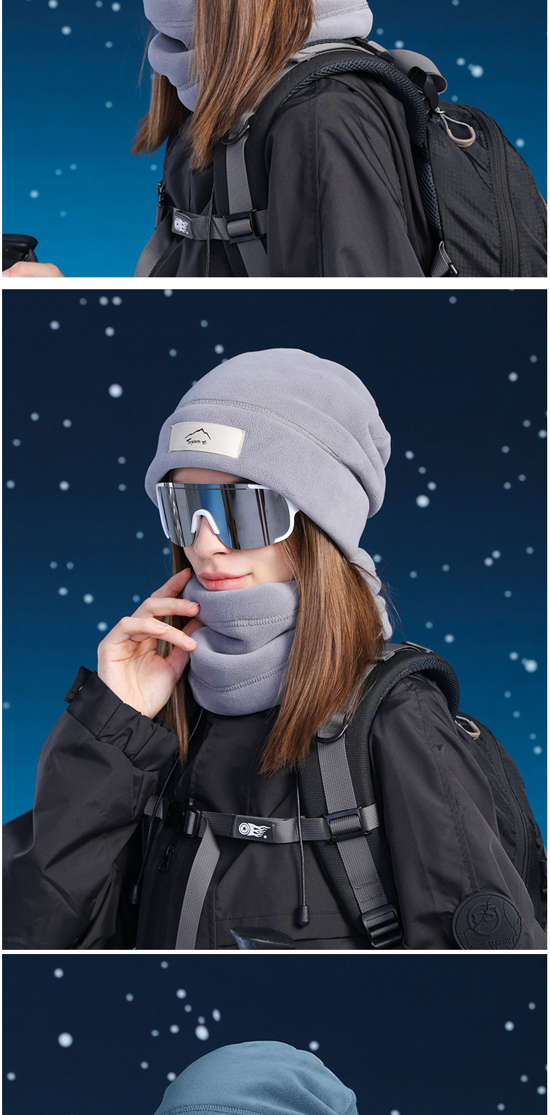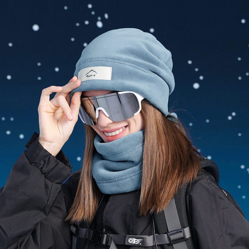 冬季奥粒绒帽子围脖套装加绒保暖护耳套头帽男女户外骑车防寒套帽