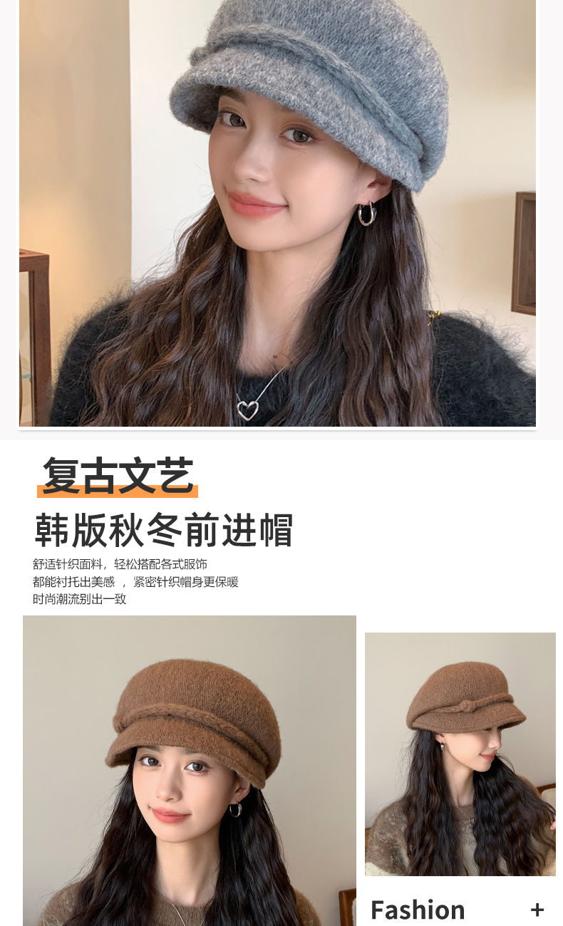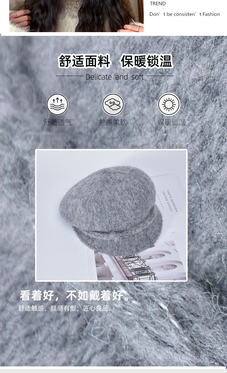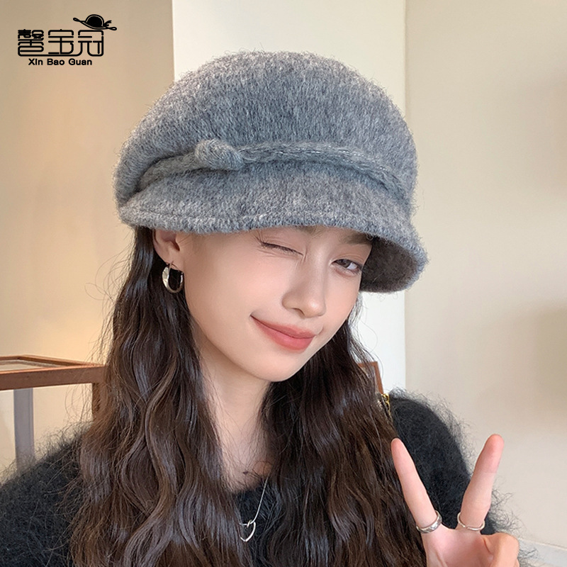 秋冬新款贝雷帽大头围显脸小画家帽韩版百搭八角帽休闲复古帽子女
