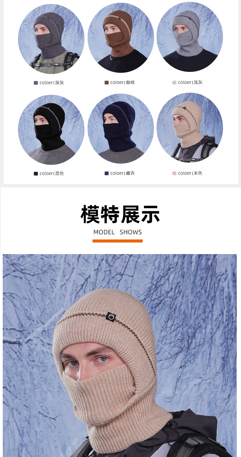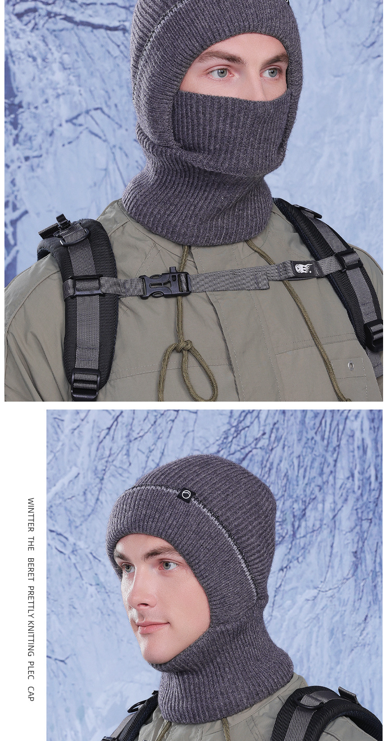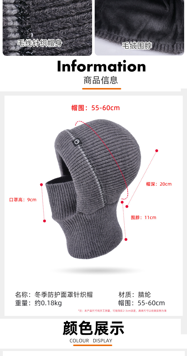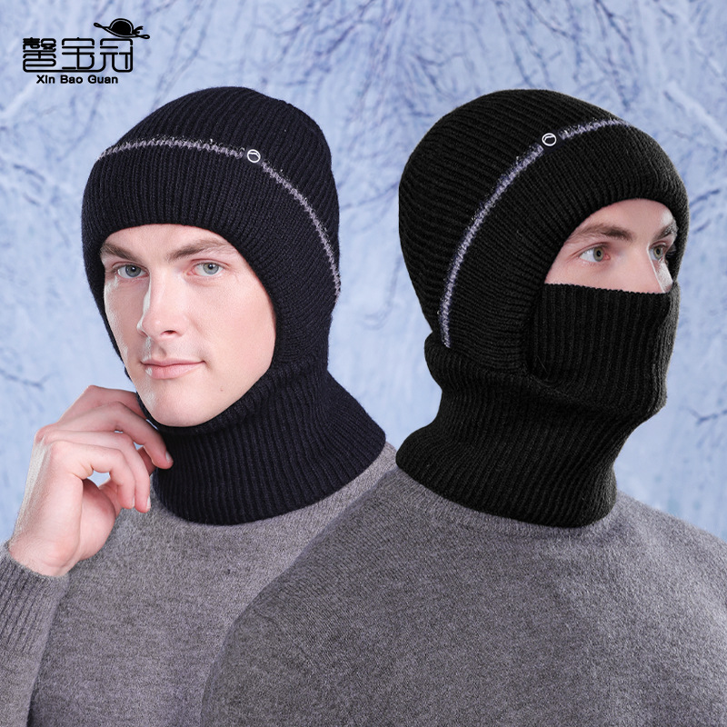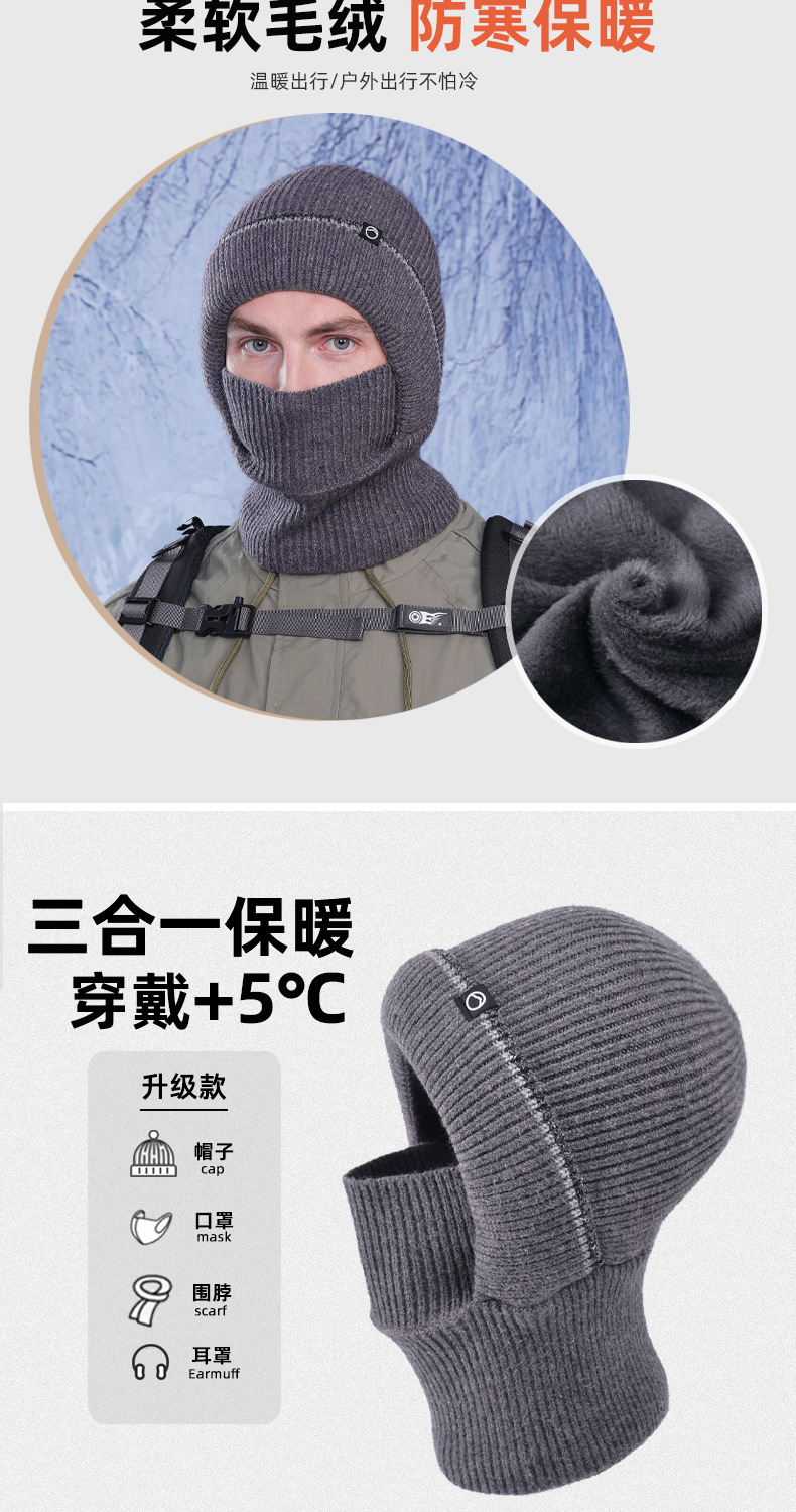 帽子面罩围脖一体帽冬季户外保暖套头帽男加绒防寒护耳针织毛线帽