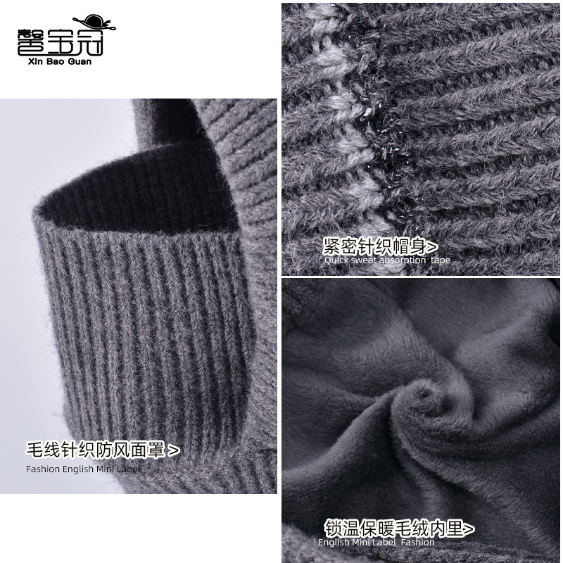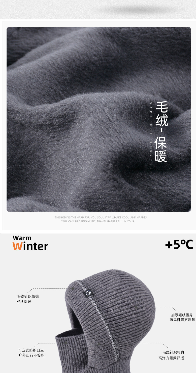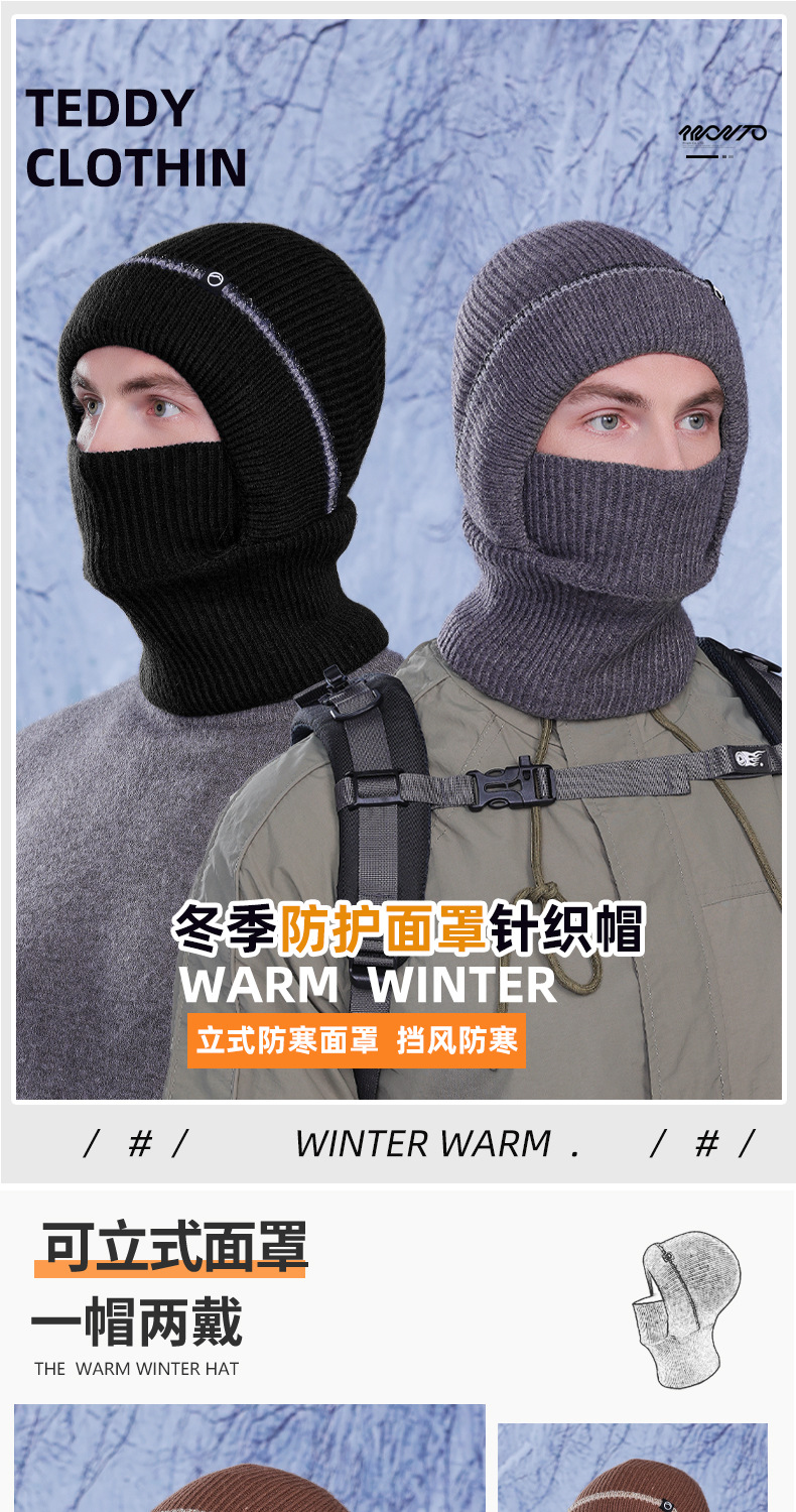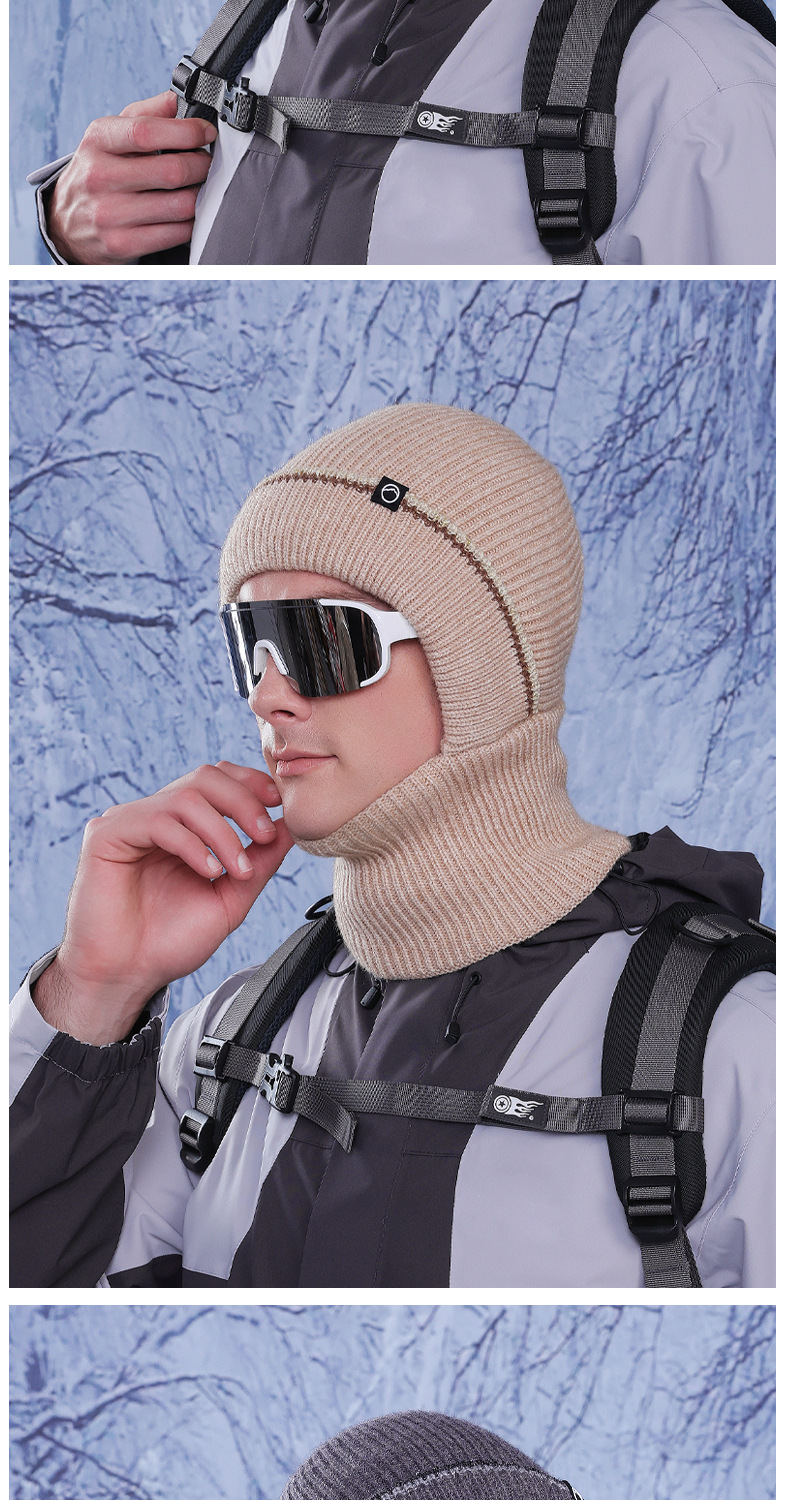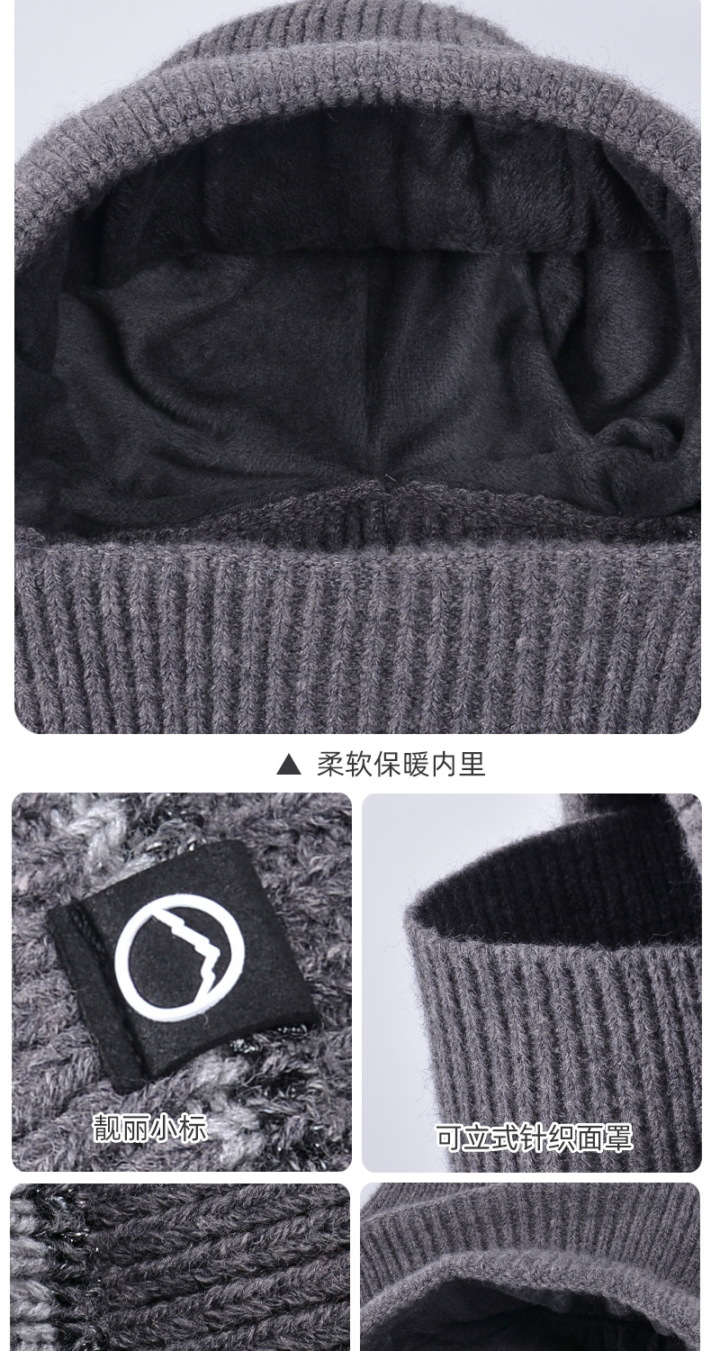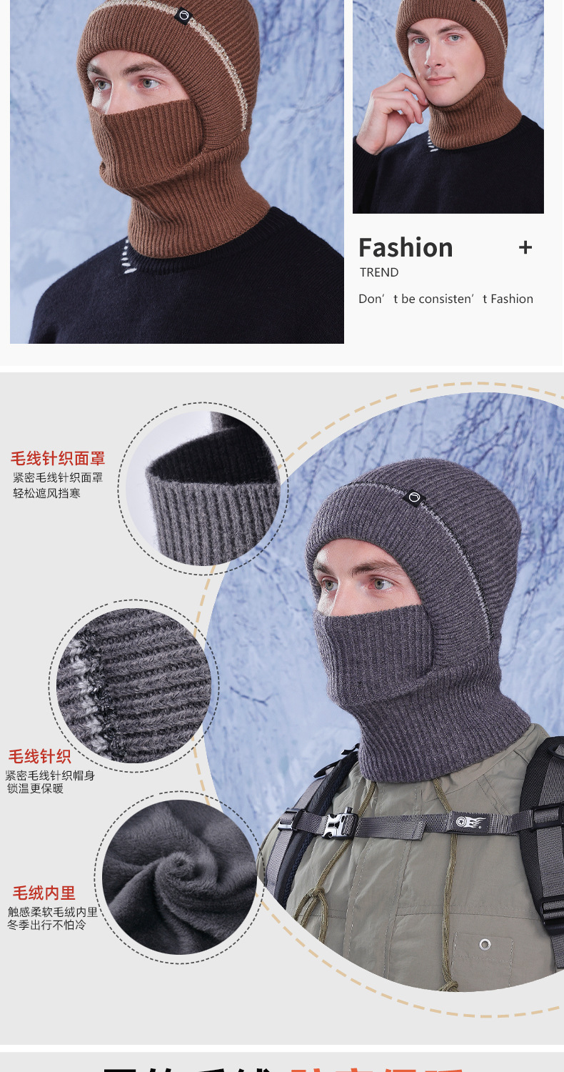 帽子面罩围脖一体帽冬季户外保暖套头帽男加绒防寒护耳针织毛线帽