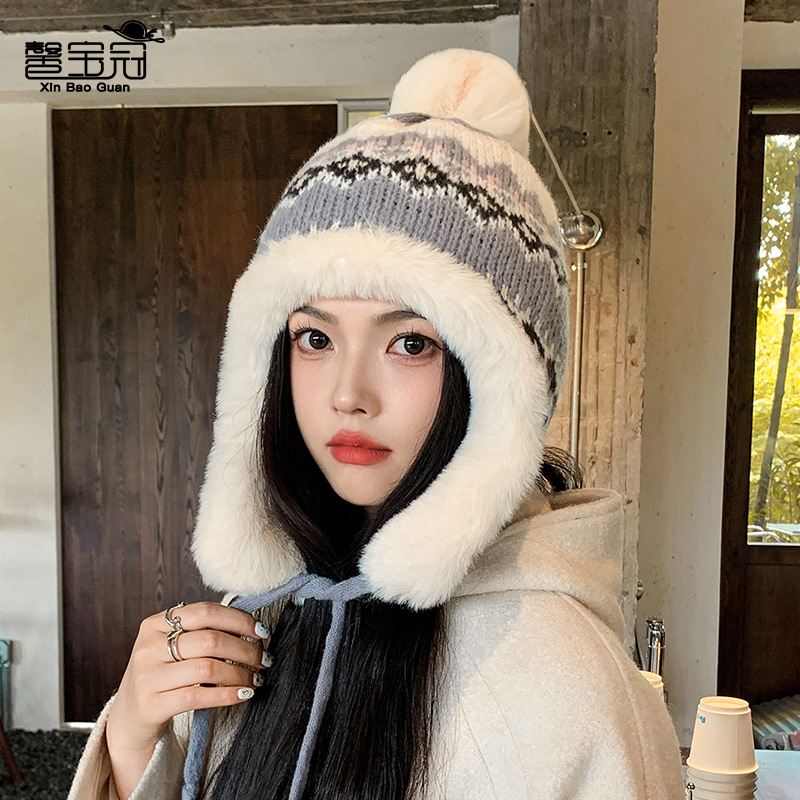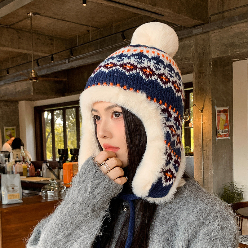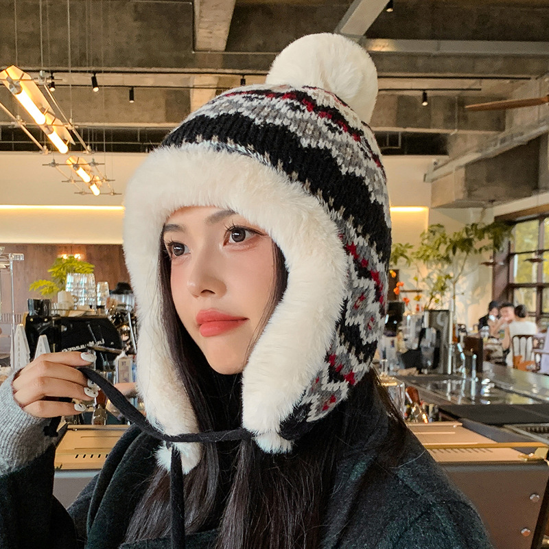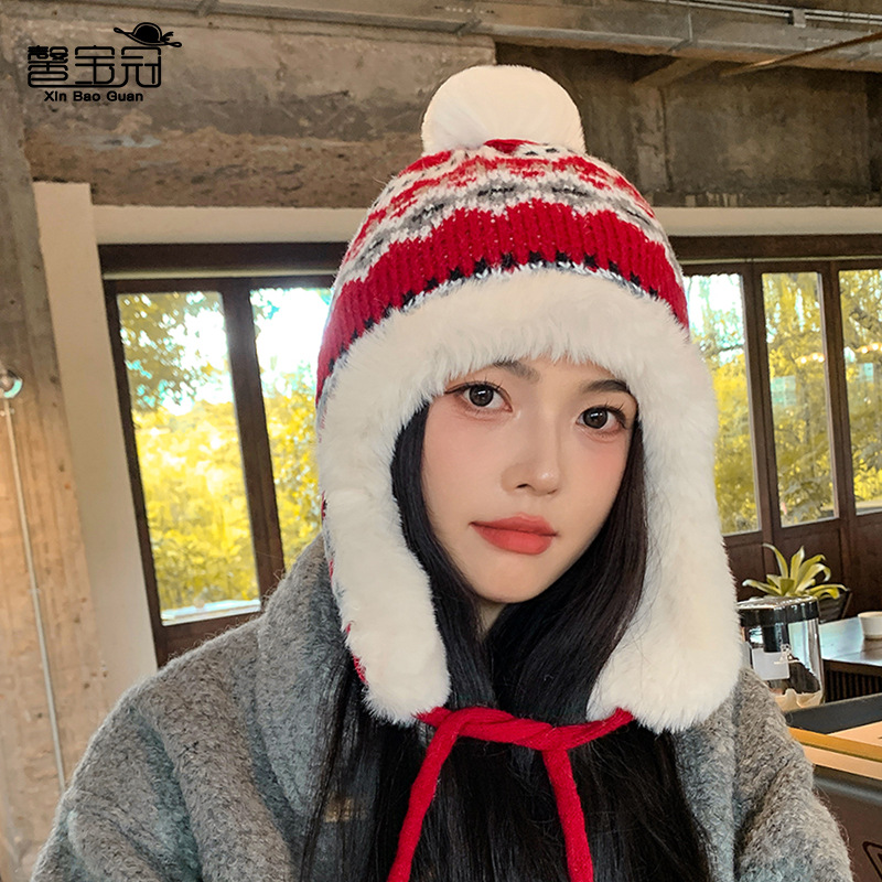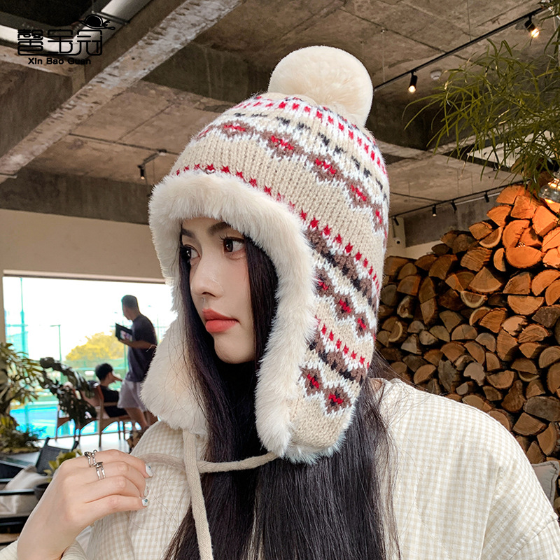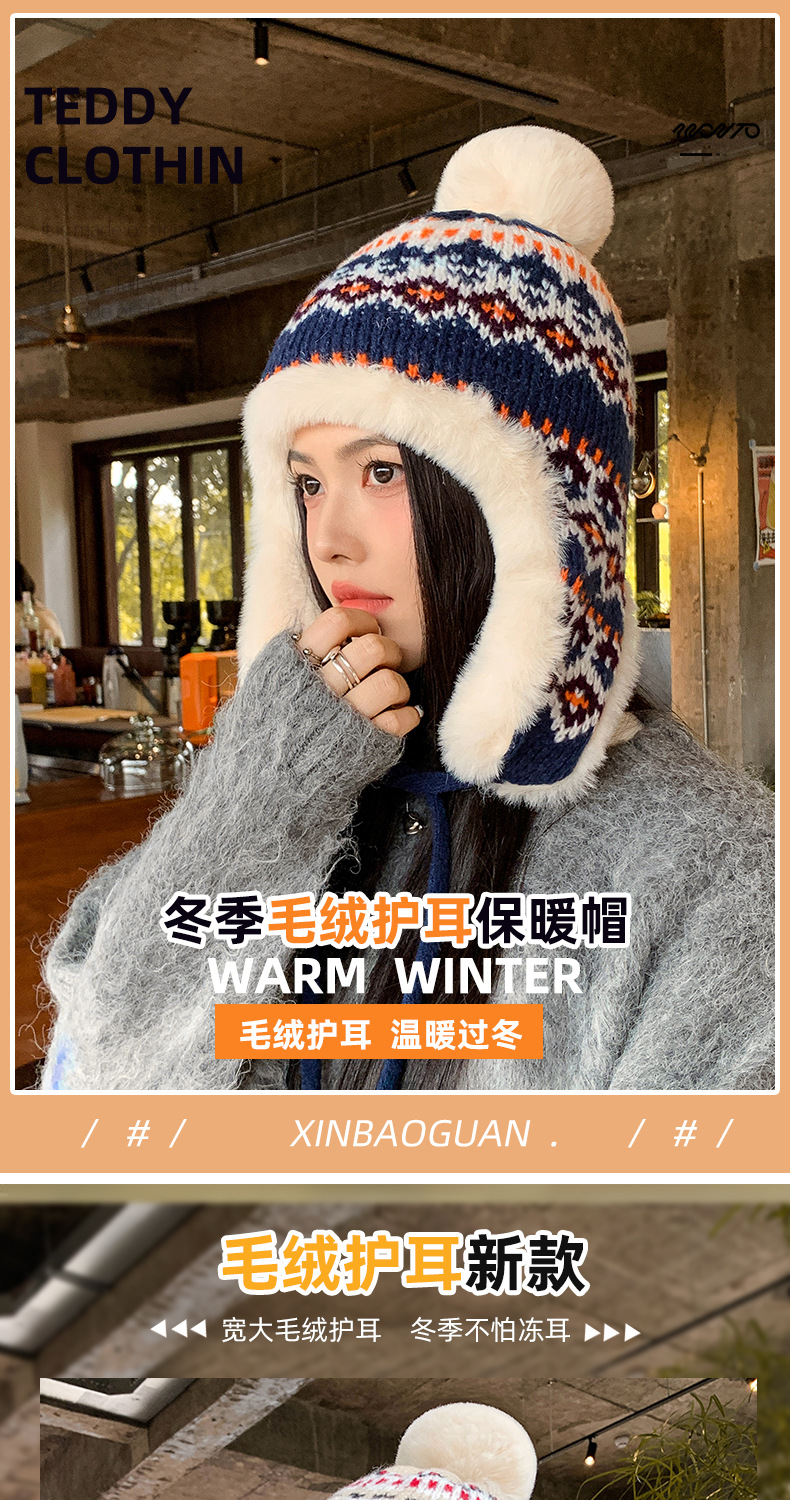 韩版百搭显脸小针织帽子女冬季骑行保暖护耳雷锋帽加绒套头毛线帽