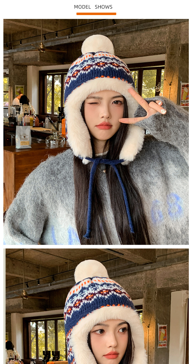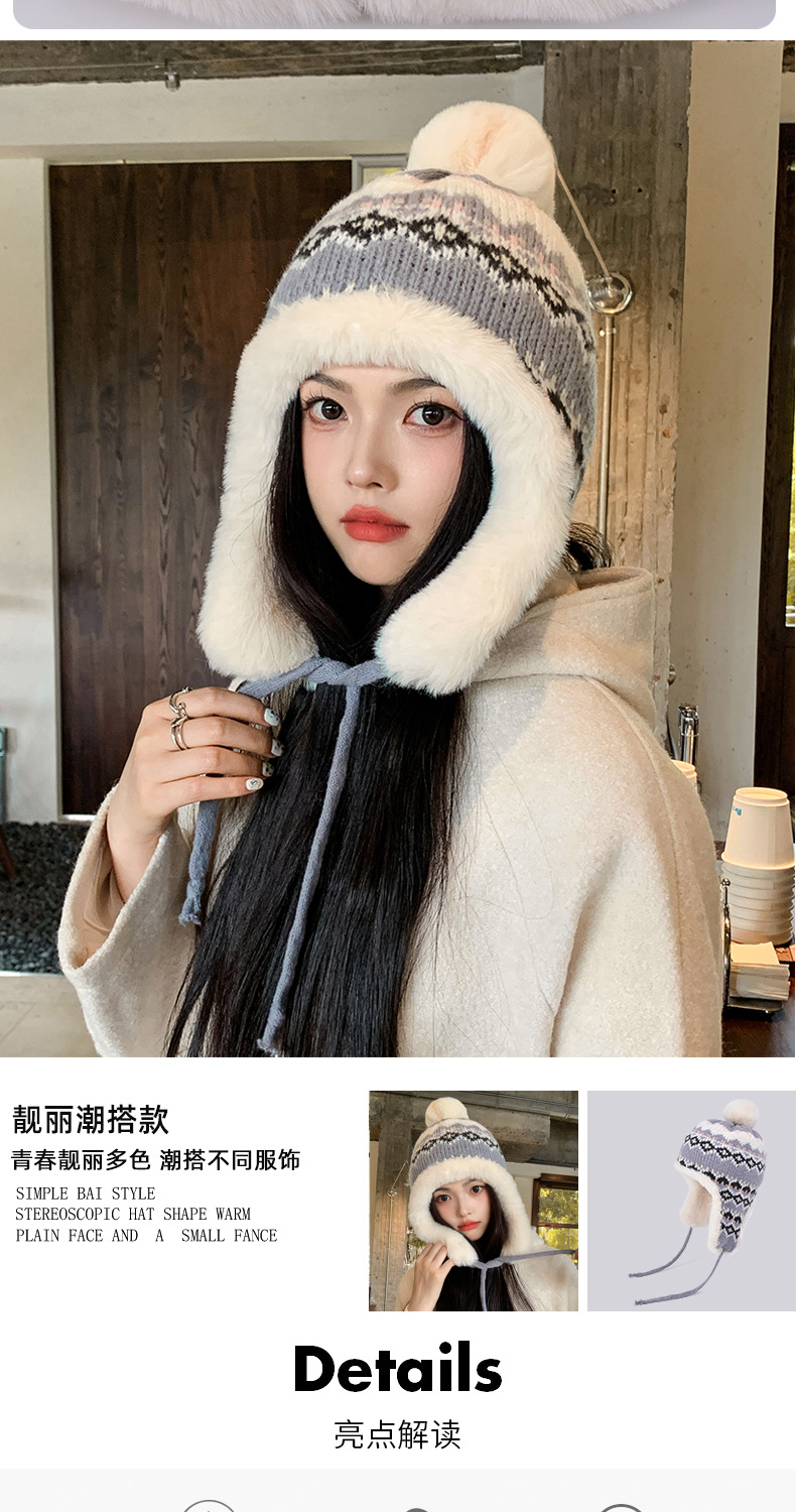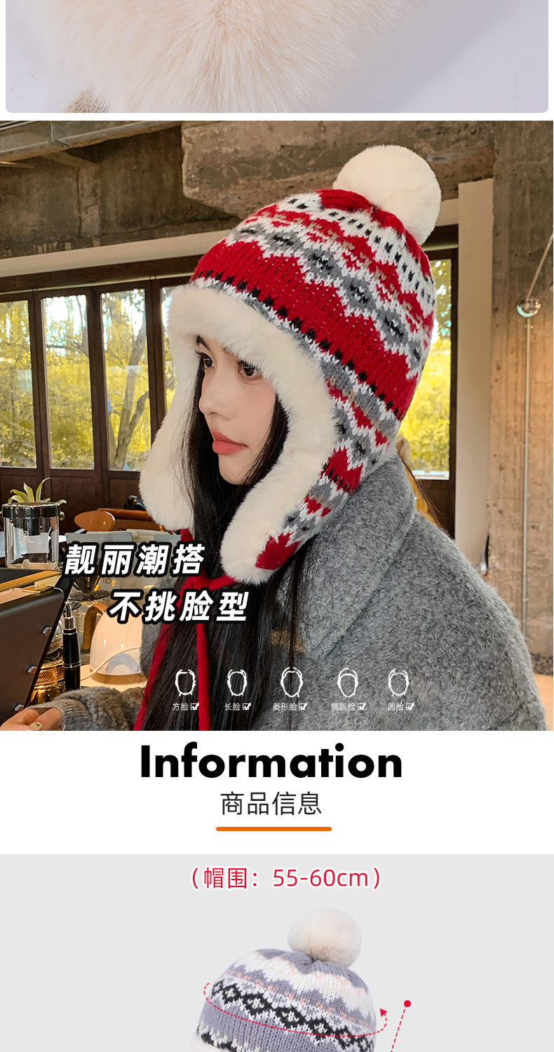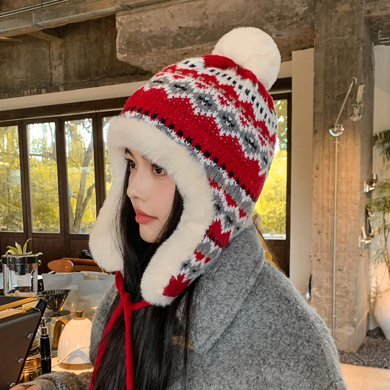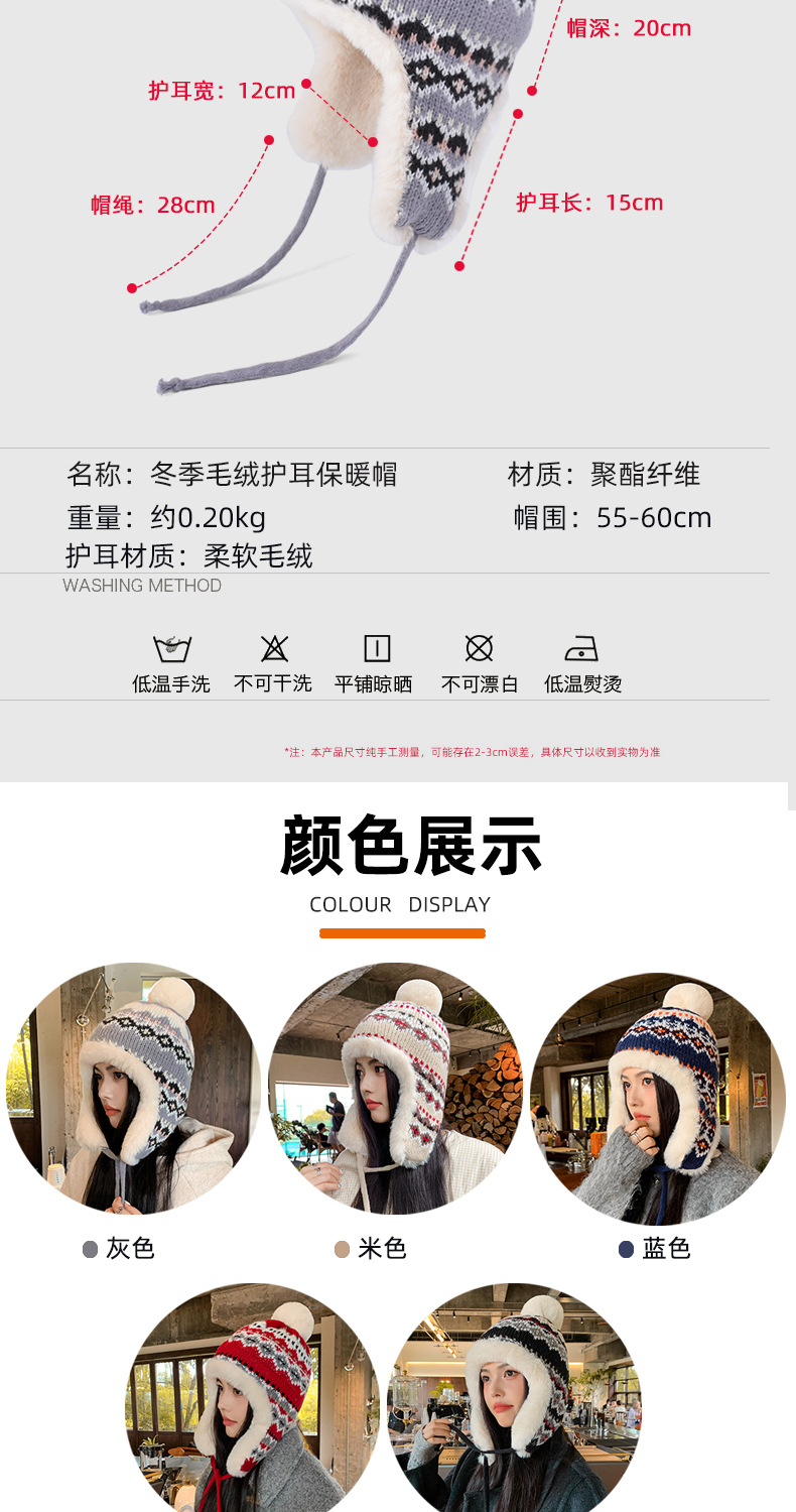 韩版百搭显脸小针织帽子女冬季骑行保暖护耳雷锋帽加绒套头毛线帽