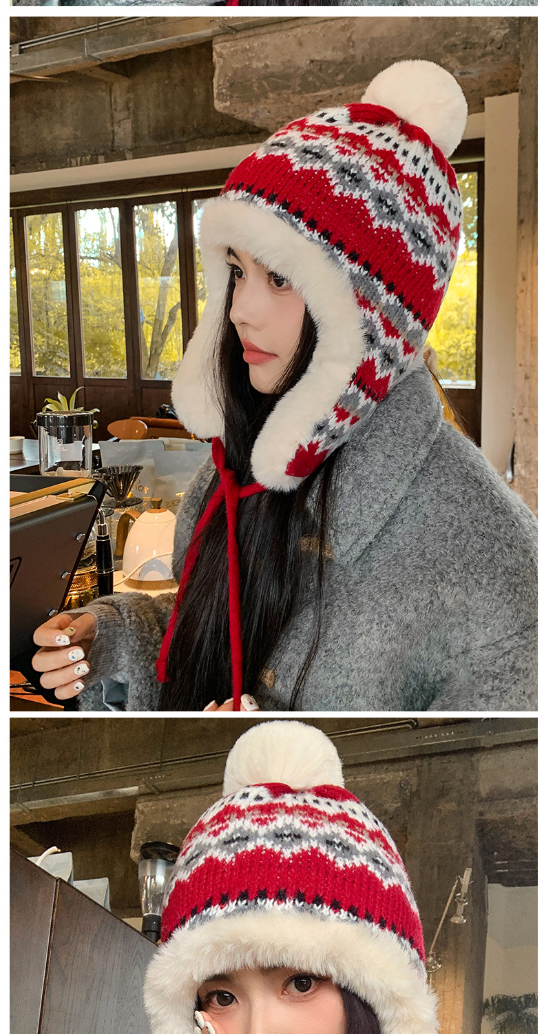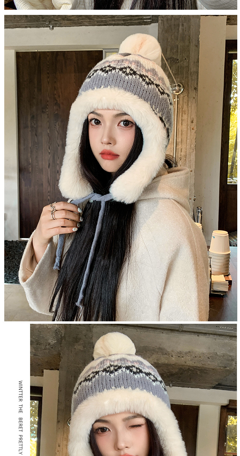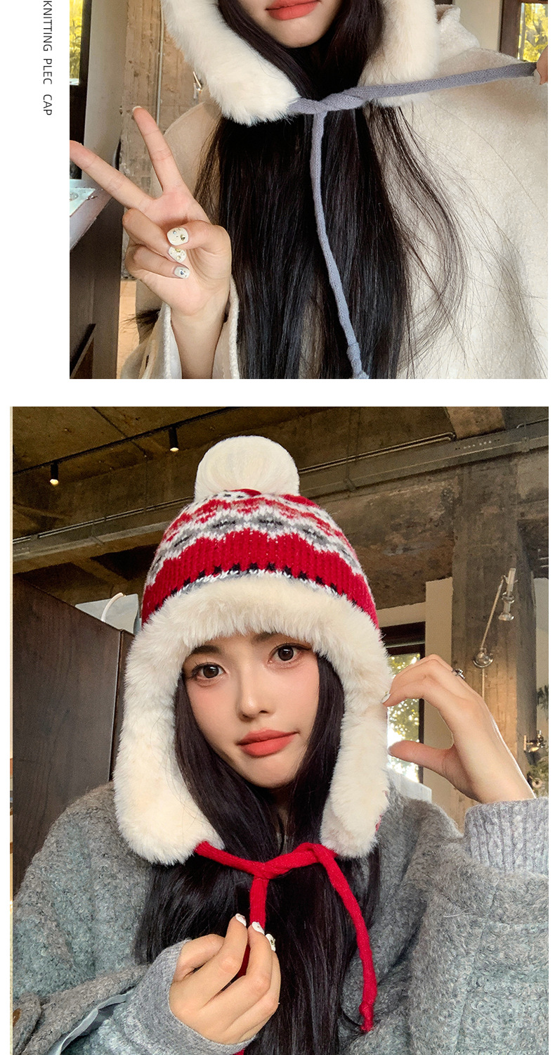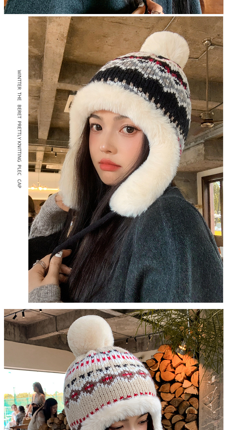 韩版百搭显脸小针织帽子女冬季骑行保暖护耳雷锋帽加绒套头毛线帽